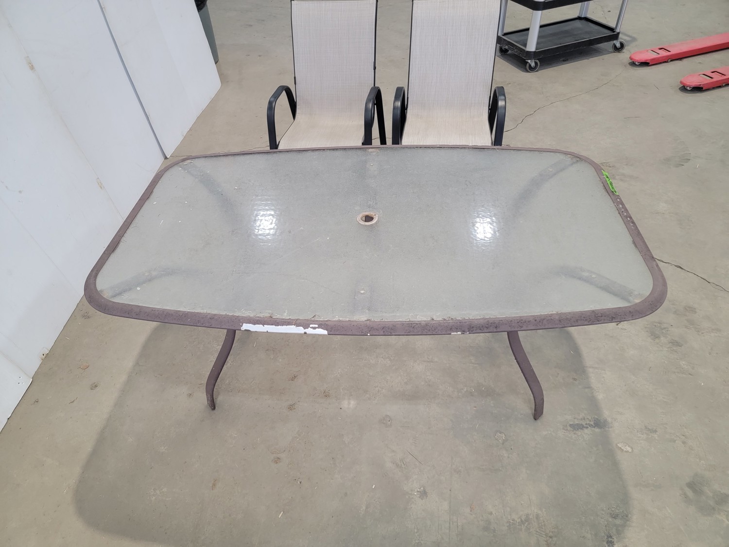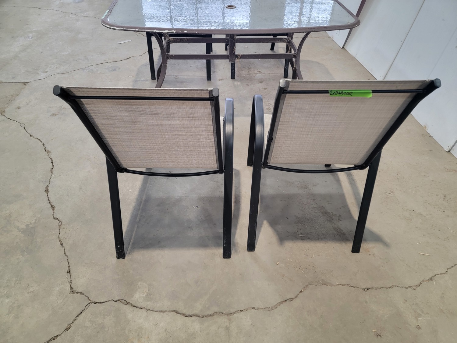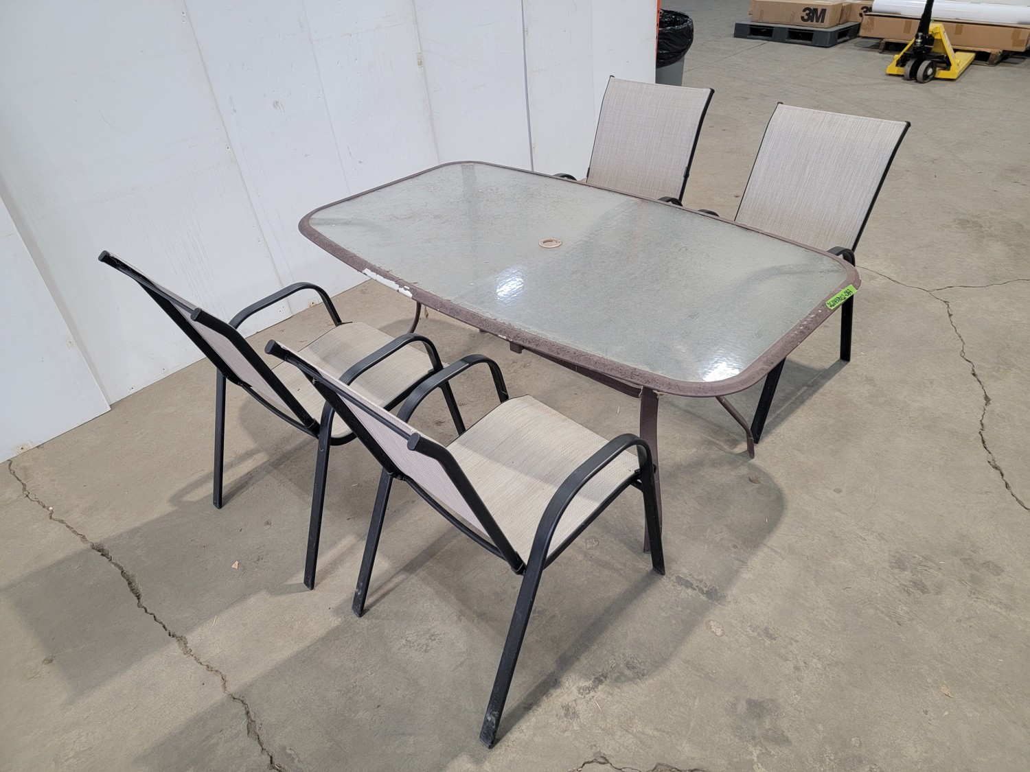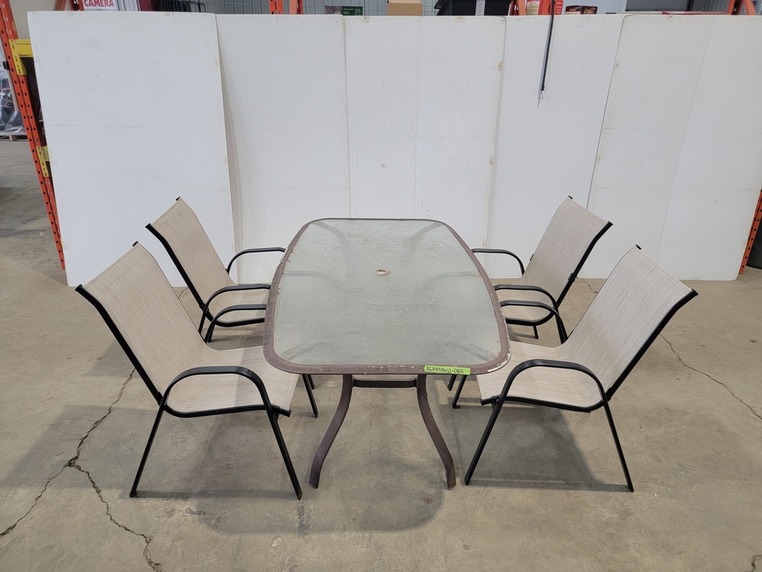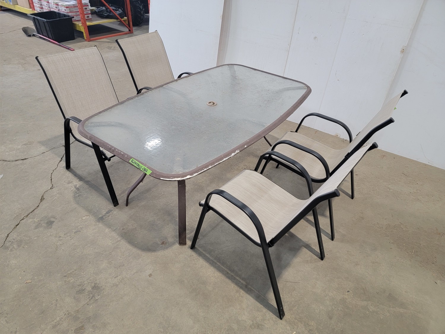 table 38-1/2 inch x 65 inch x 28 inch h, (4) chairs 18-1/4 inch w x 19 inch d x 36 inch h