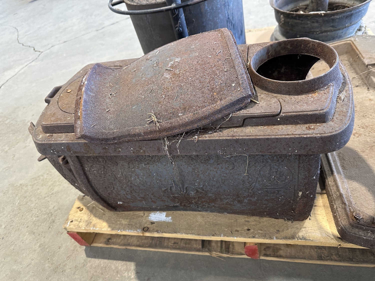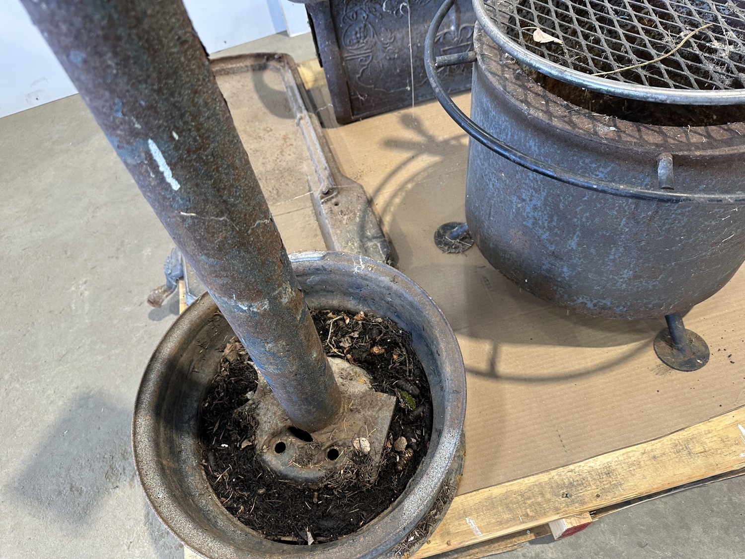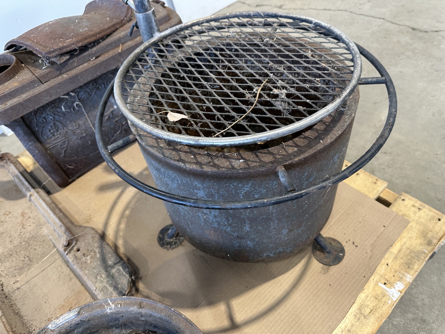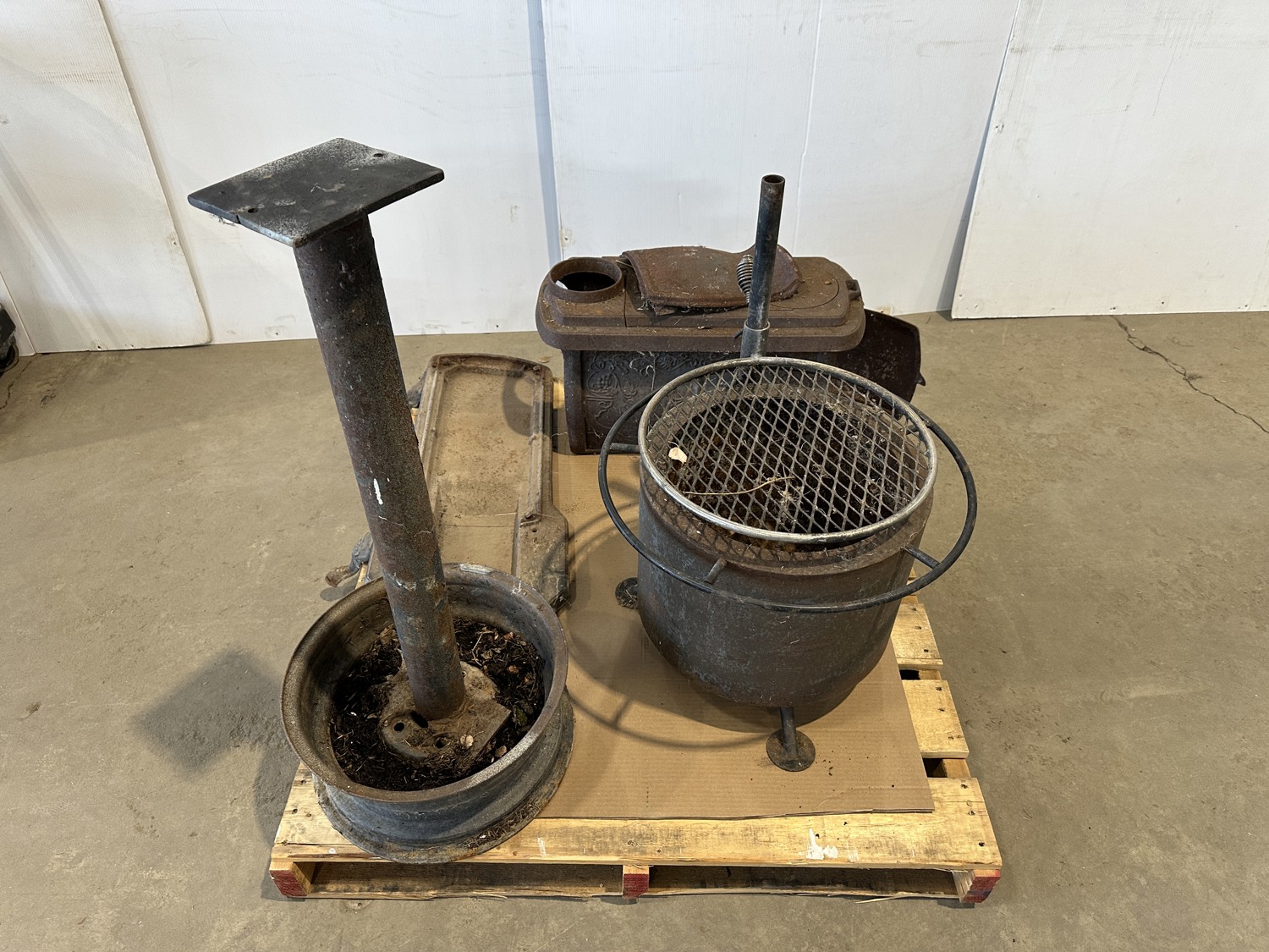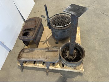 Antique Stove Pieces, Fire Pit and Metal Stand