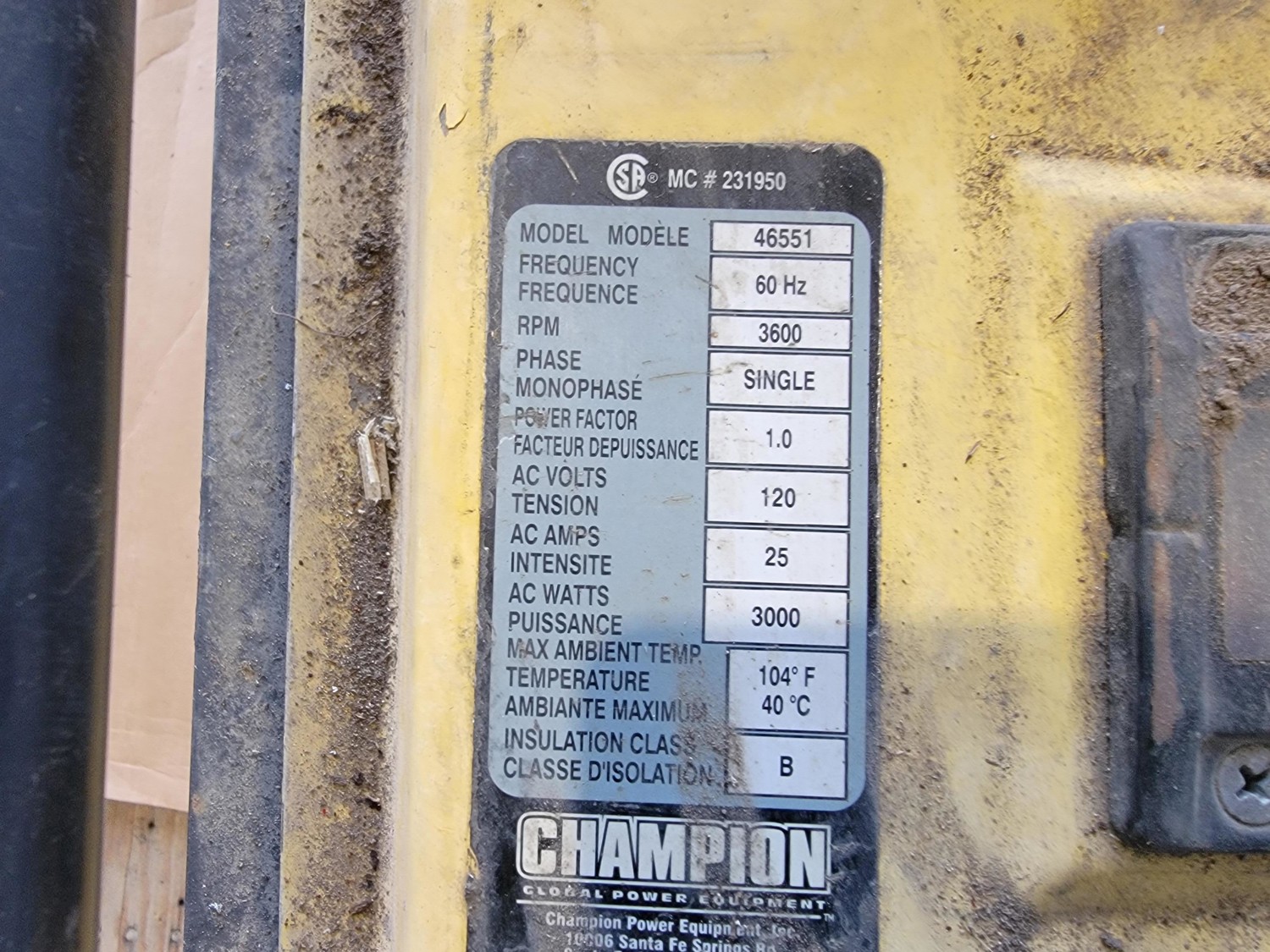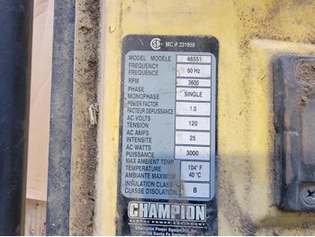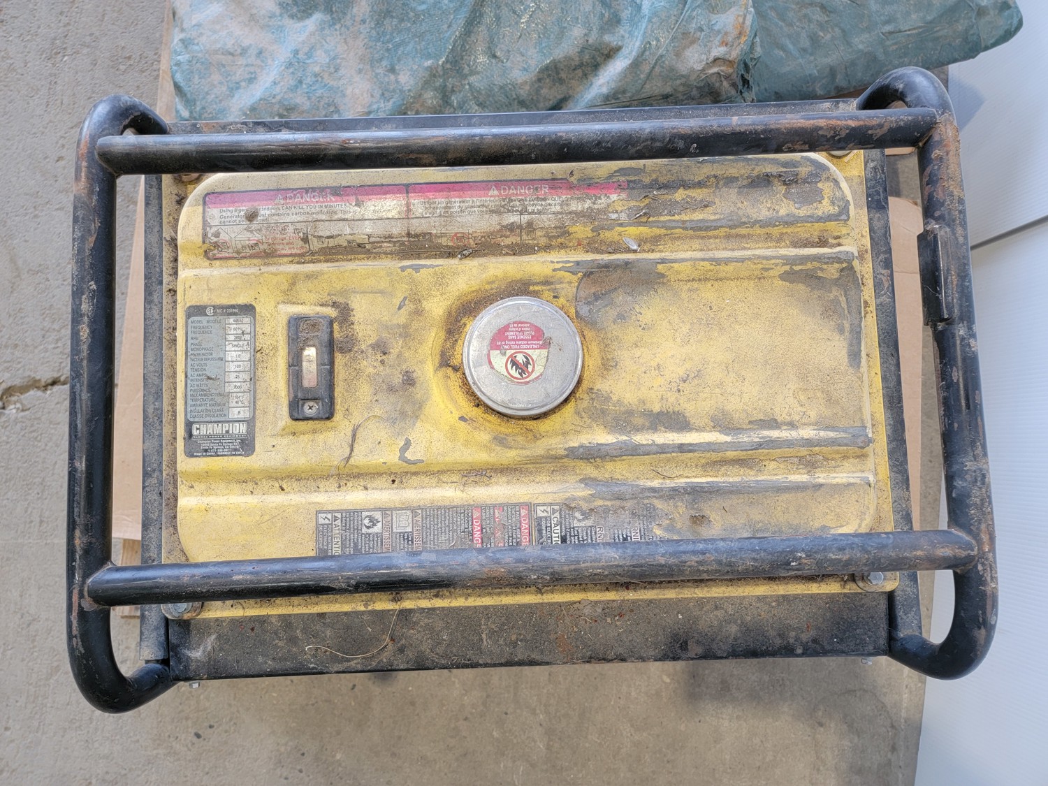 Champion 4000W Generator, Extension Cord and Canvas Tarp