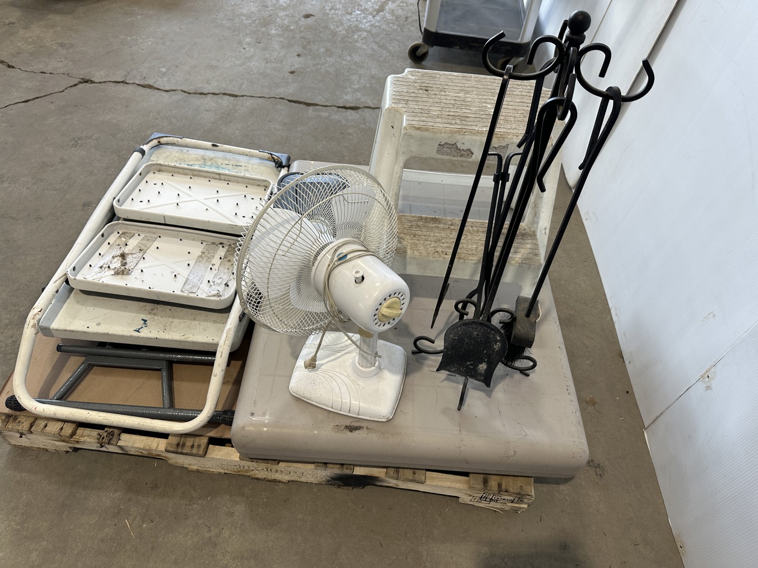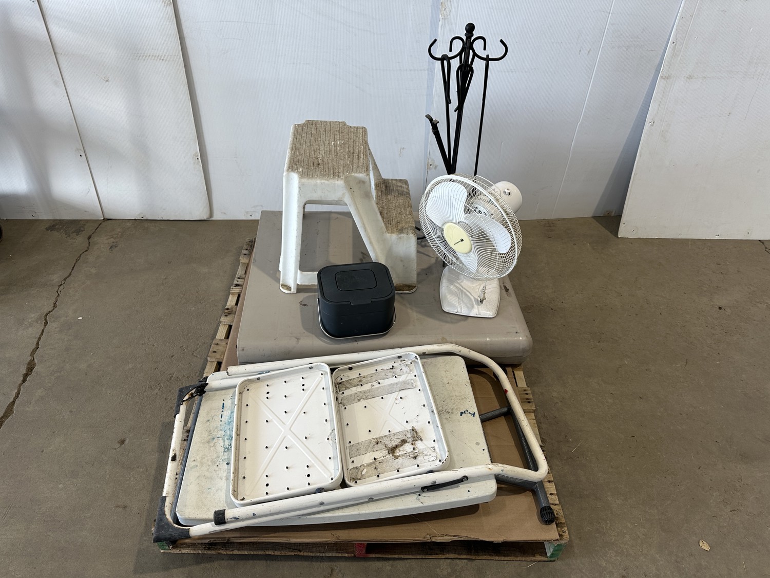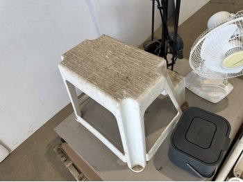 Folding Table, (2) Step Stools and Fan