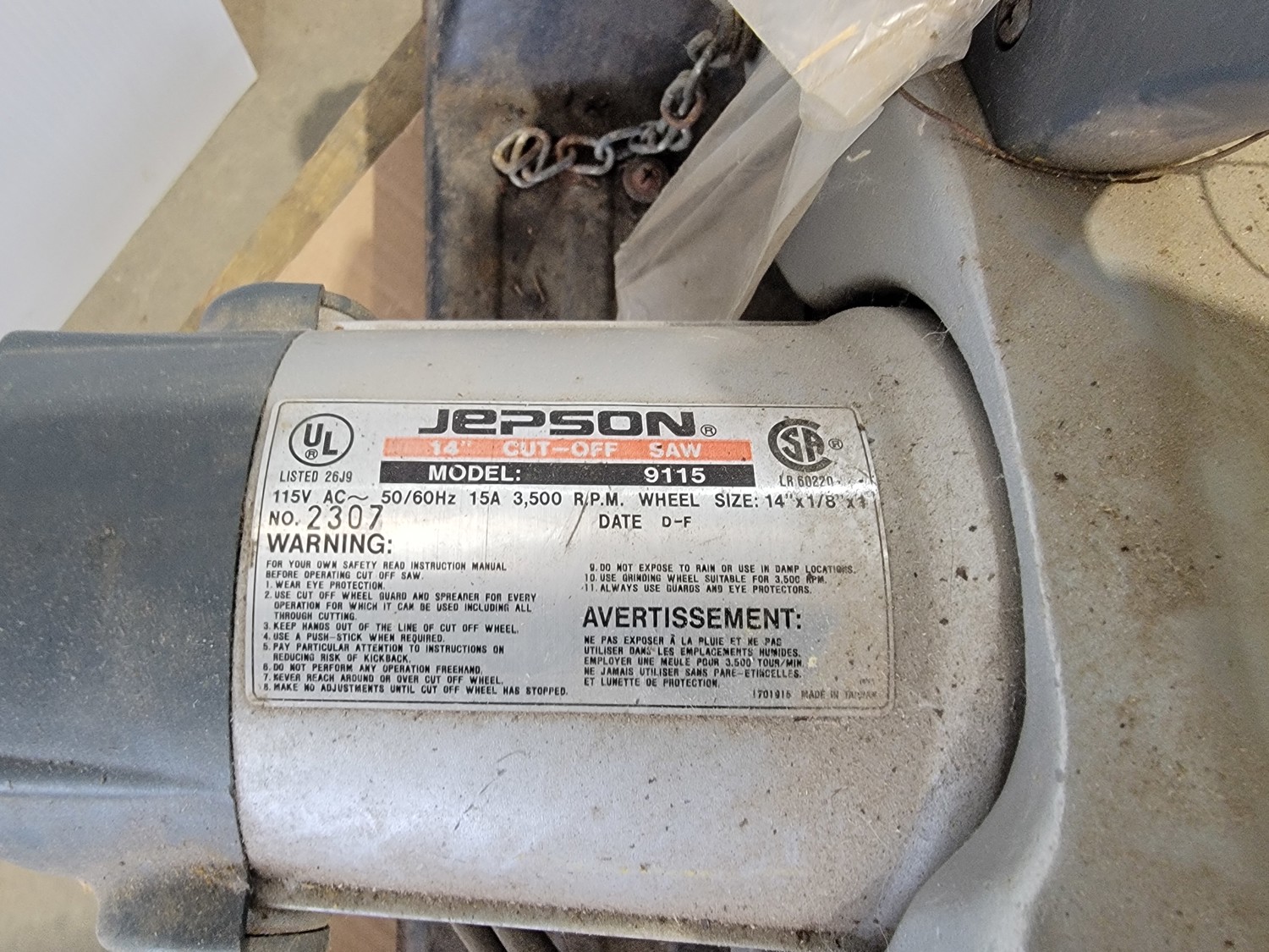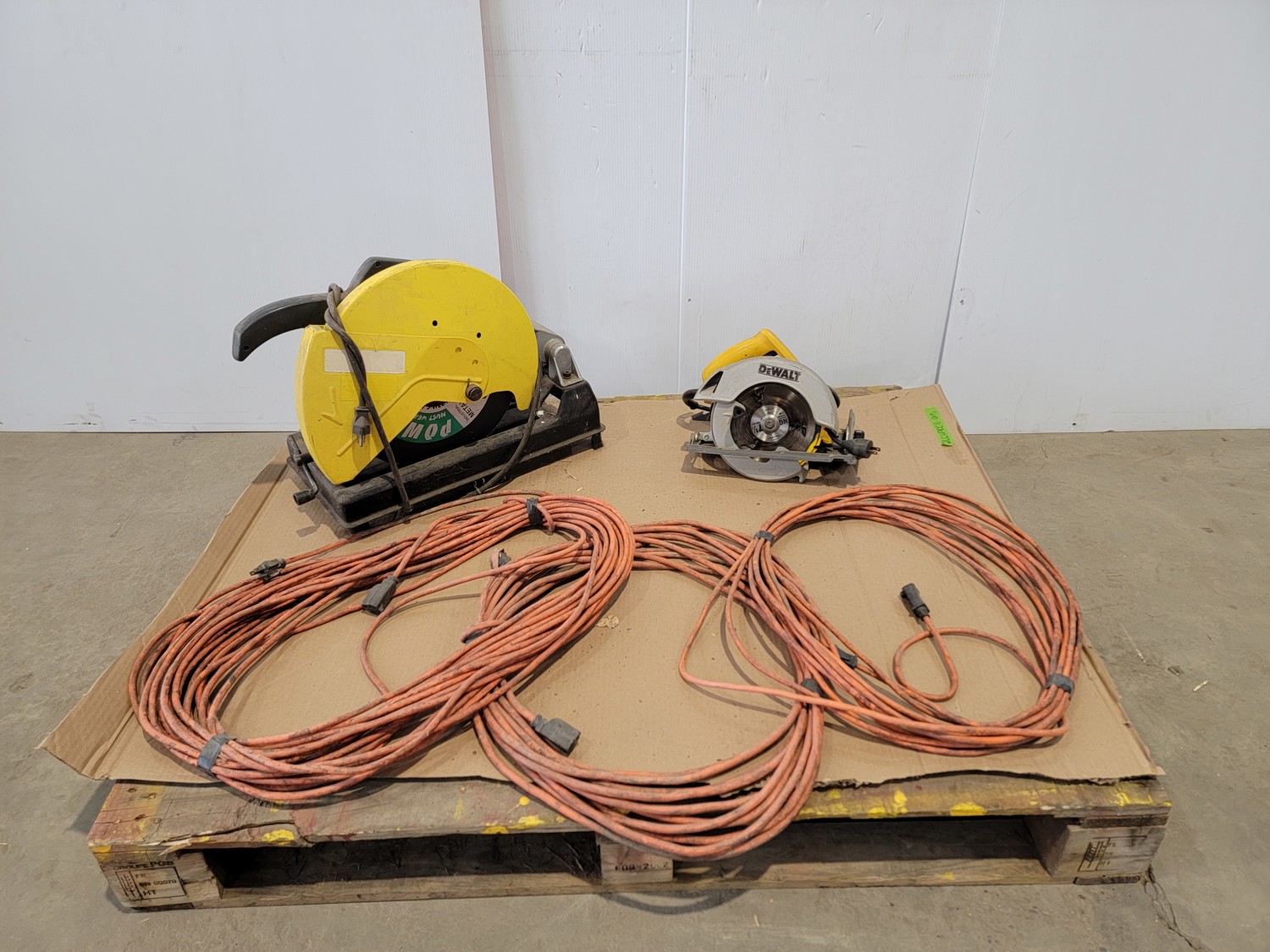 Jepson 14 Inch Cut-Off Saw, Dewalt 7-1/4 Inch Circular Saw and (3) Extension Cords