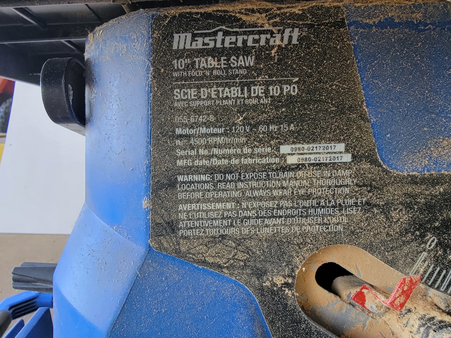 Mastercraft 10 Inch Table Saw with Fold N' Roll Stand