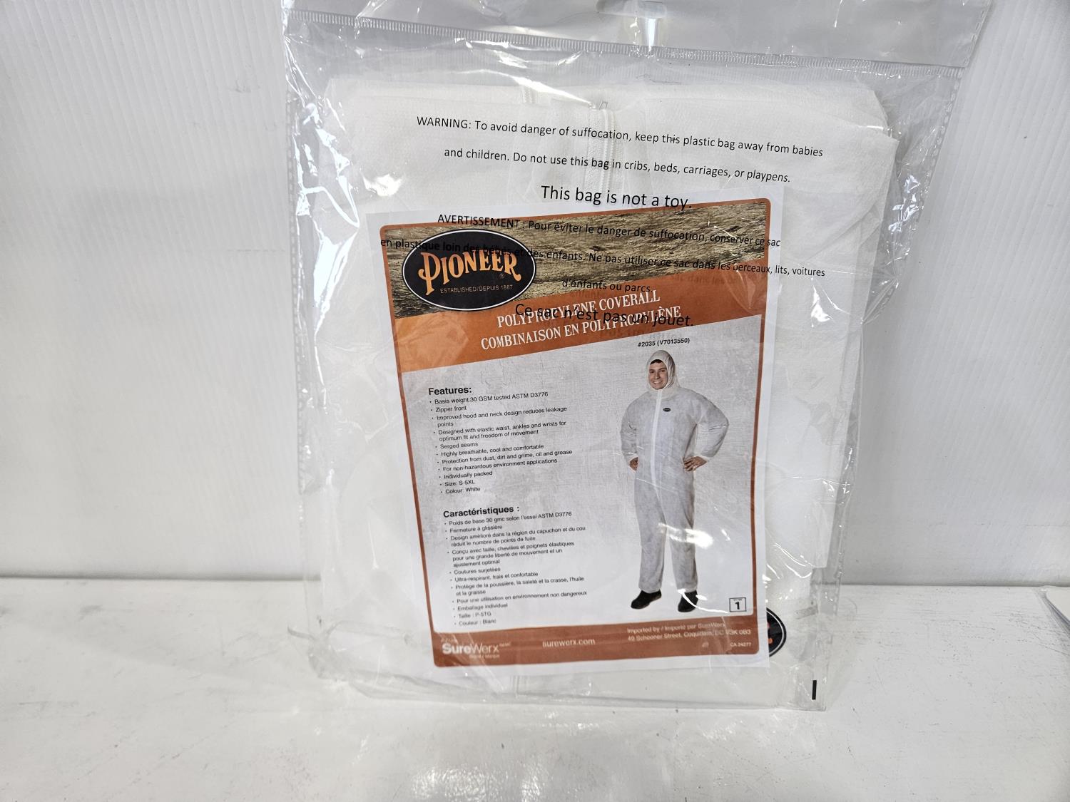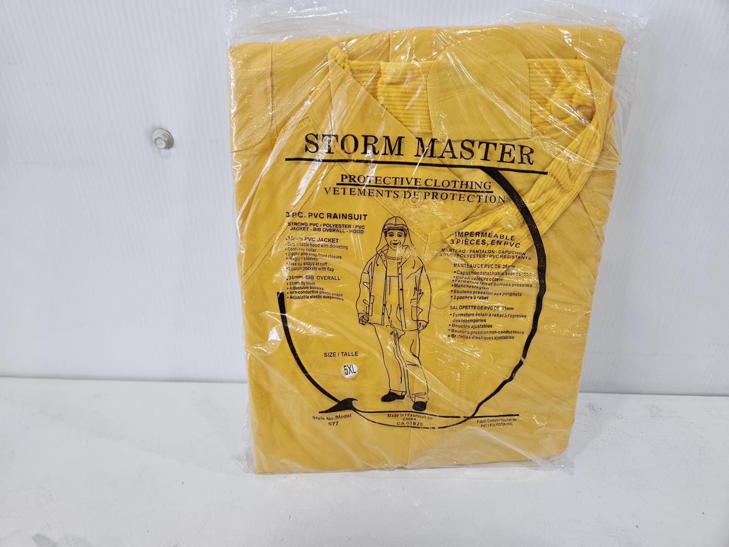 Storm Master 5XL 3 piece rainsuit, Pioneer toque, Pioneer neck gaiter, (2) disposable Pioneer coveralls size S-5XL