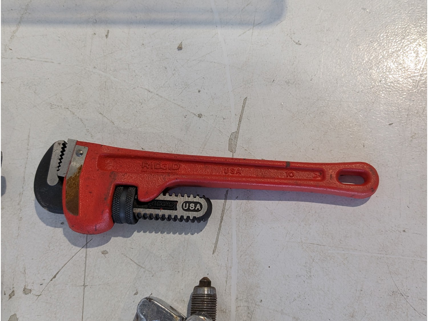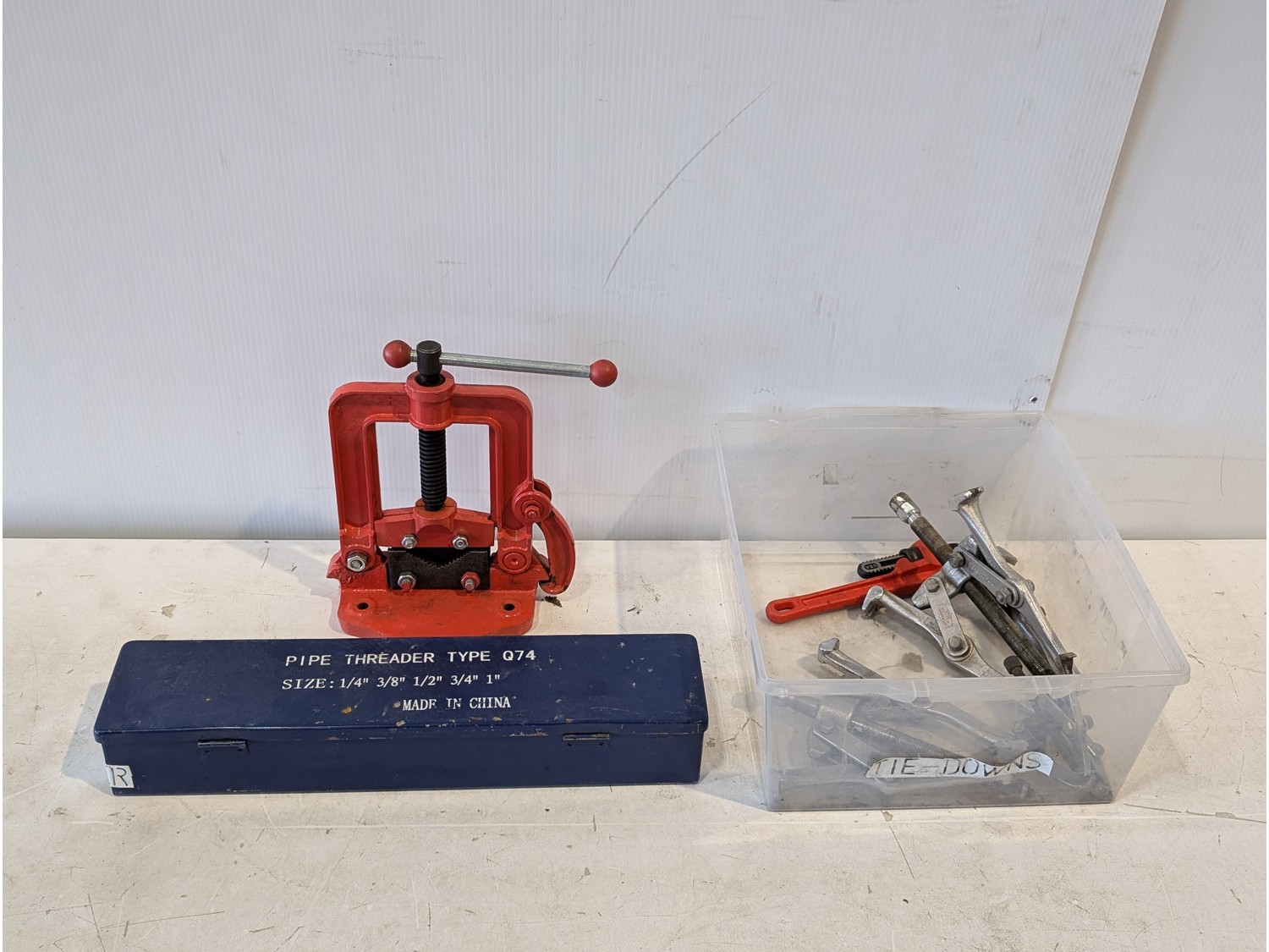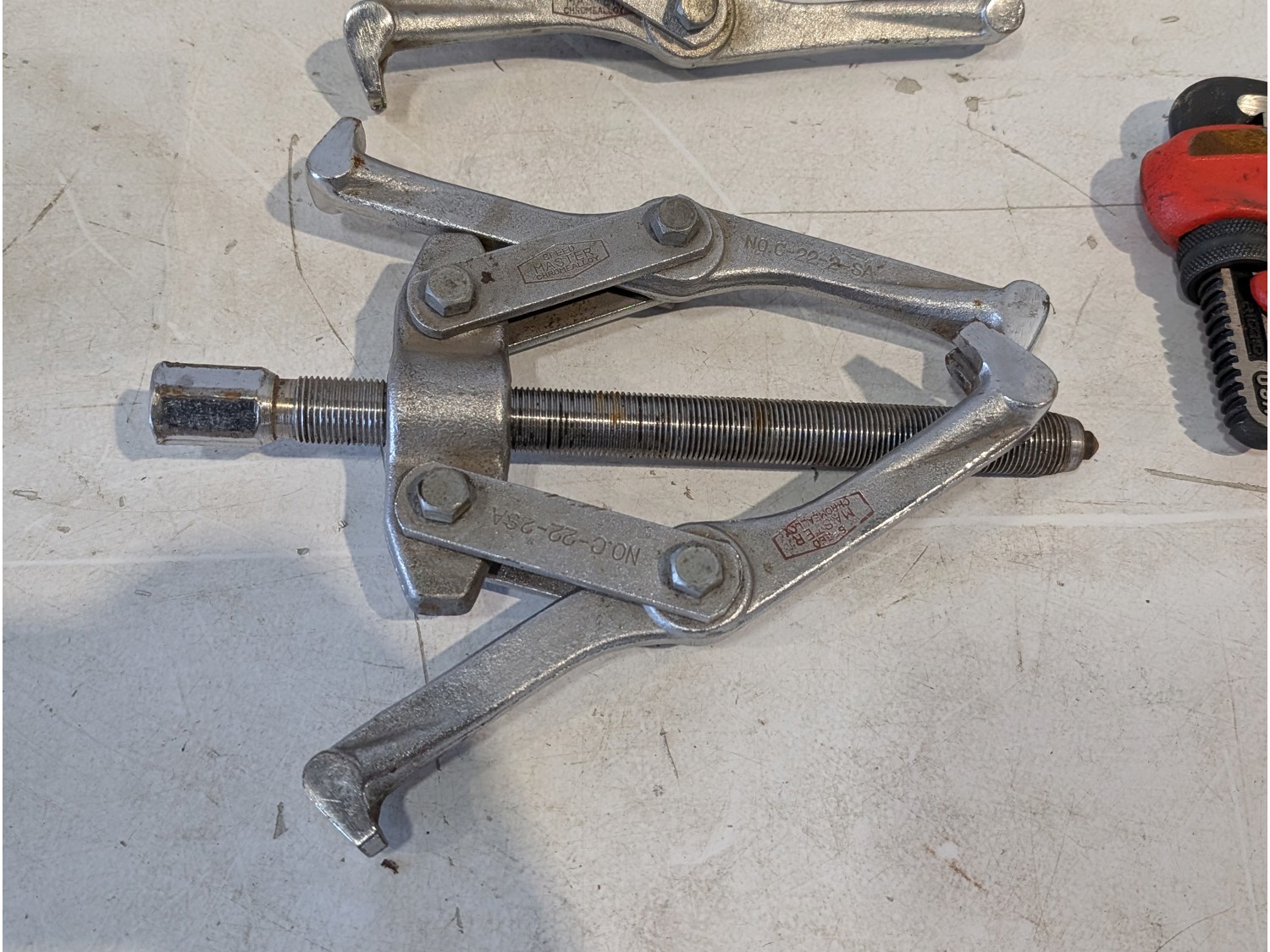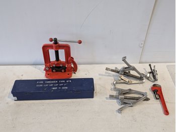 Pipe Vise, Pipe Threader Kit, (3) Gear Pullers and Ridgid 10 Inch Pipe Wrench