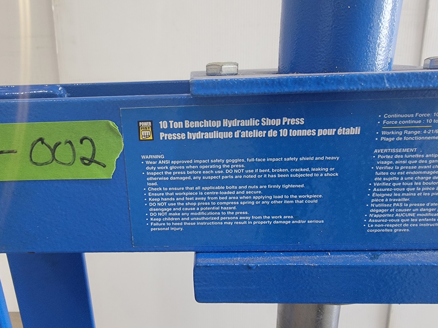 Powerfist 10 Ton Benchtop Hydraulic Shop Press