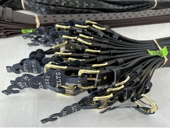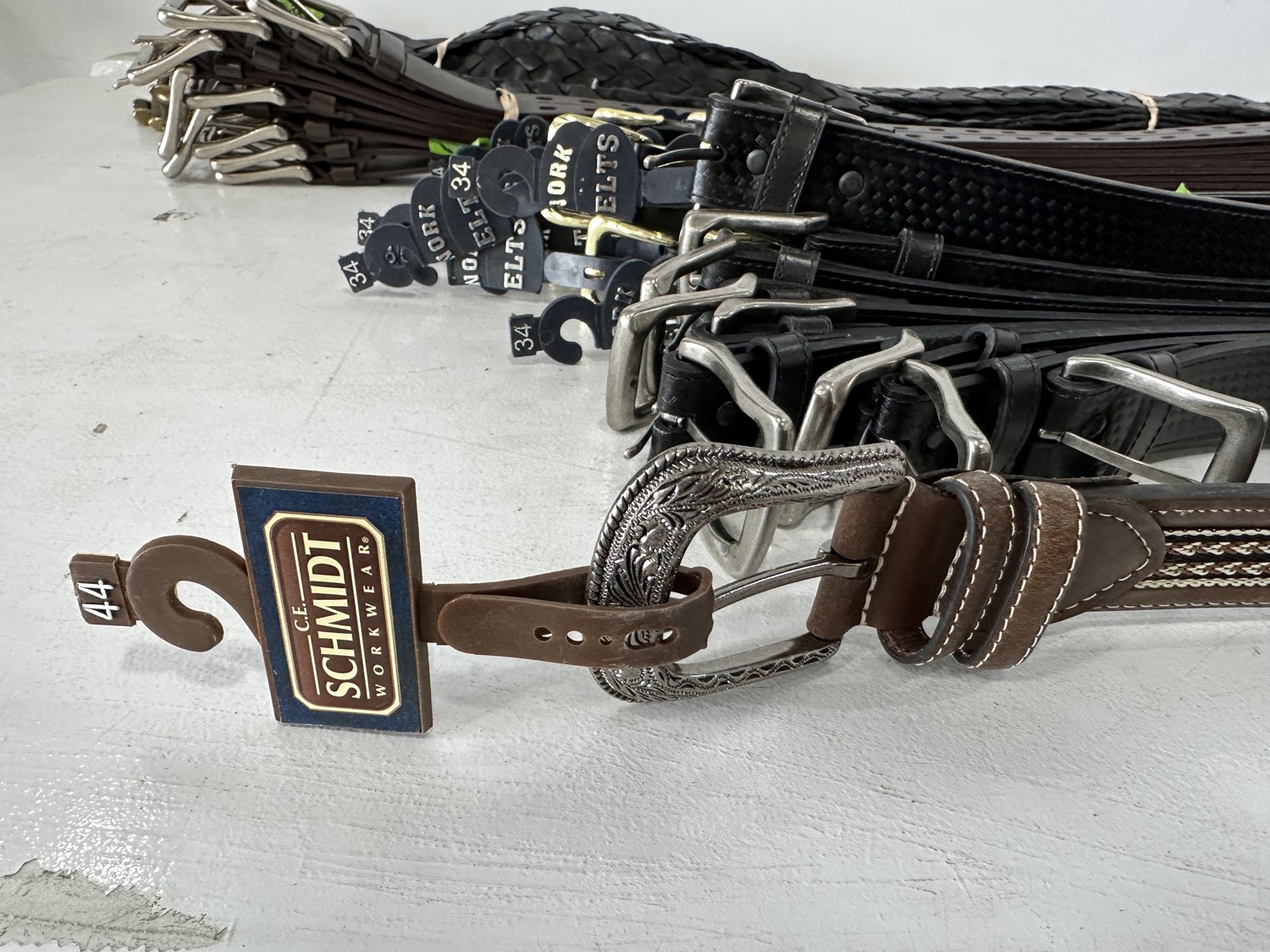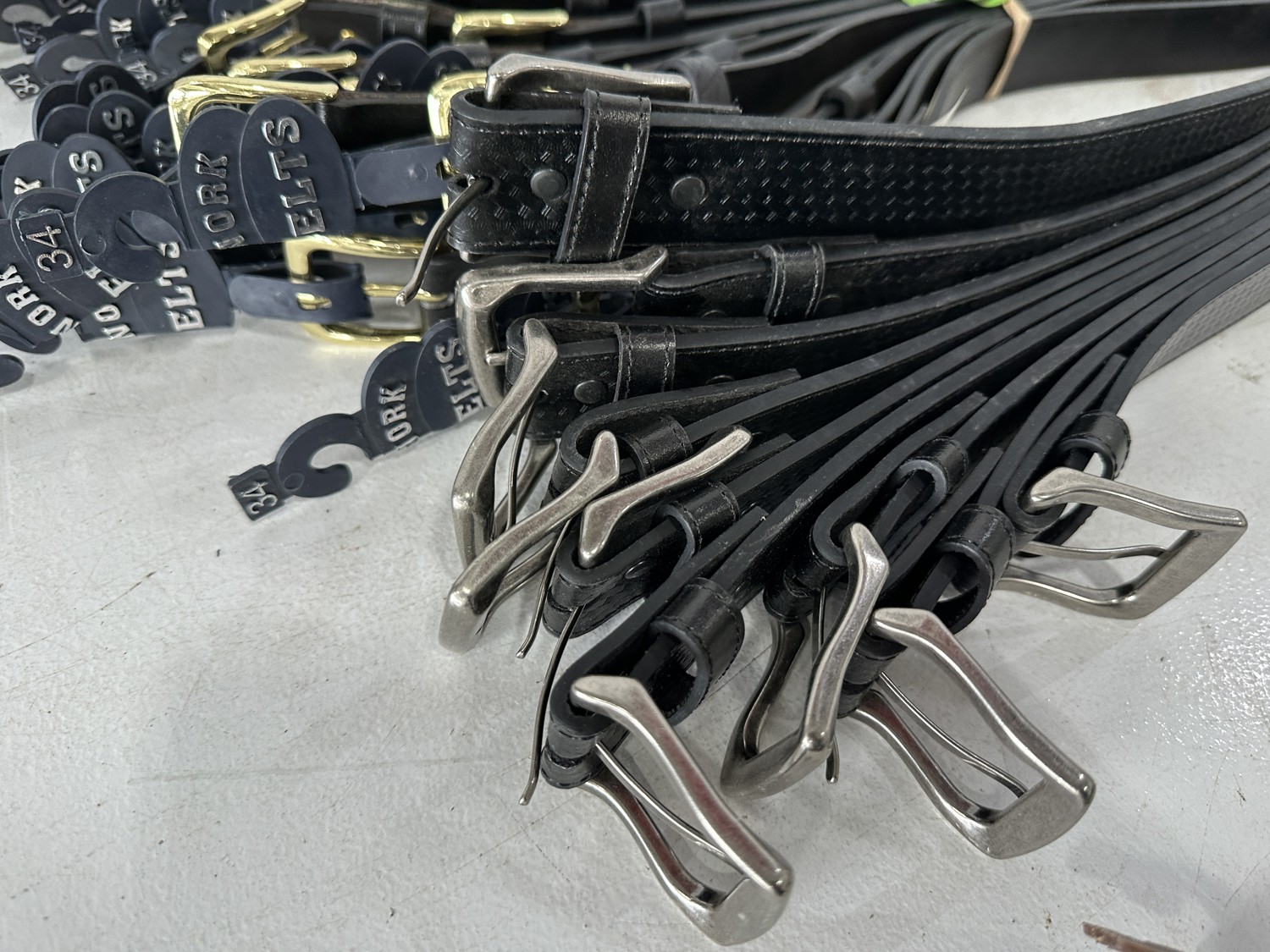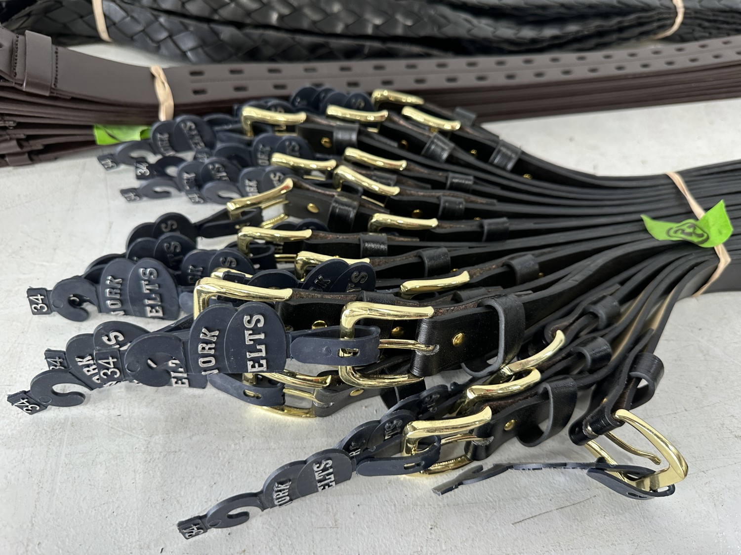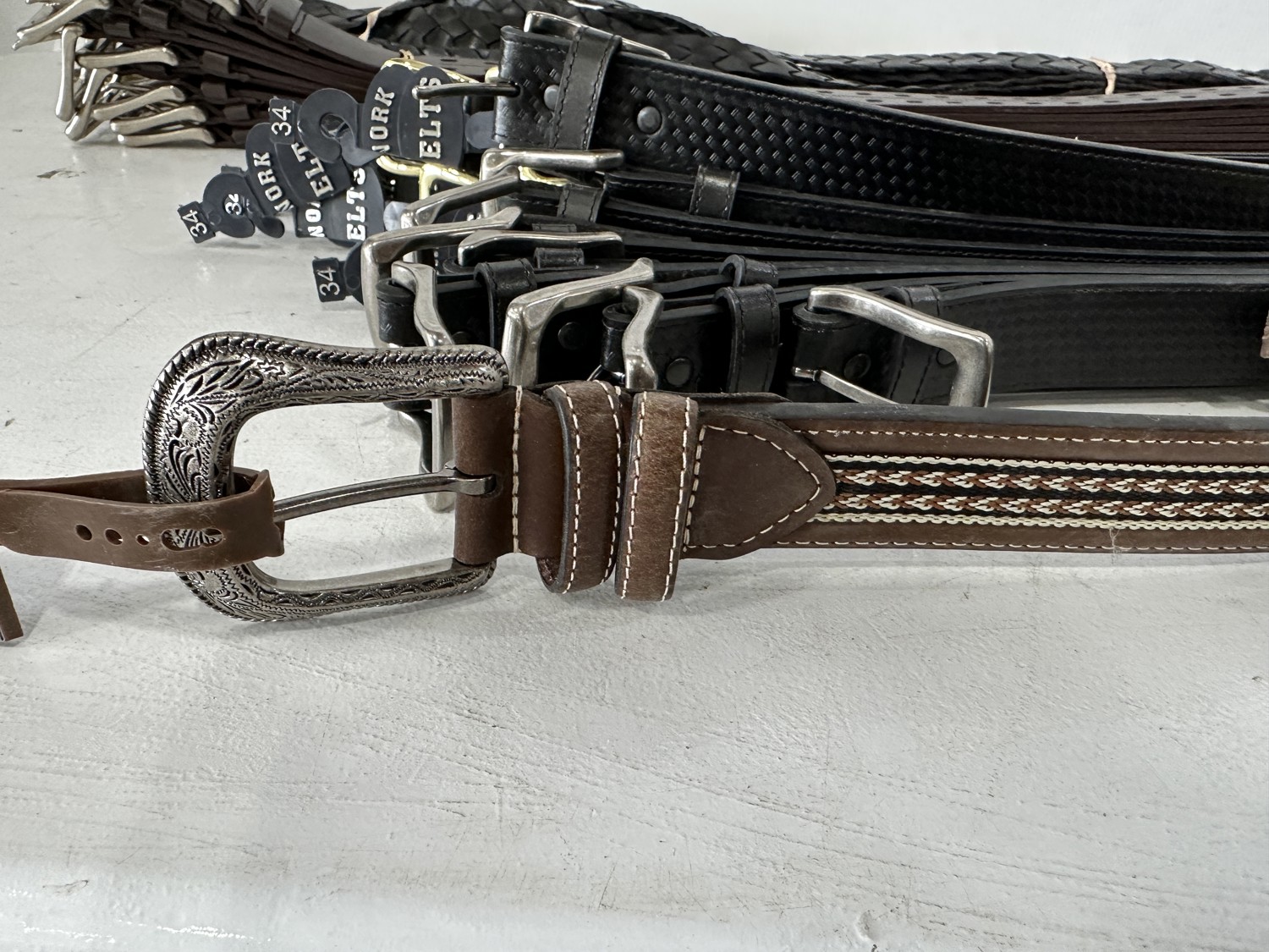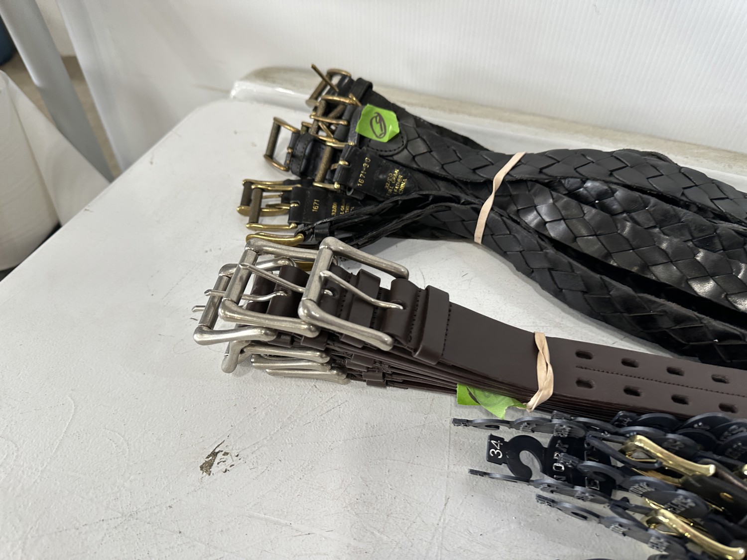 (9±) mostly size 32, (13±) brown 37 inch, (22±) mostly size 34, (9) assorted sizes 34, 34, 44, (4) size 40