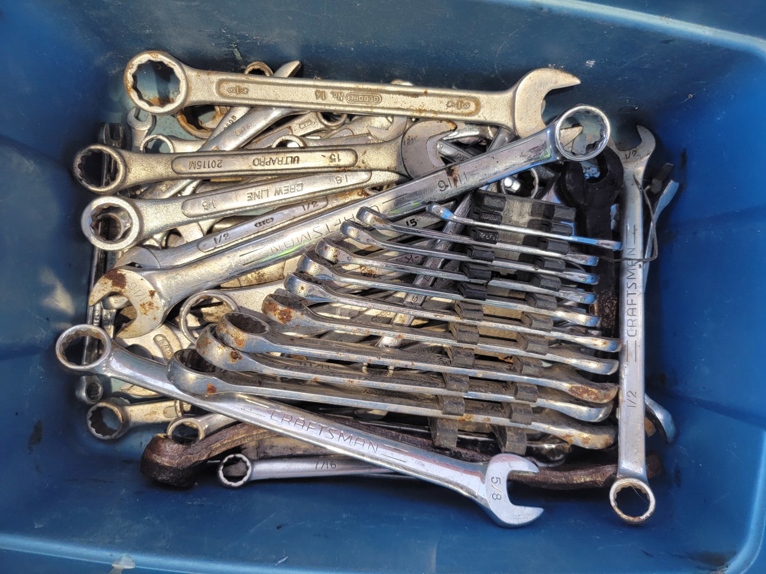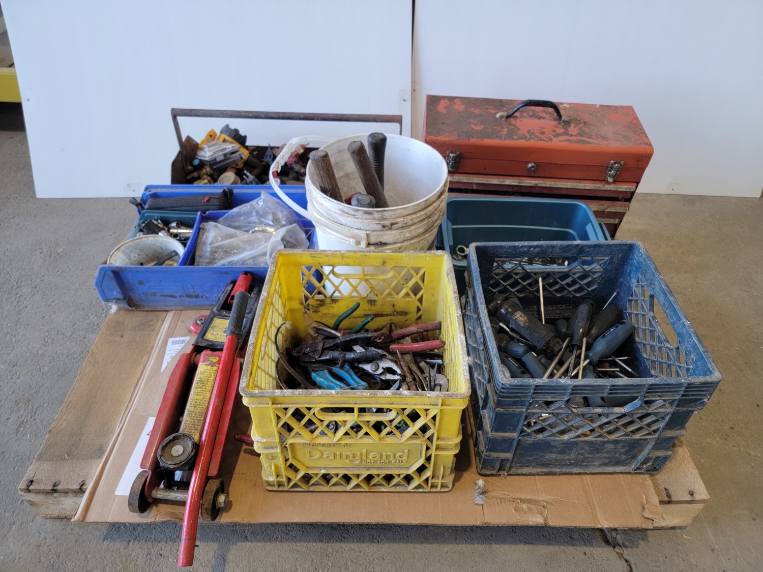 Qty of Hand Tools, Combination Wrenches, 2 Ton Floor Jack and 21 Inch Tool Box