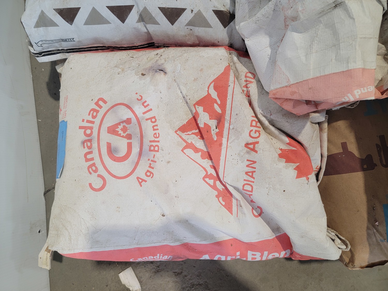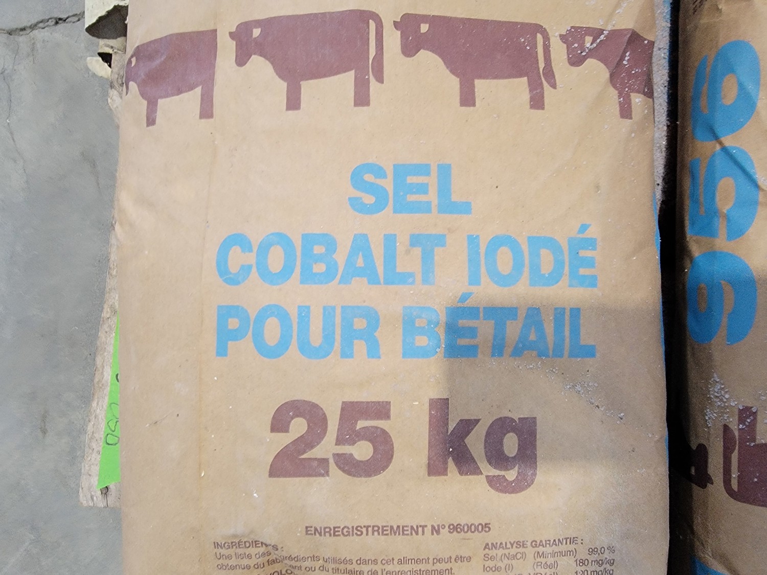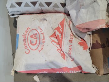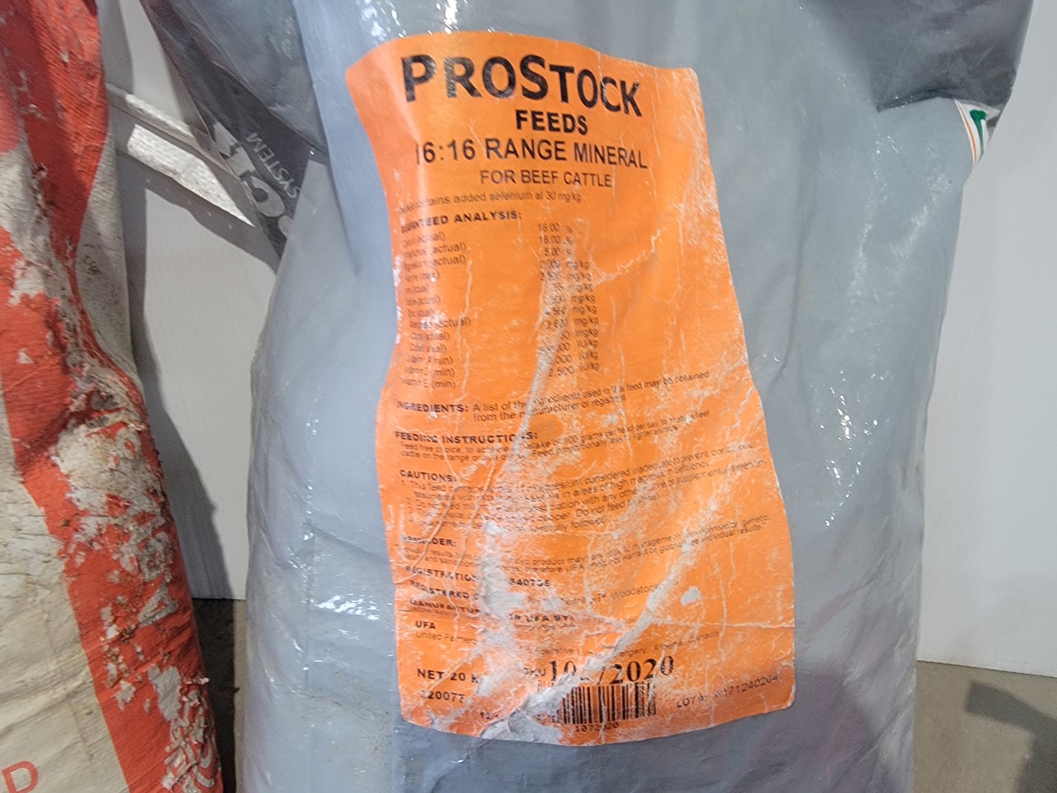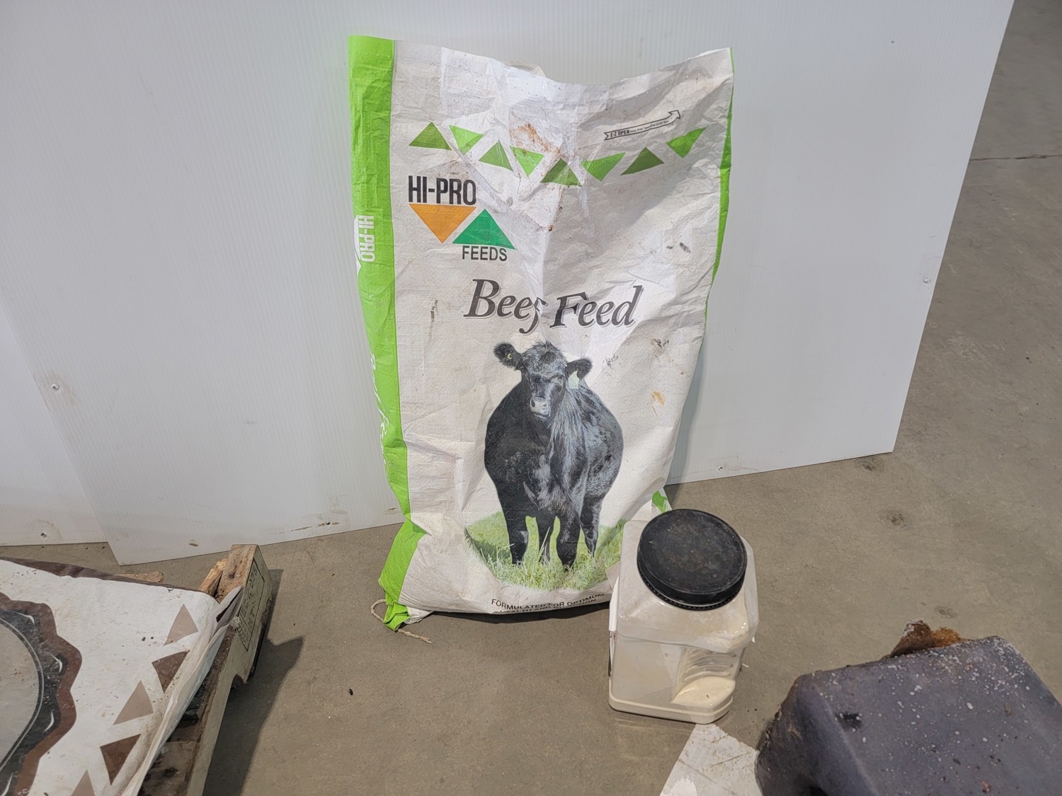 (7) 25 kg Windsor cobalt iodized stock salt, (2) Windsor partial bags of cobalt iodized stock salt, (1) 20 kg bag of UFA Prostock 16:16 range mineral for cattle, (1) Hi-Pro premium grains, (1) Hi-Pro partial bag of beef feed, (2) Canadian Agri-blend cobalt iodized stock salt