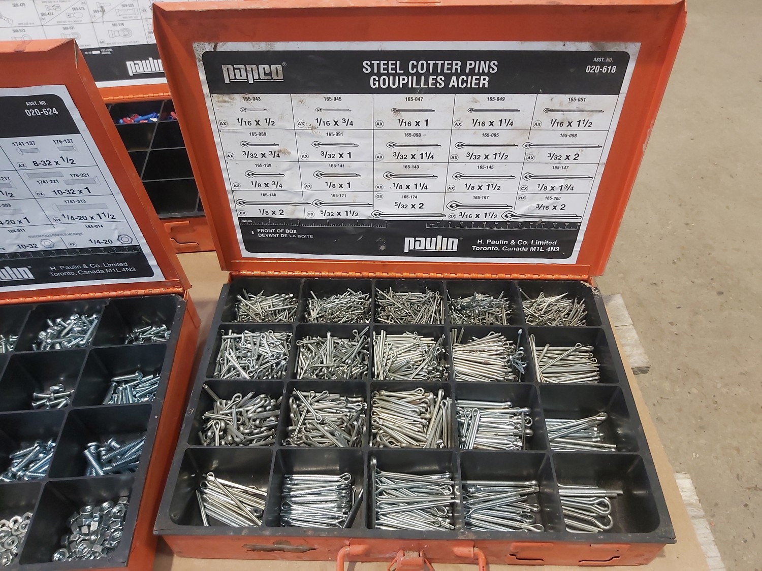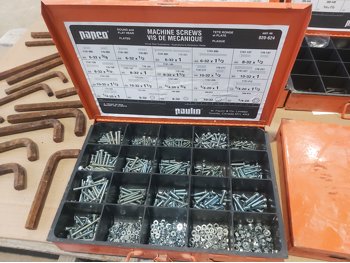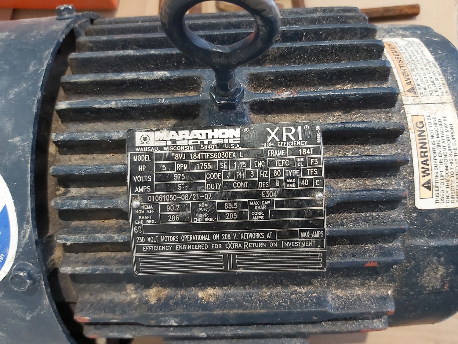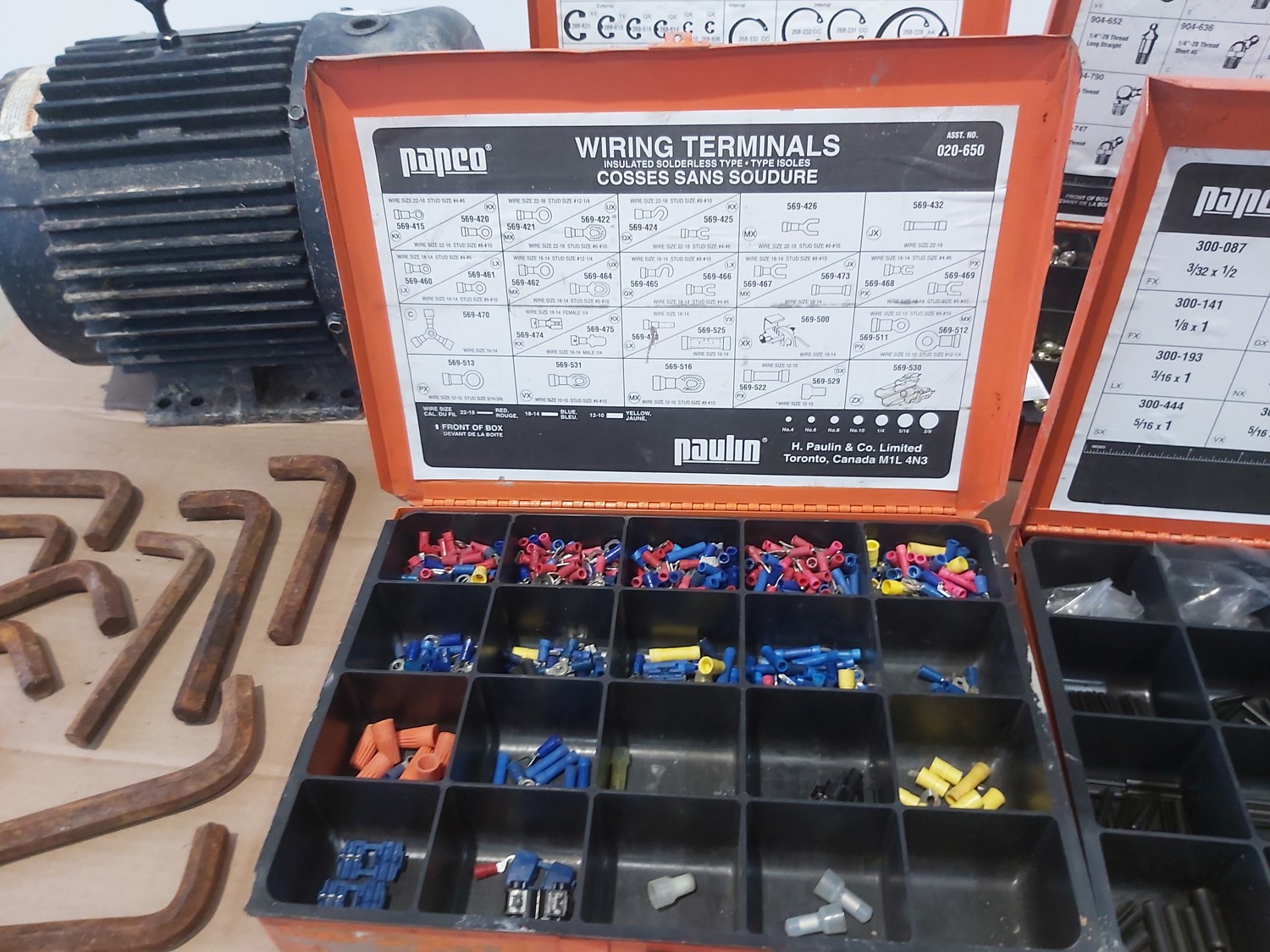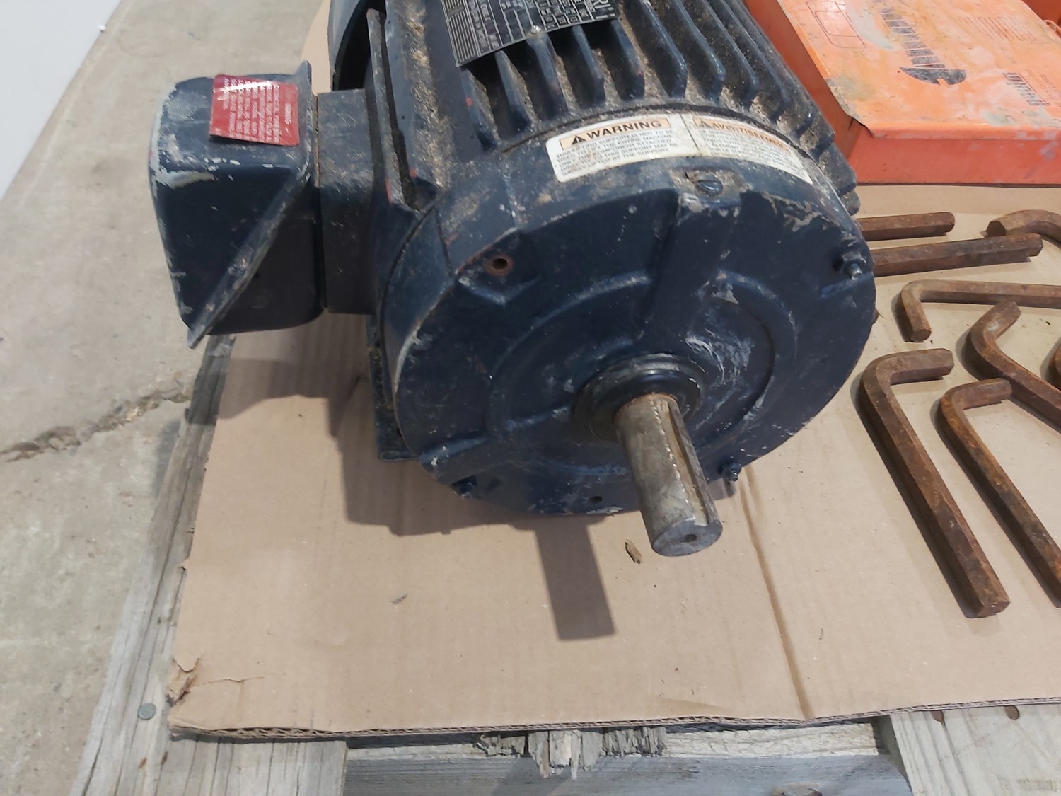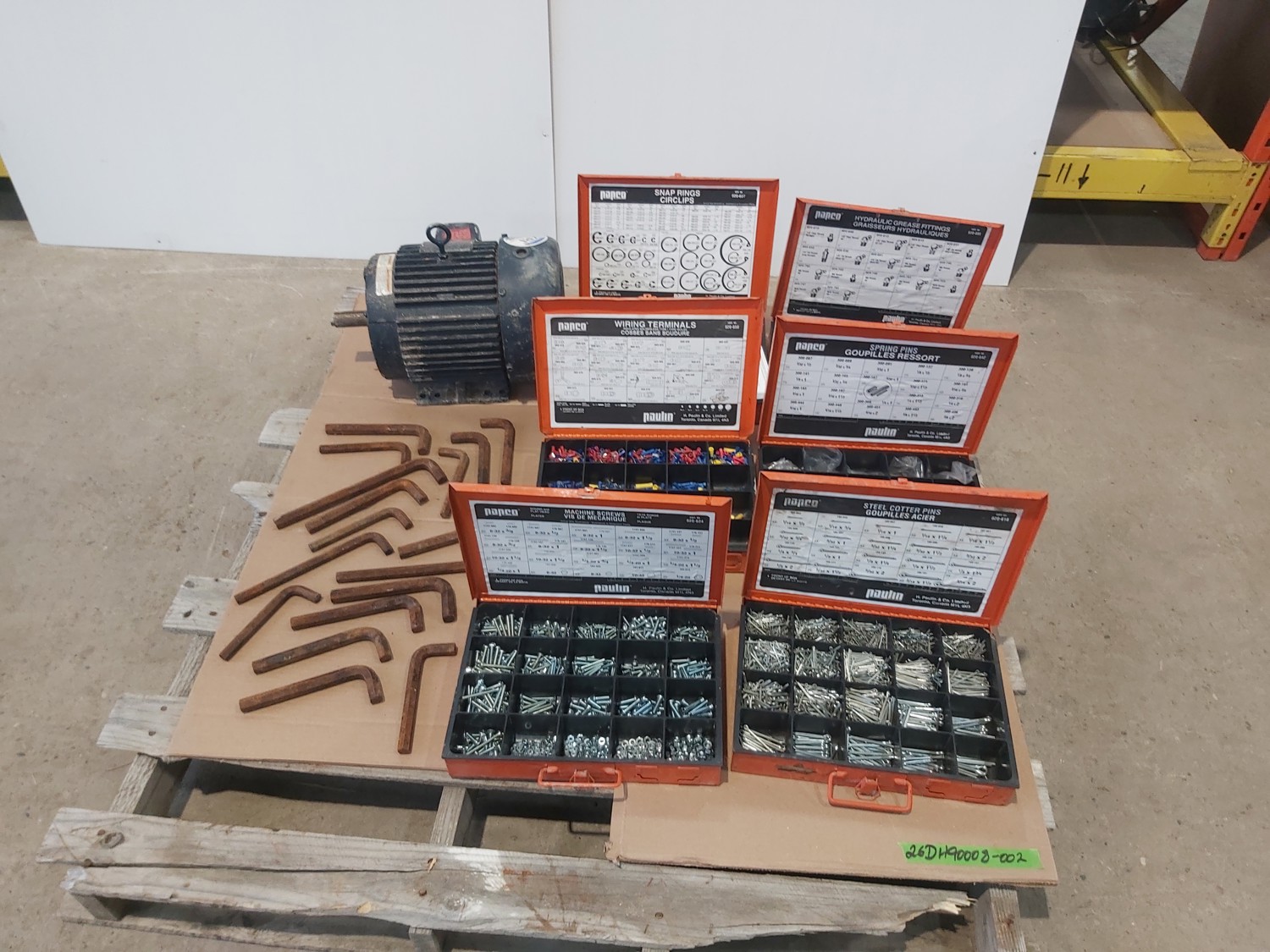 Qty of Metal Parts Bins, Allen Keys and Marathon 5 HP 3 Phase Electric Motor