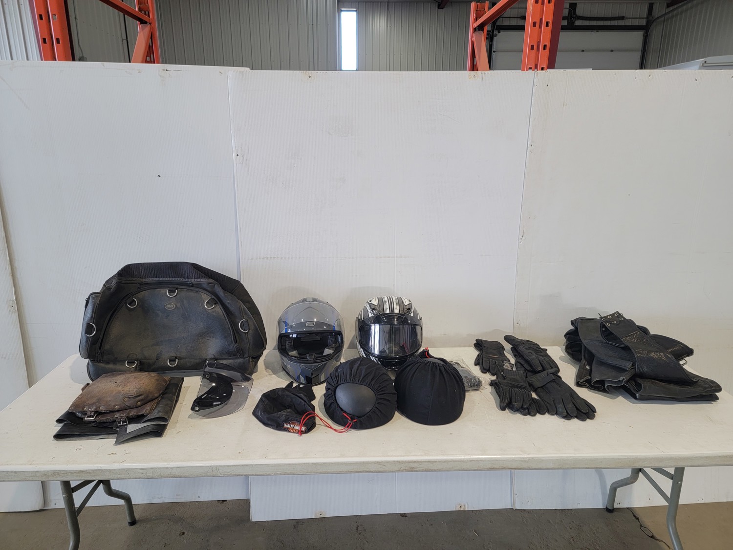 Qty of Motorcycle Helmets, Bag, Gloves and Chaps