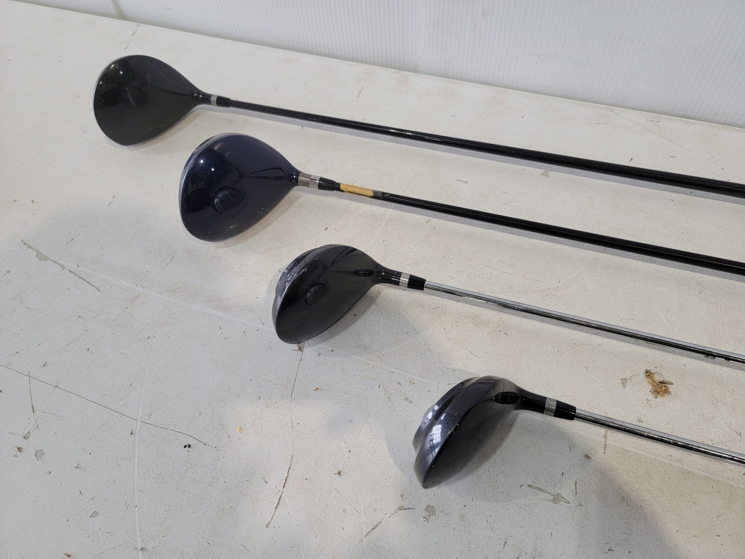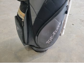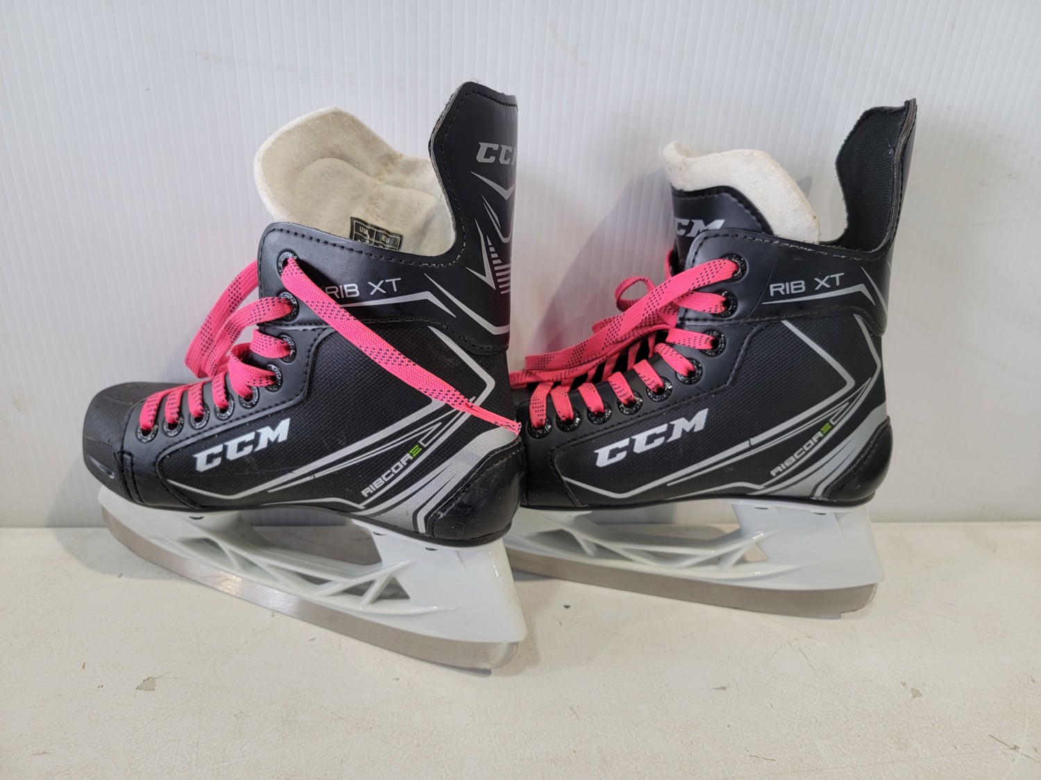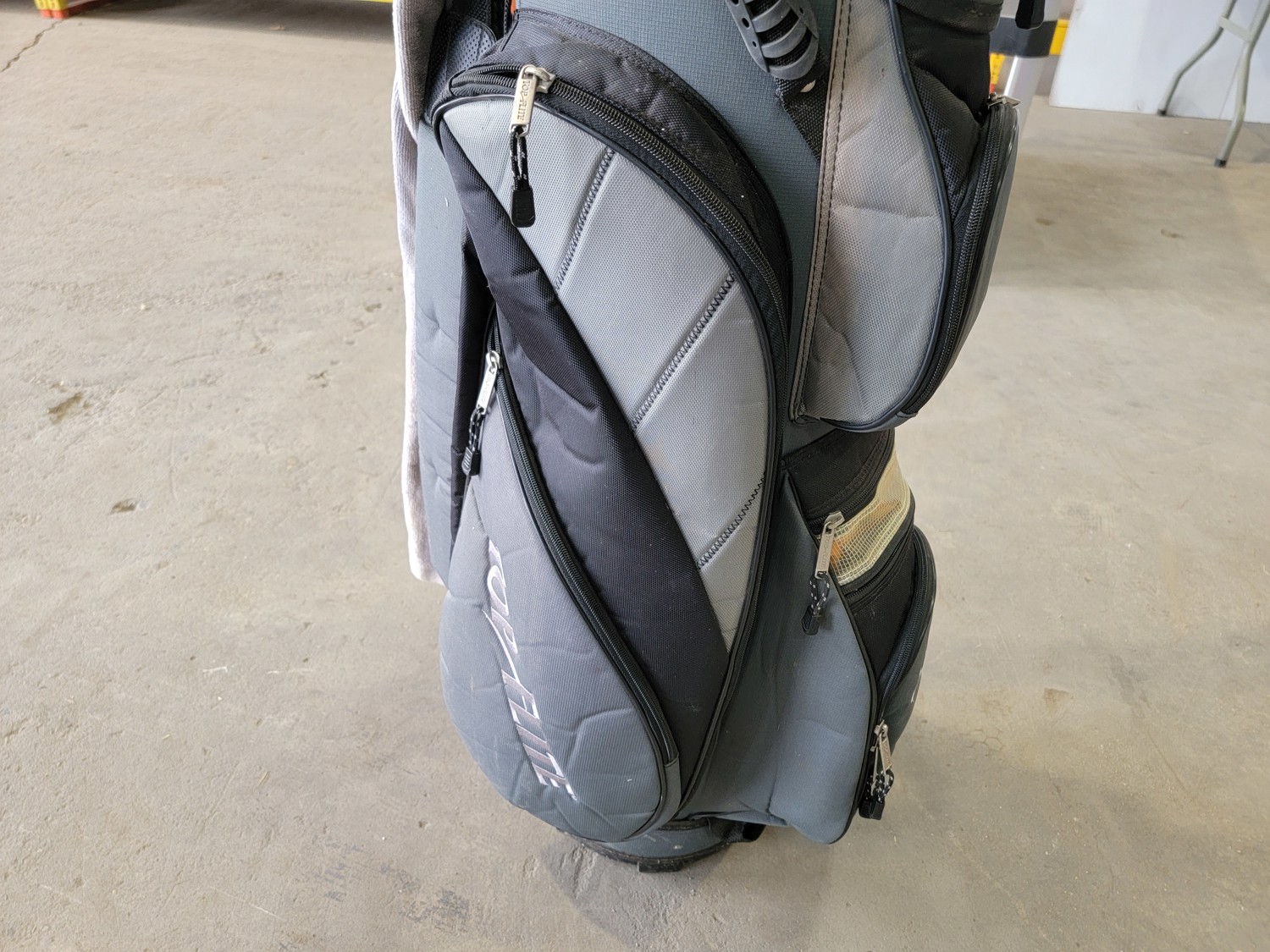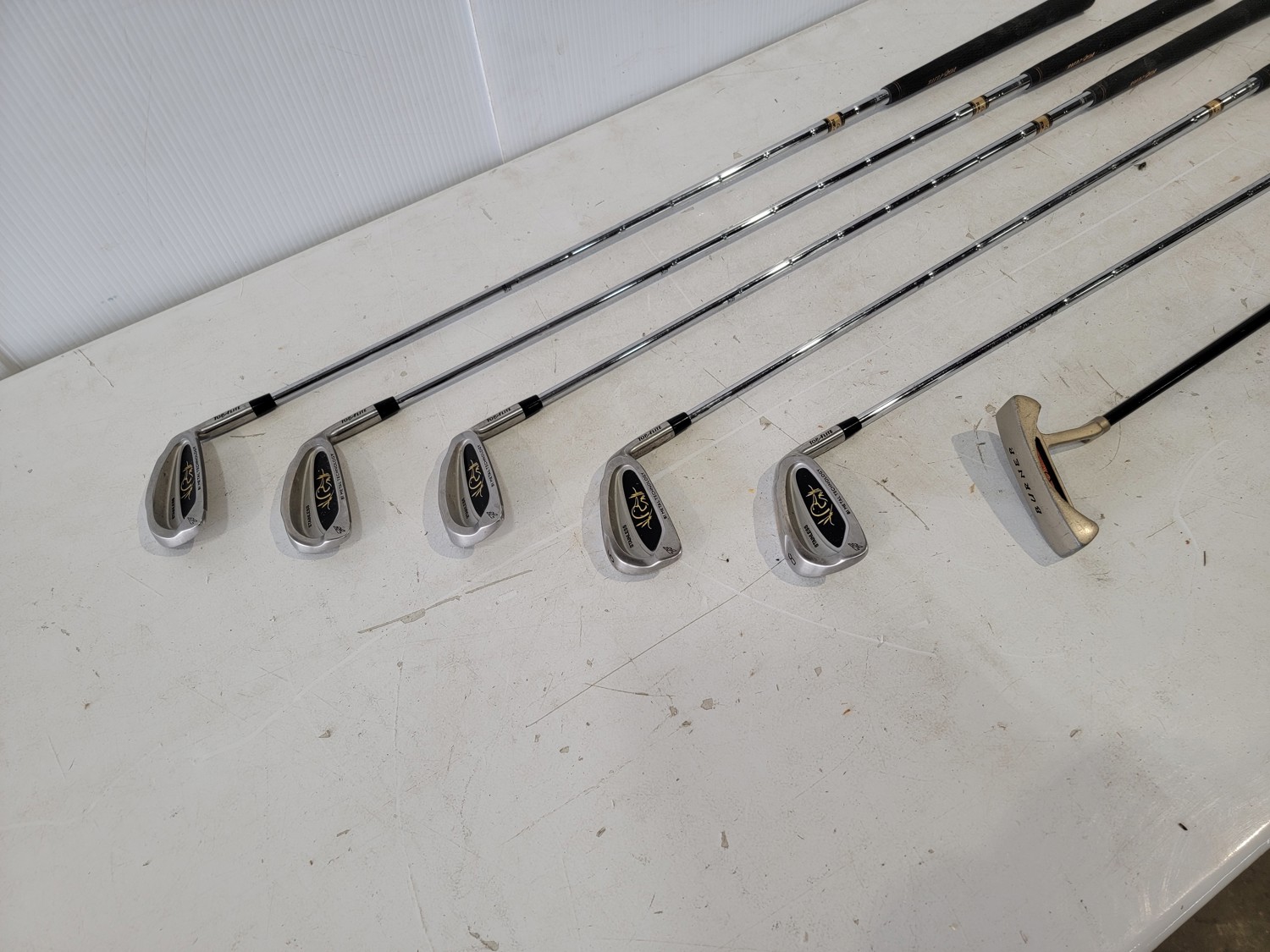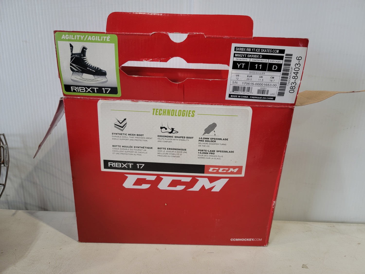 snowshoes, helmet, (7) pairs of skates, (5) bats, set of golf clubs
