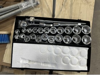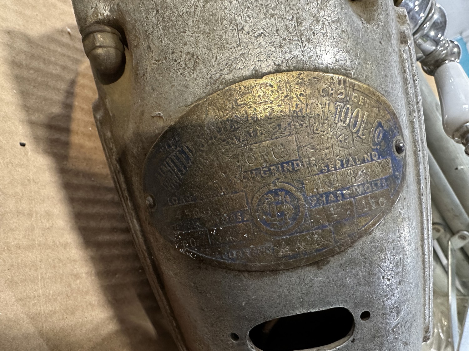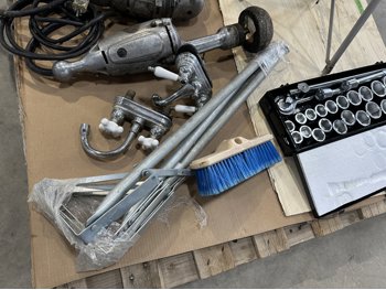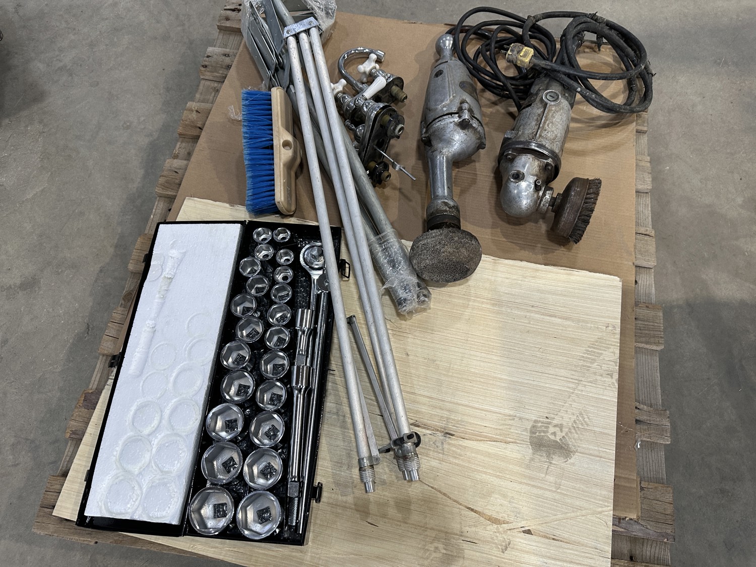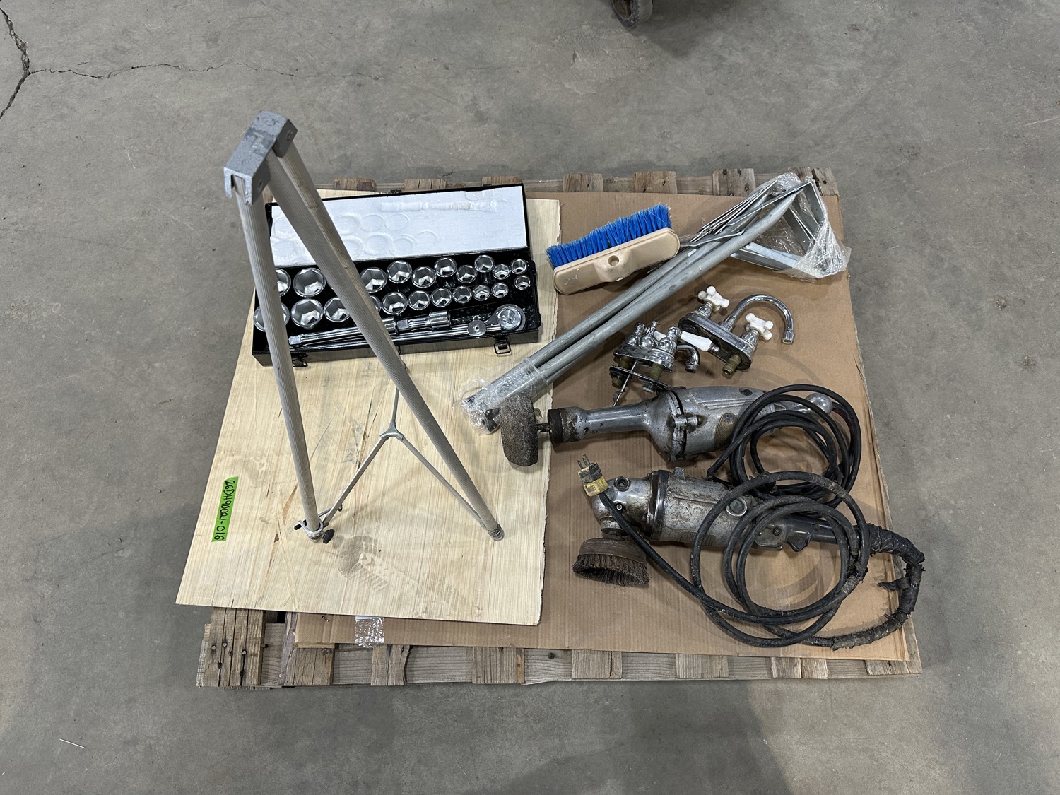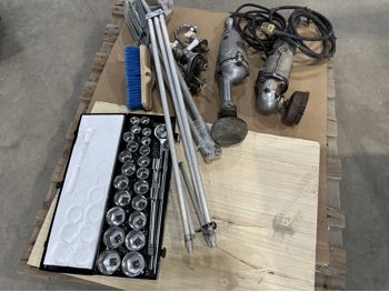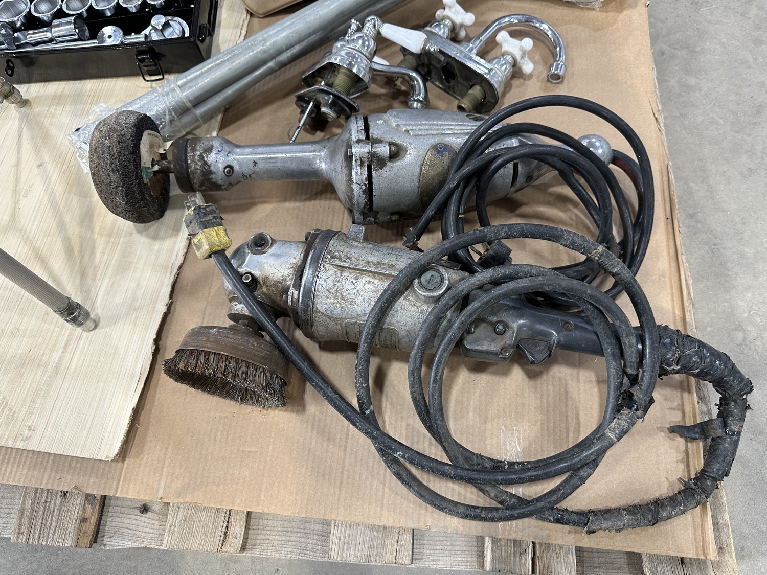 industrial grinders, table legs, tripod, vintage taps, 3/4 inch drive 26 piece socket set