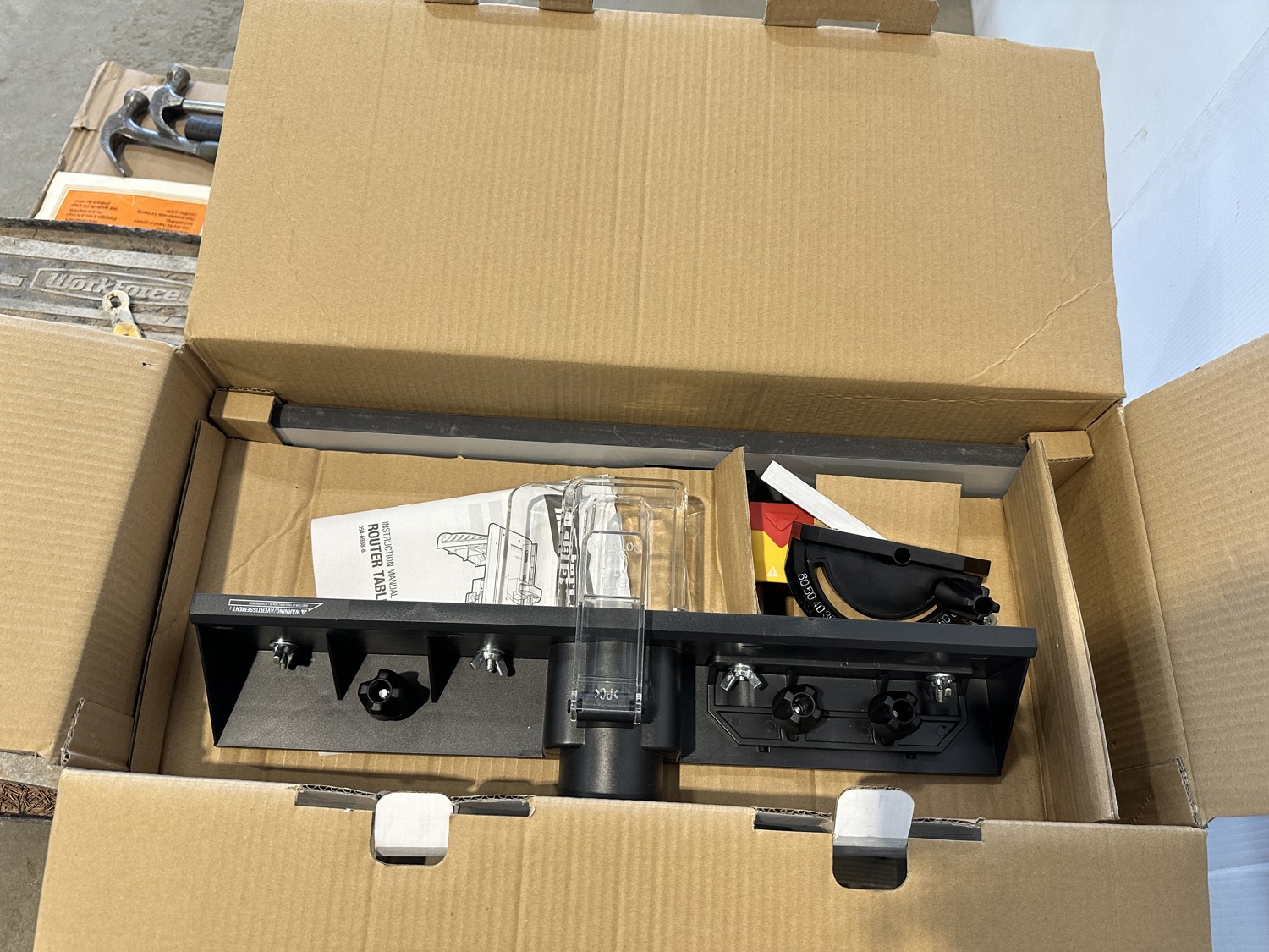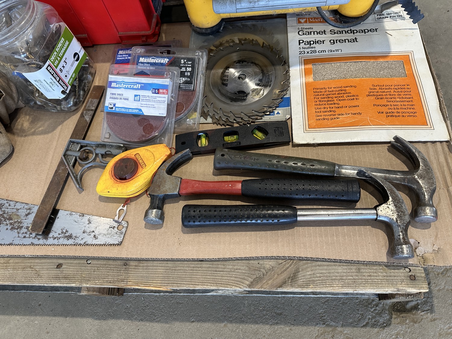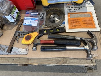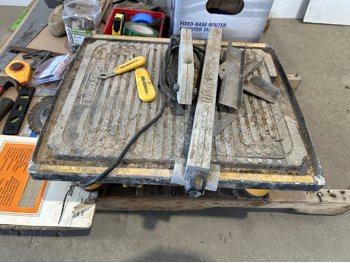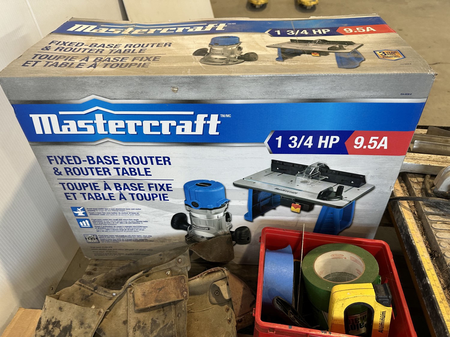 Workforce tile saw, Mastercraft 1-3/4 HP fixed base router and table, hand tools, bits, tool belts, blades