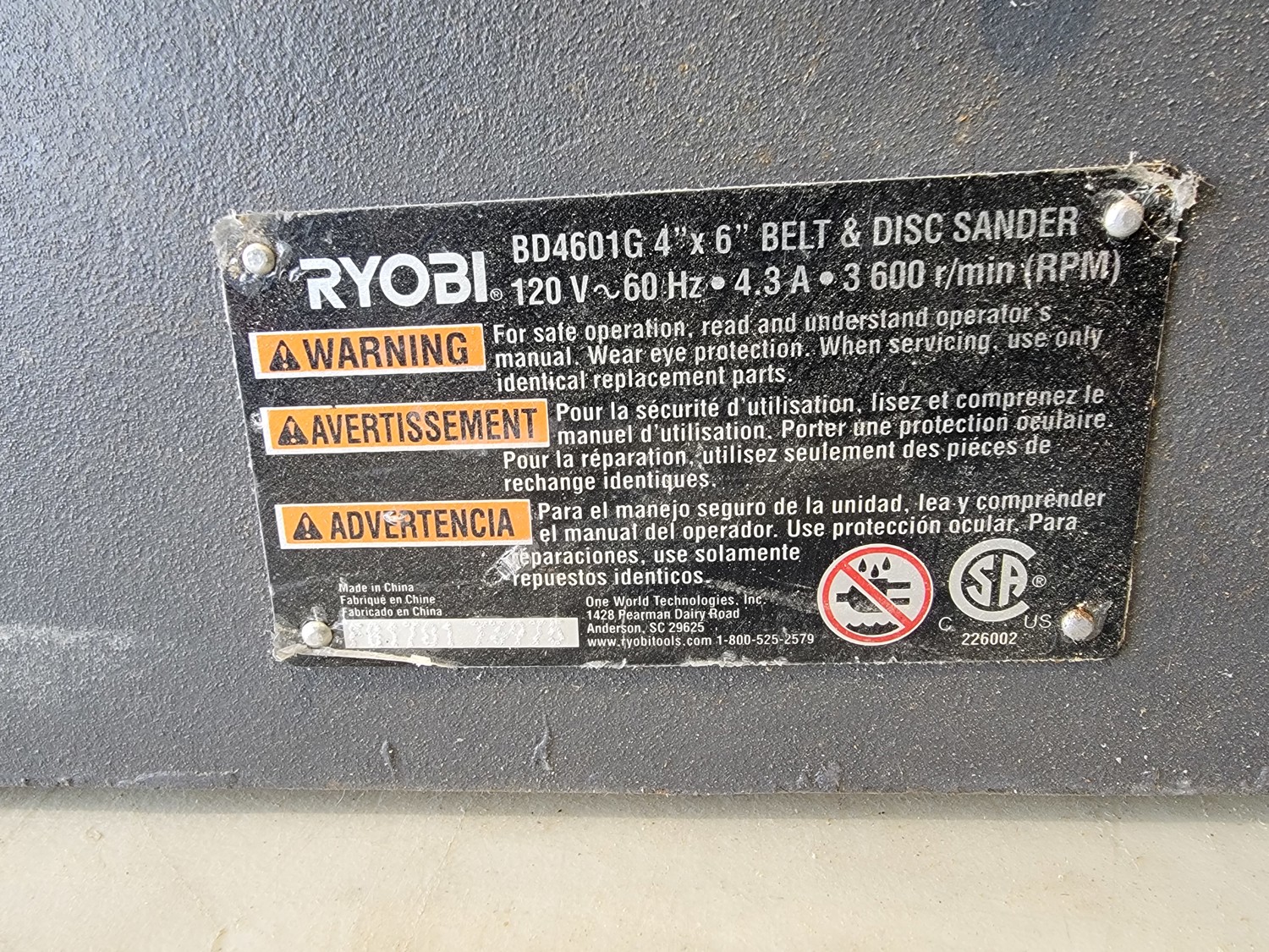 Ryobi 4 Inch X 6 Inch Belt and Disc Sander