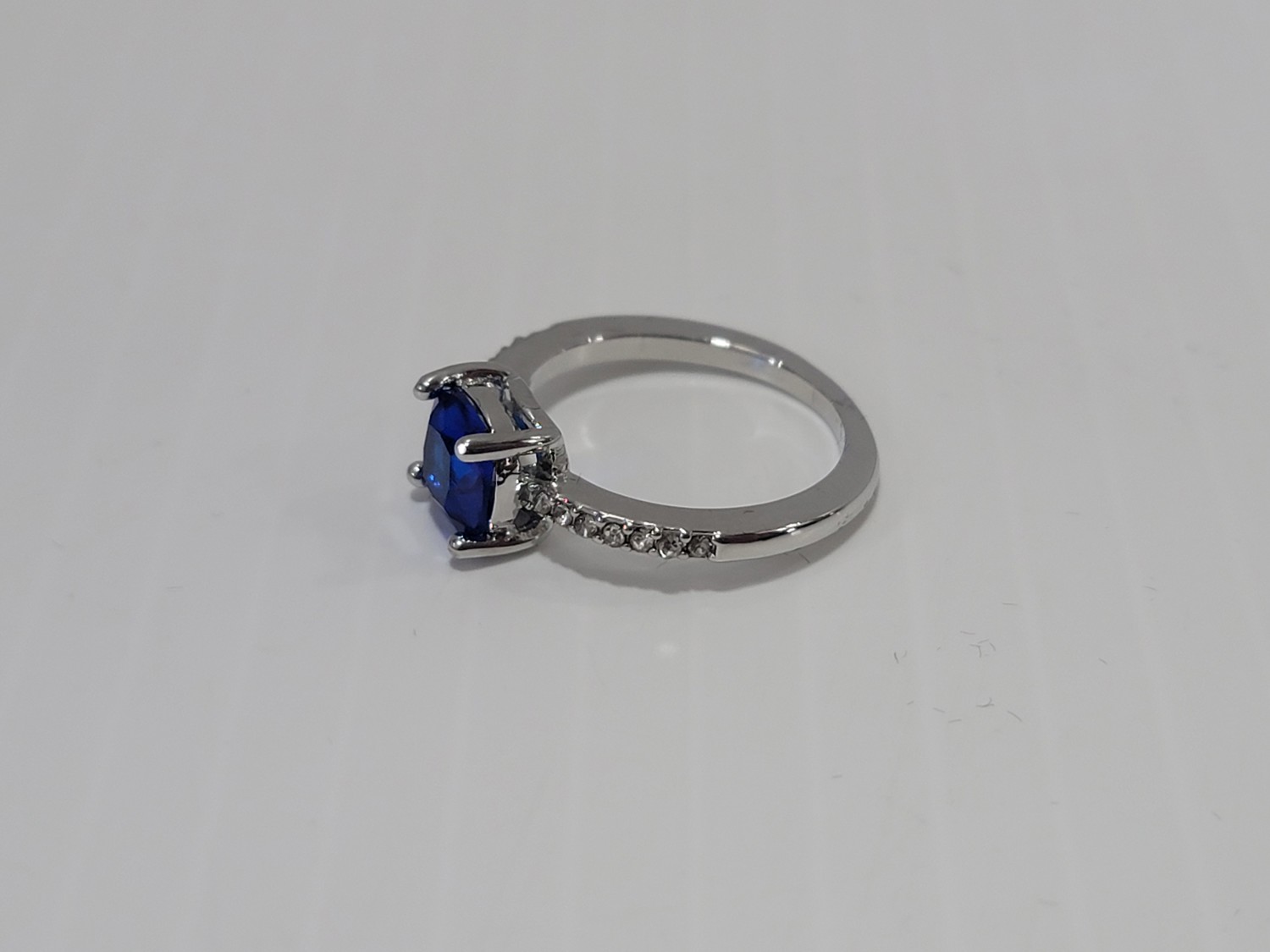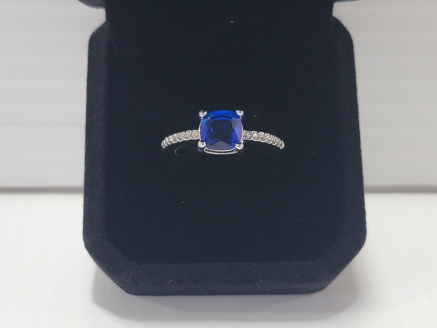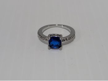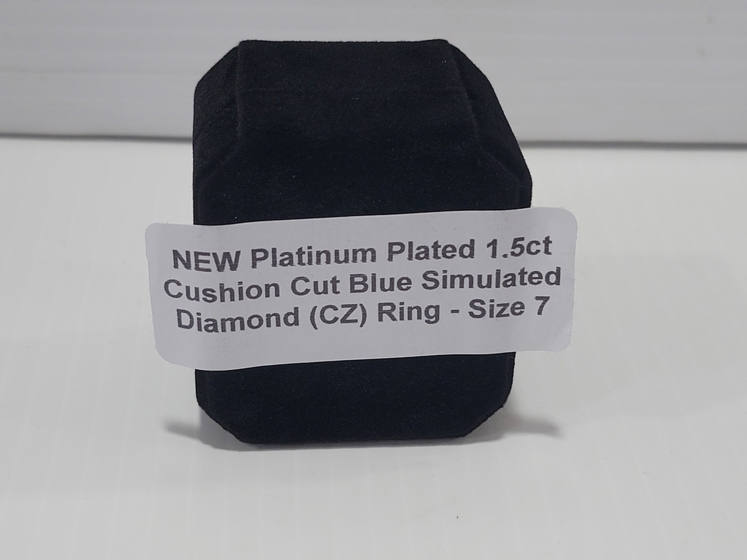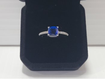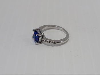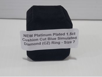 Smartlife Platinum Plated 1.5 Ct Cushion Blue Simulated Diamond Ring - Size 7 (Unused)