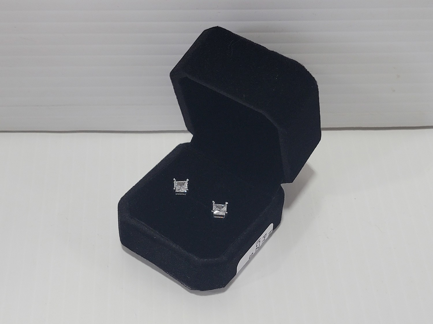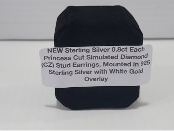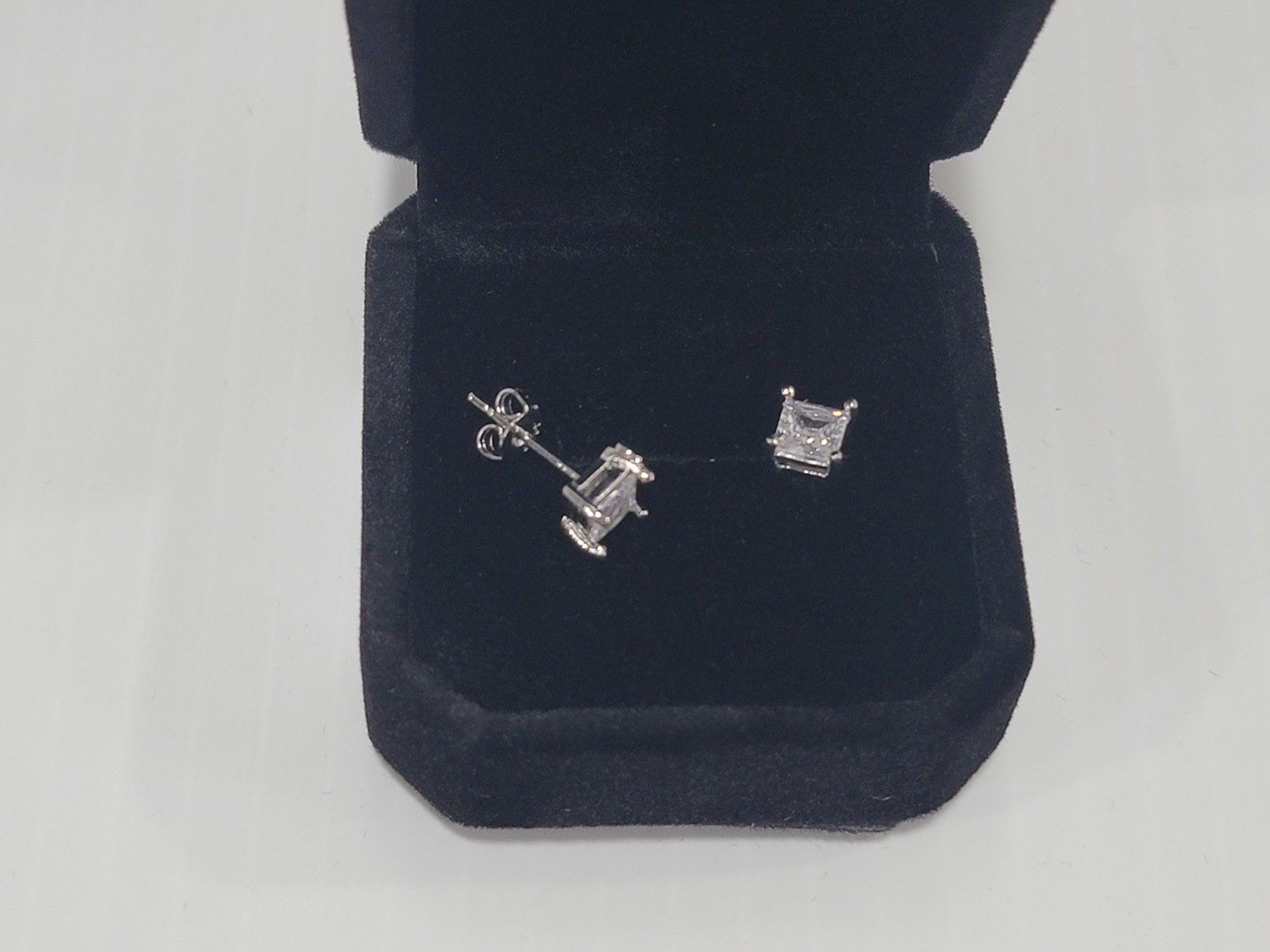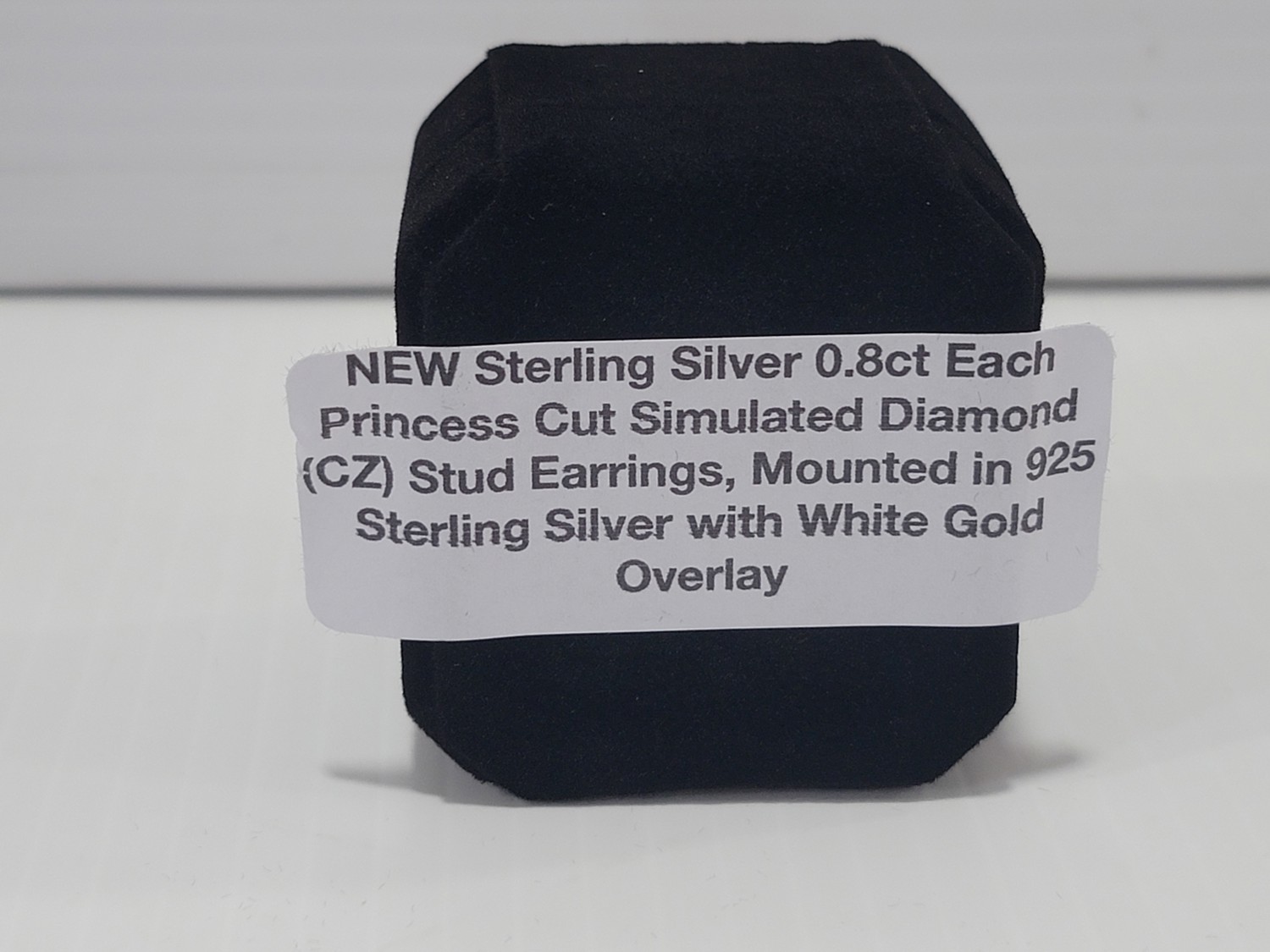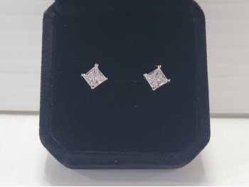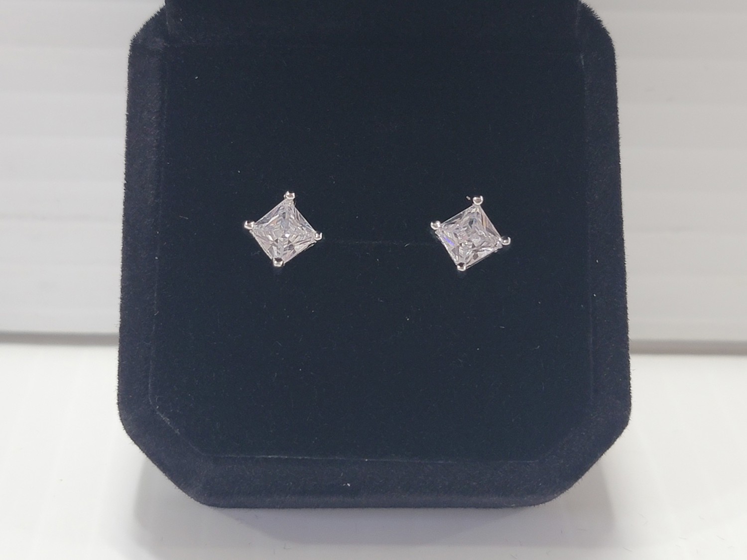 Smartlife Sterling Silver 0.8 Ct Each Princess Cut Simulated Diamond Stud Earrings (Unused)