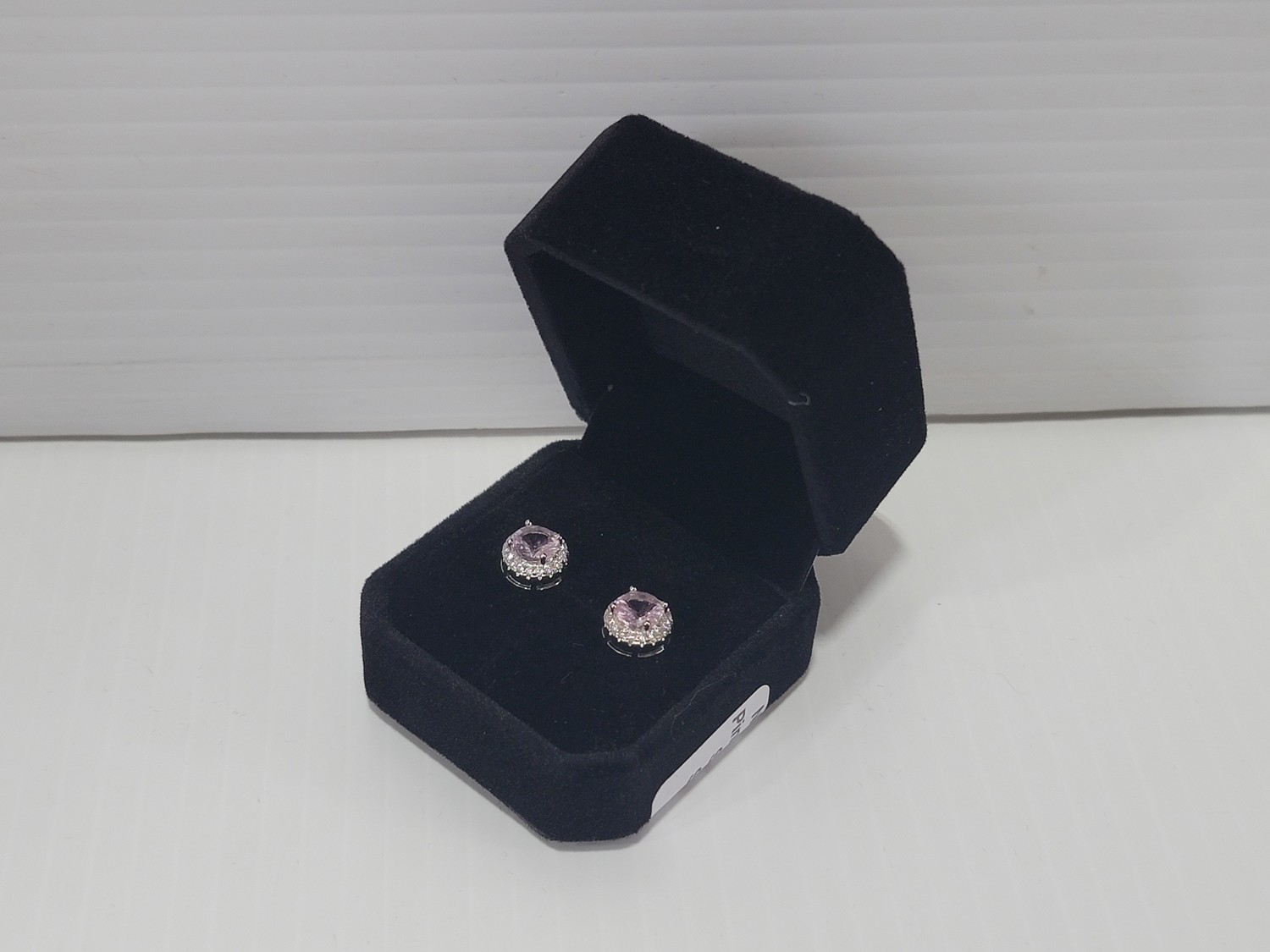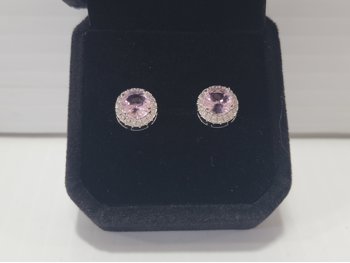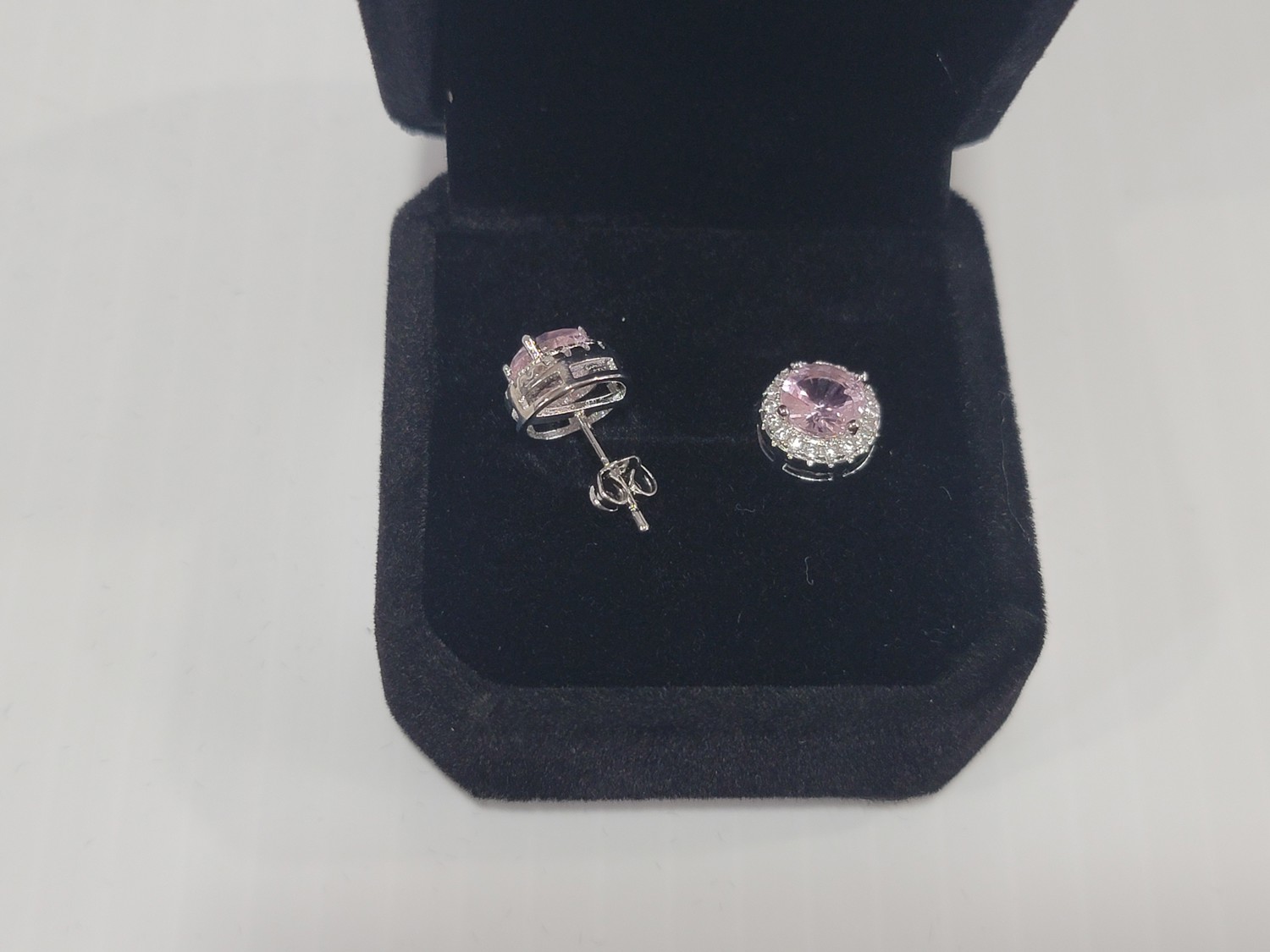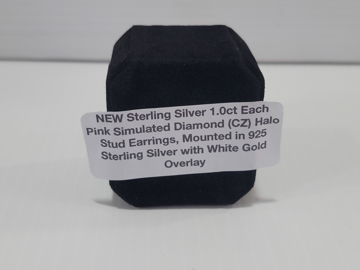 Smartlife Sterling Silver 1.0 Ct Each Pink Simulated Diamond Halo Stud Earrings (Unused)
