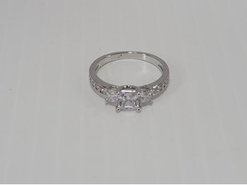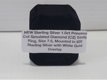 Smartlife Sterling Silver 1.0 Ct Princess Cut Simulated Diamond Trinity Ring - Size 7.5 (Unused)