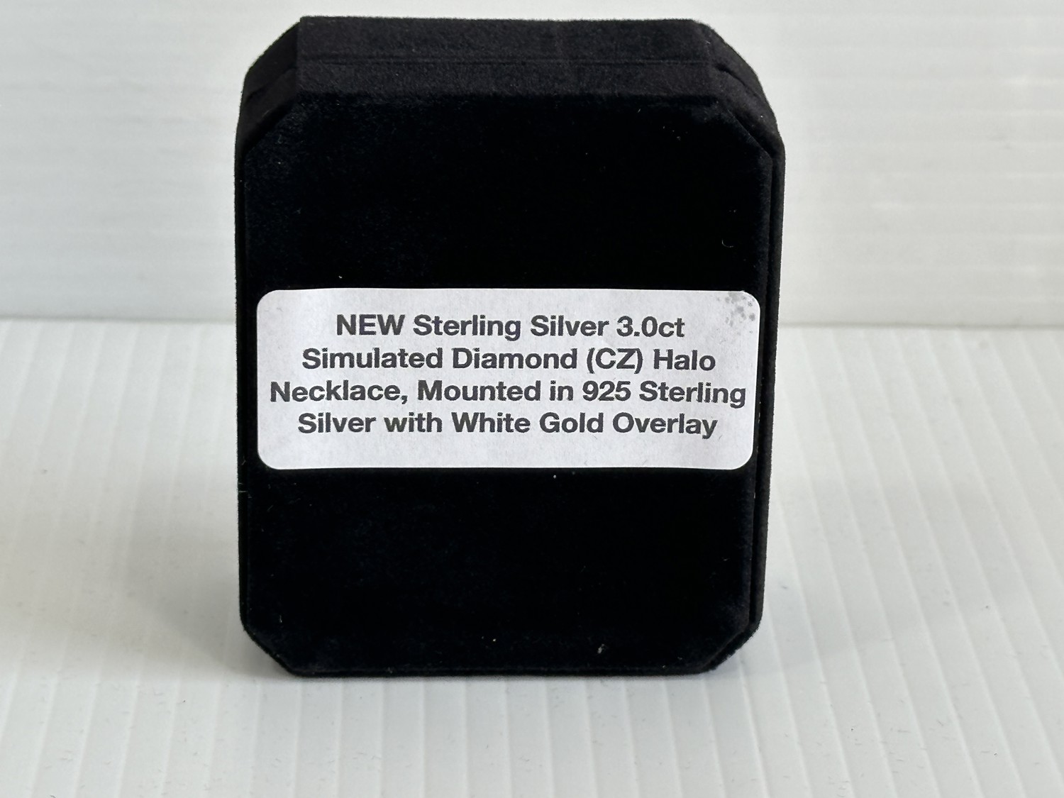Smartlife Sterling Silver 3.0 Ct Simulated Diamond Halo Necklace (Unused)