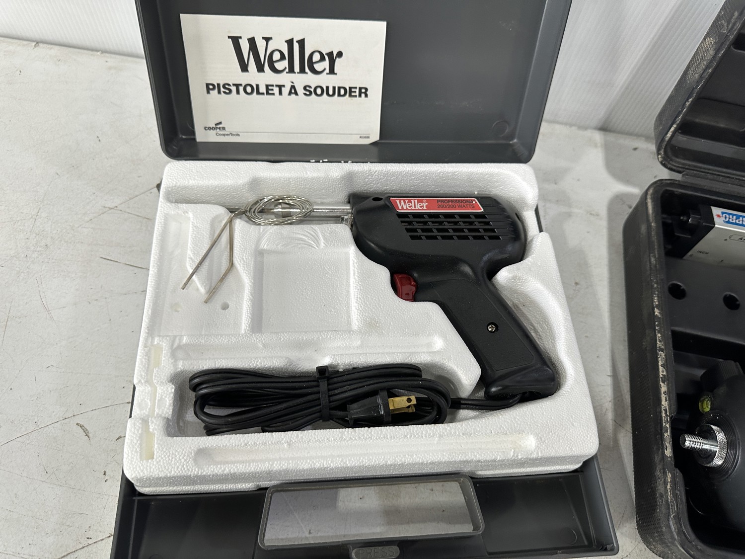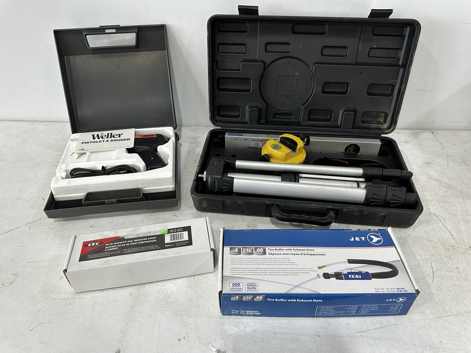 Soldering Gun, Laser Level, Tire Buffer and Magnetic Dial Indicator Stand
