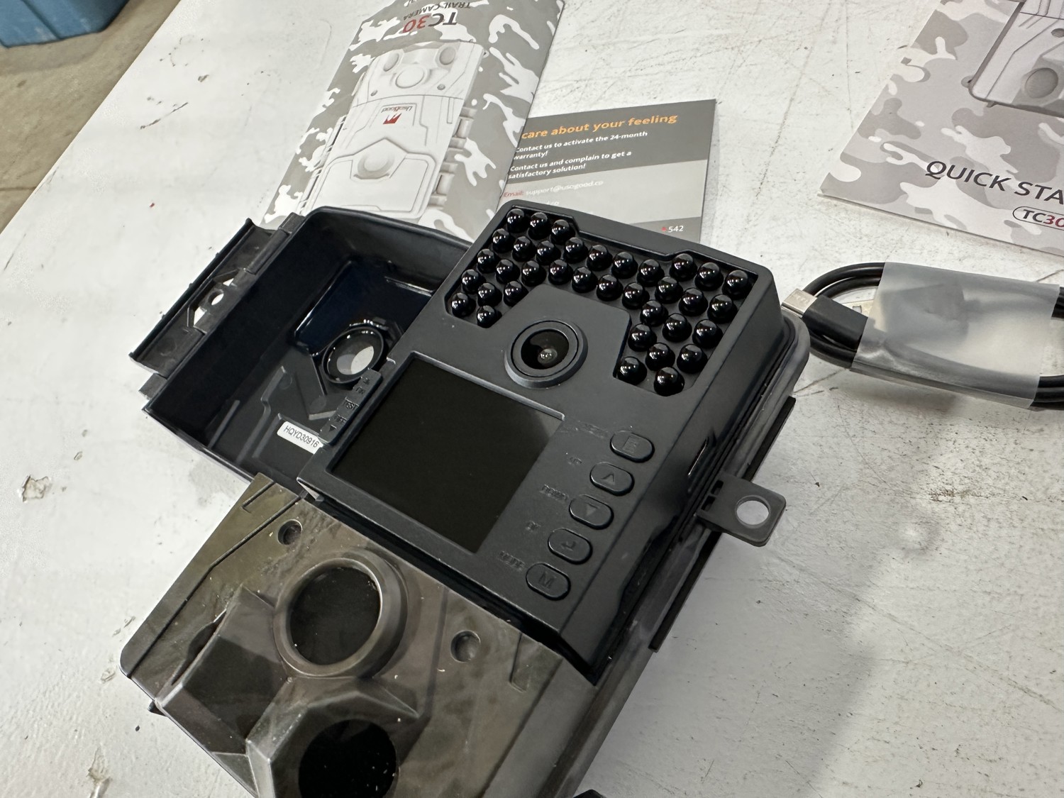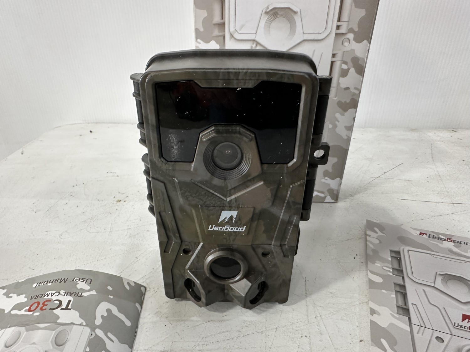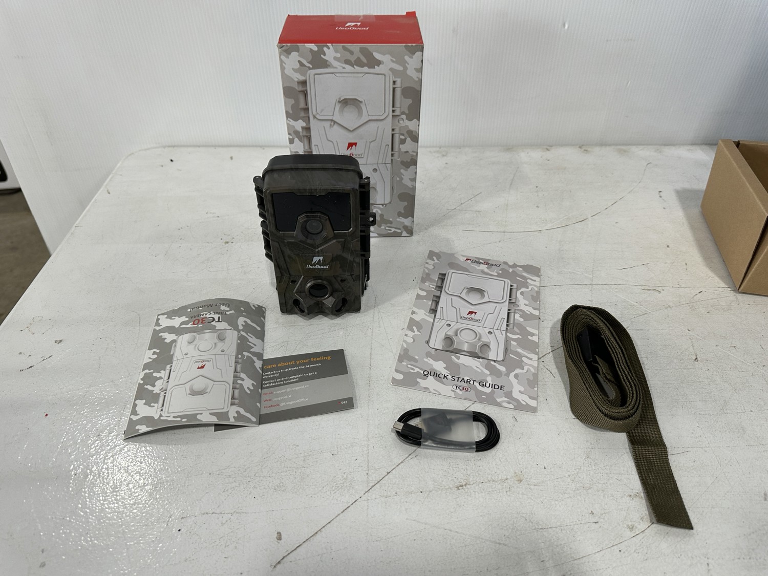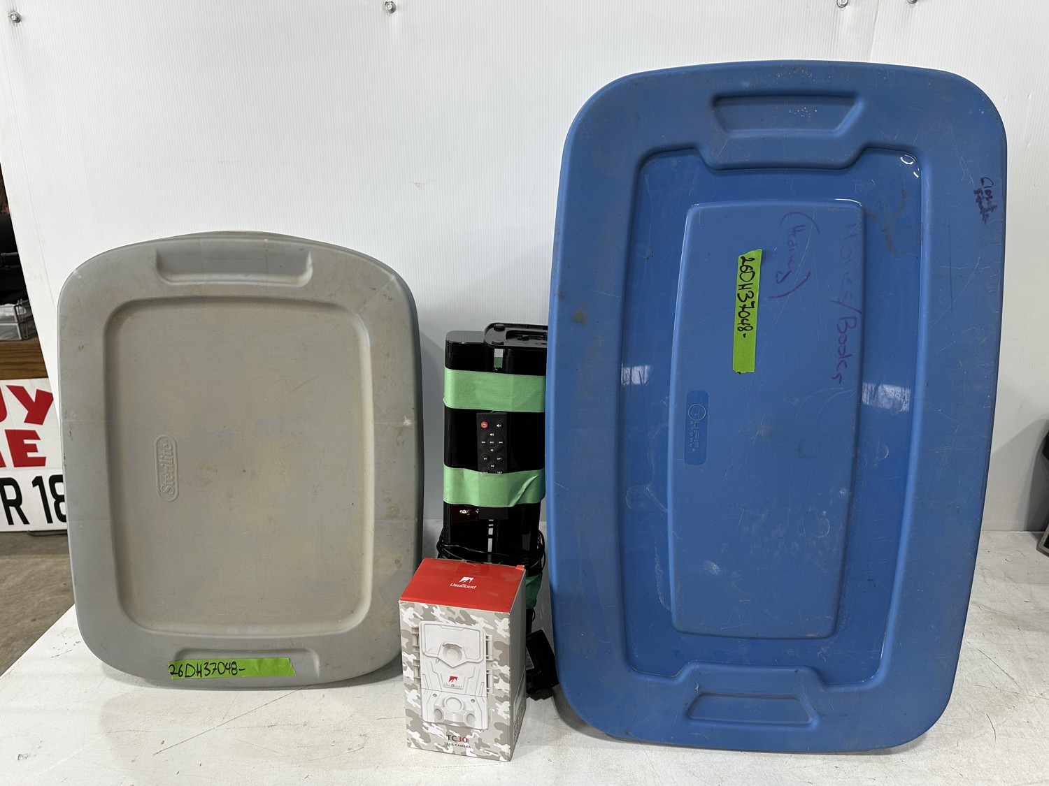 Trail Camera, (2) Speakers and (2) Storage Totes
