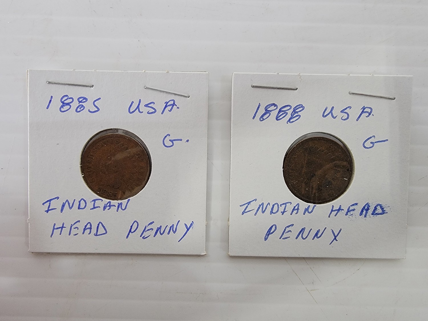 (1) 1885 and (1) 1888 USA Indian Head Pennies