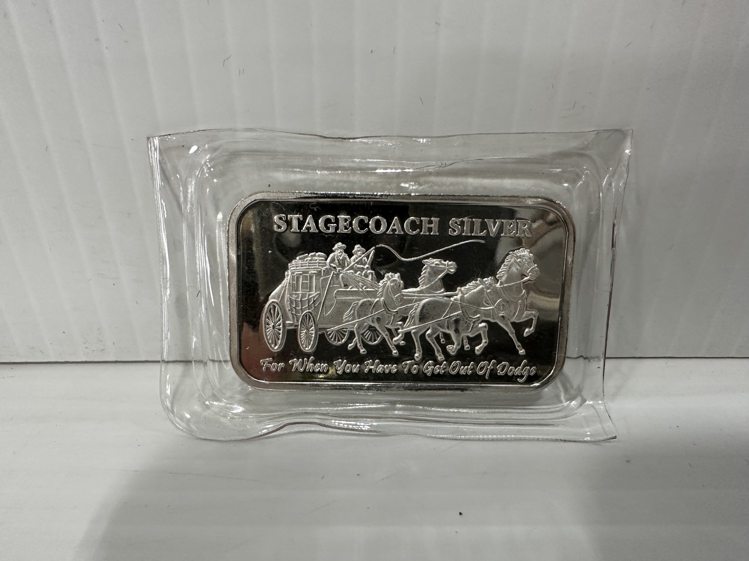 1 oz Stage Coach .999 Fine Silver Art Bar