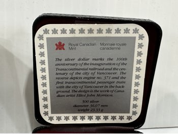 1986 100Th Anniversary Vancouver Train Canadian Silver Dollar