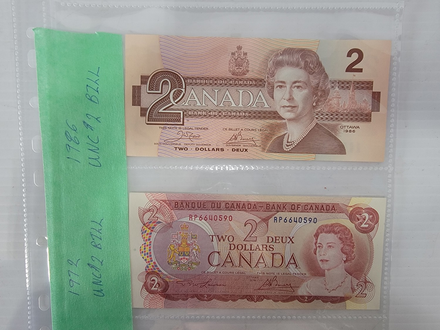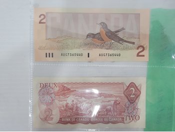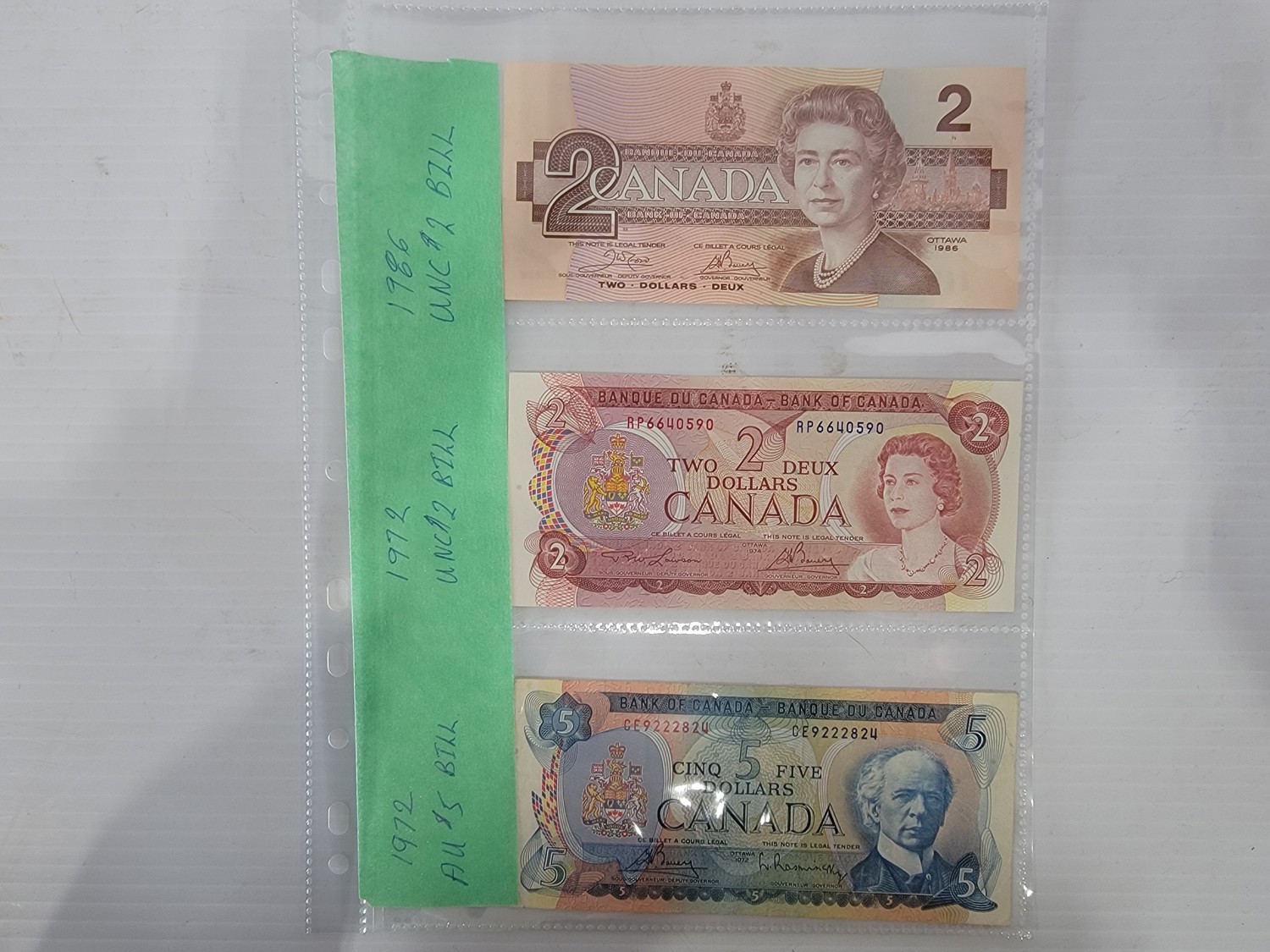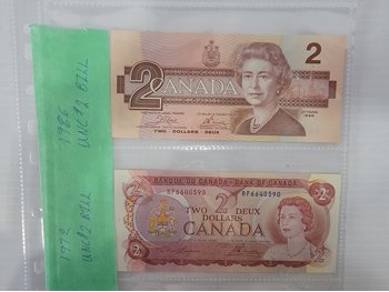 1986 Two Dollar Bill, 1972 Two Dollar Bill and 1972 Five Dollar Bill