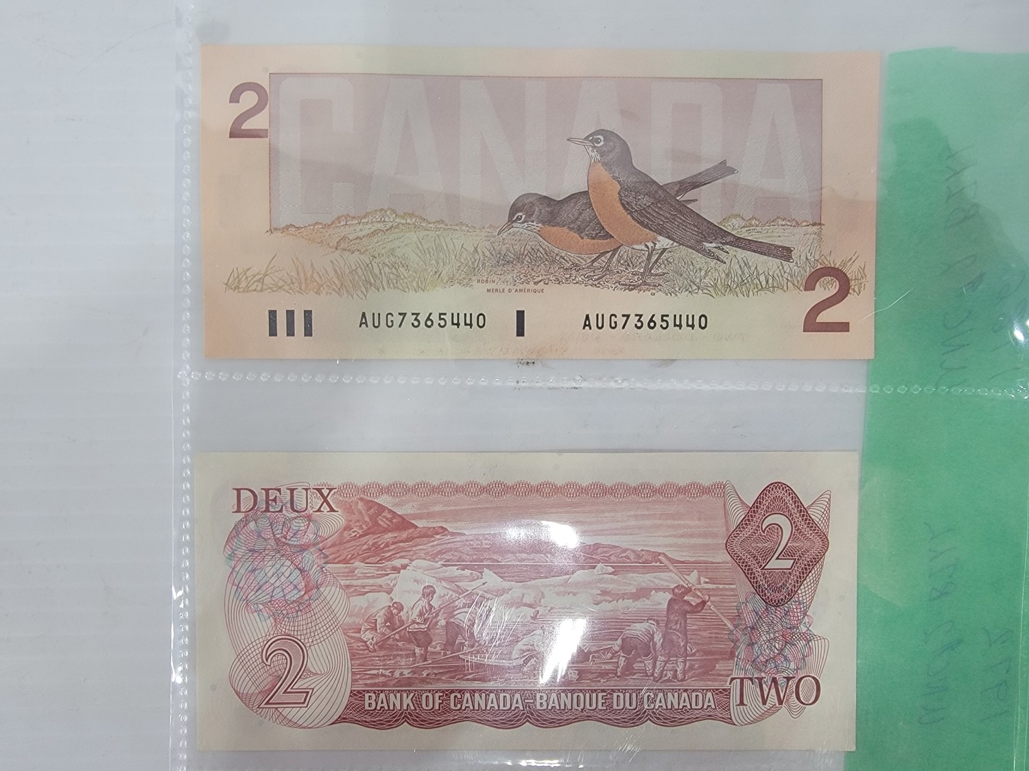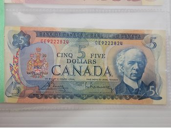 two dollar bills are uncirculated, five dollar bill is in almost uncirculated condition