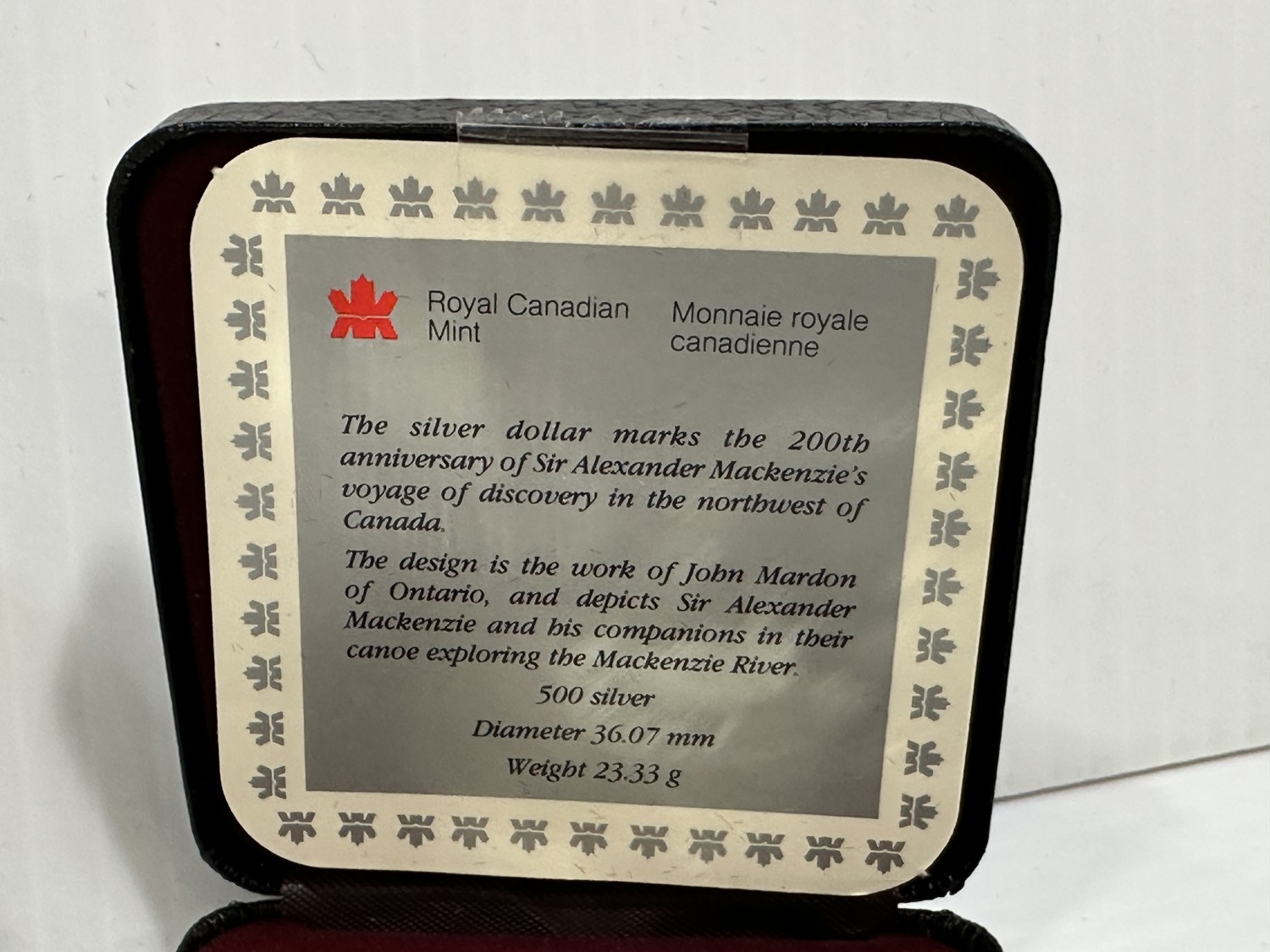 1989 200Th Anniversary Sir Alexander Mackenzie's Voyage Canadian Silver Dollar