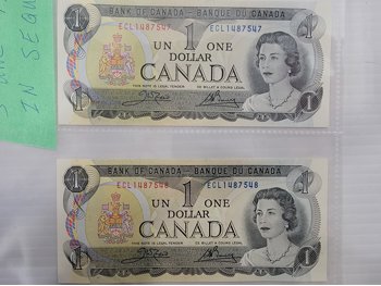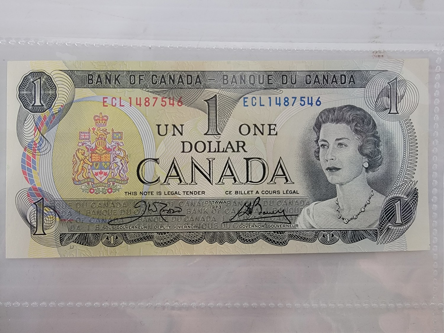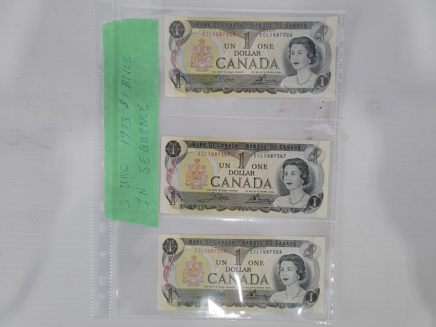 (3) 1973 Uncirculated Canadian One Dollar Bills in Sequence