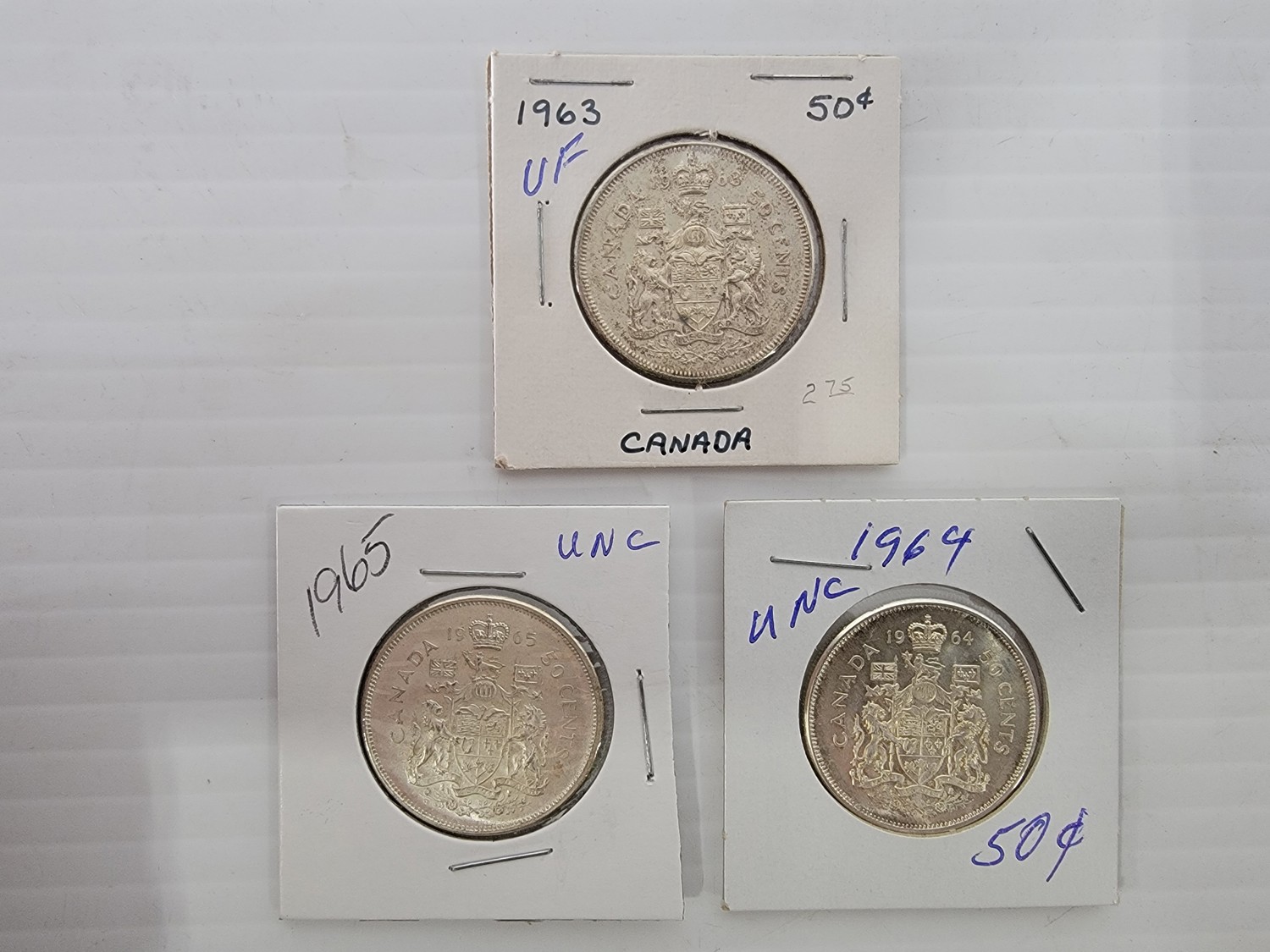 (3) Canadian Silver Half Dollars