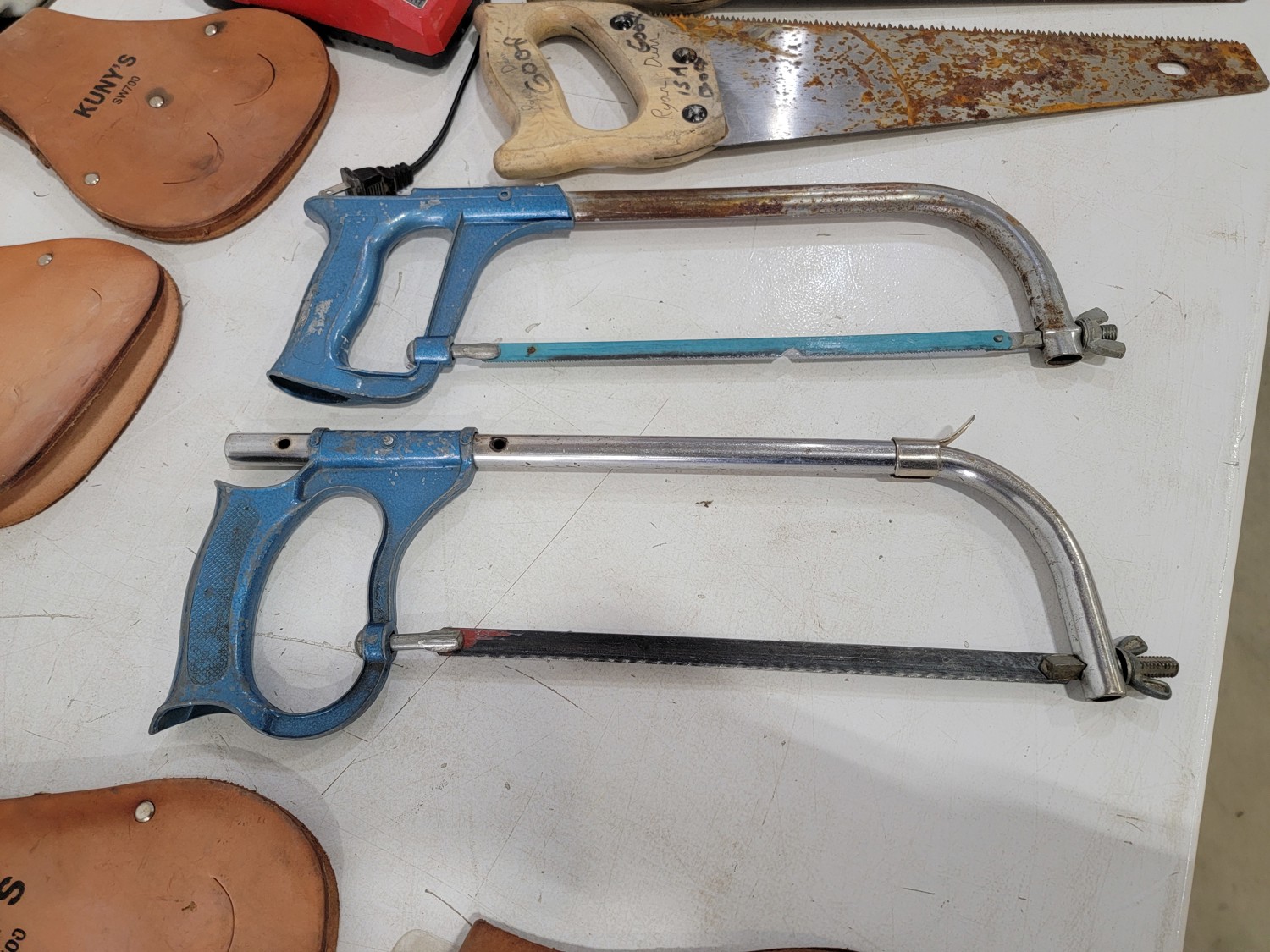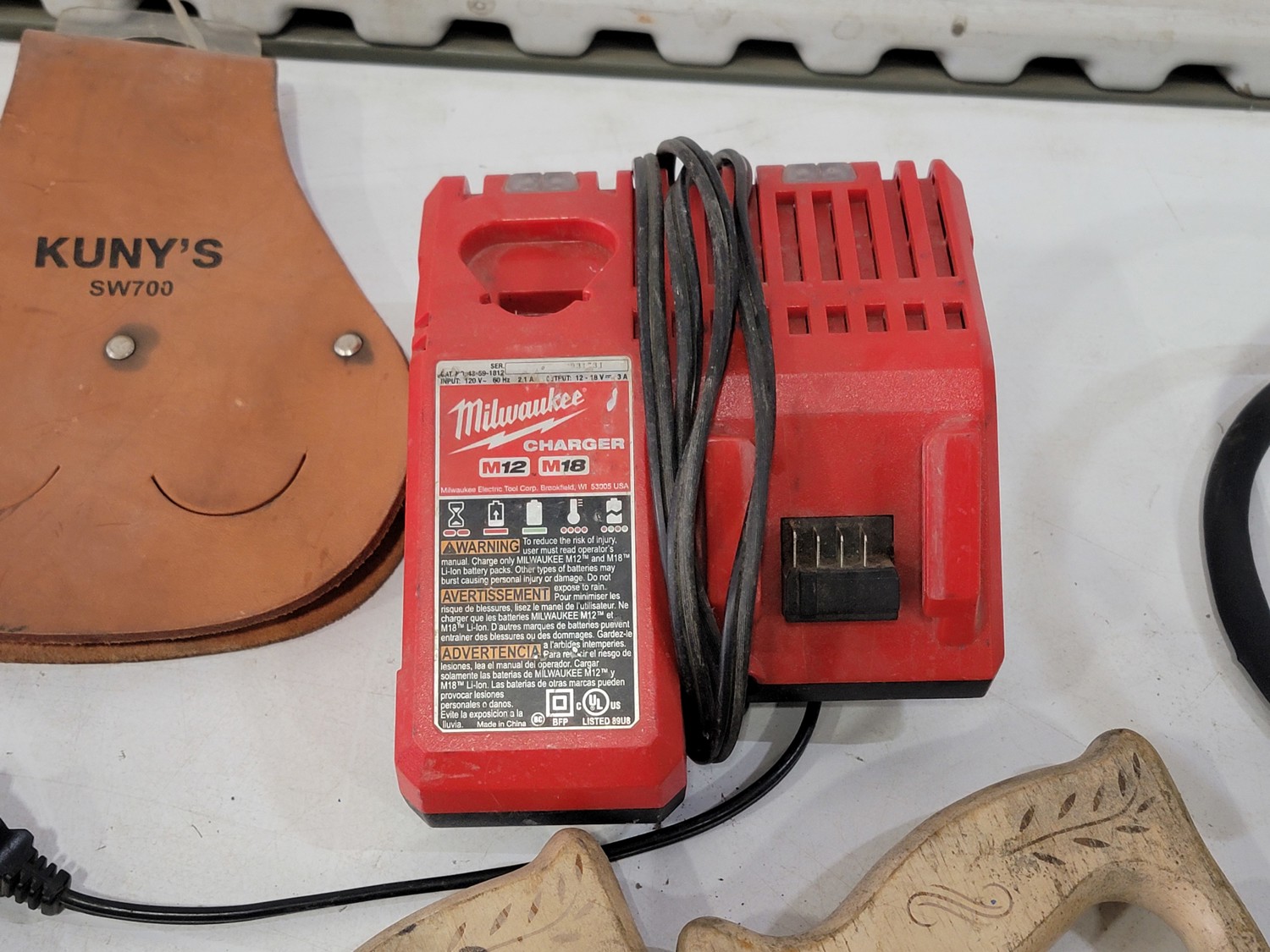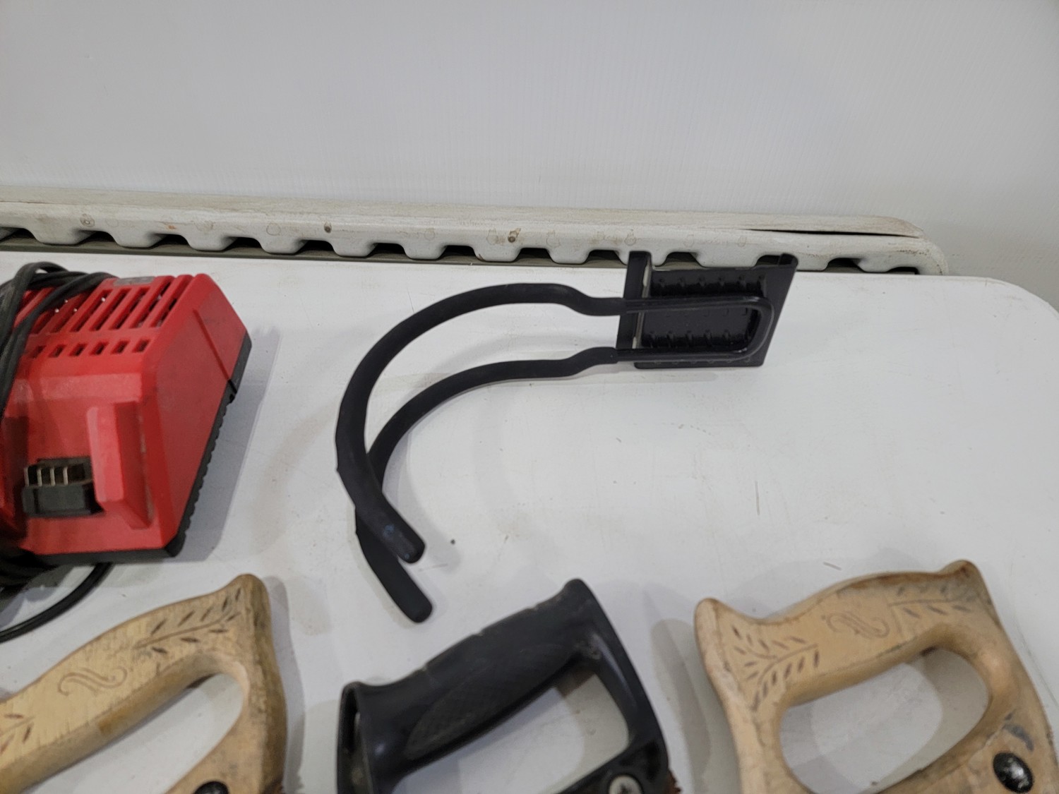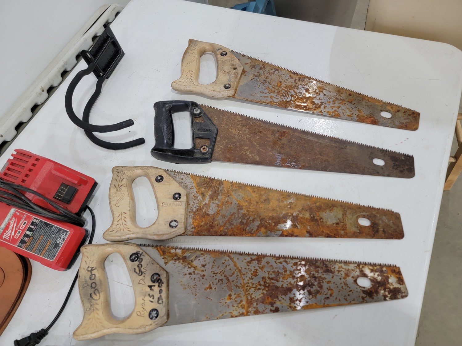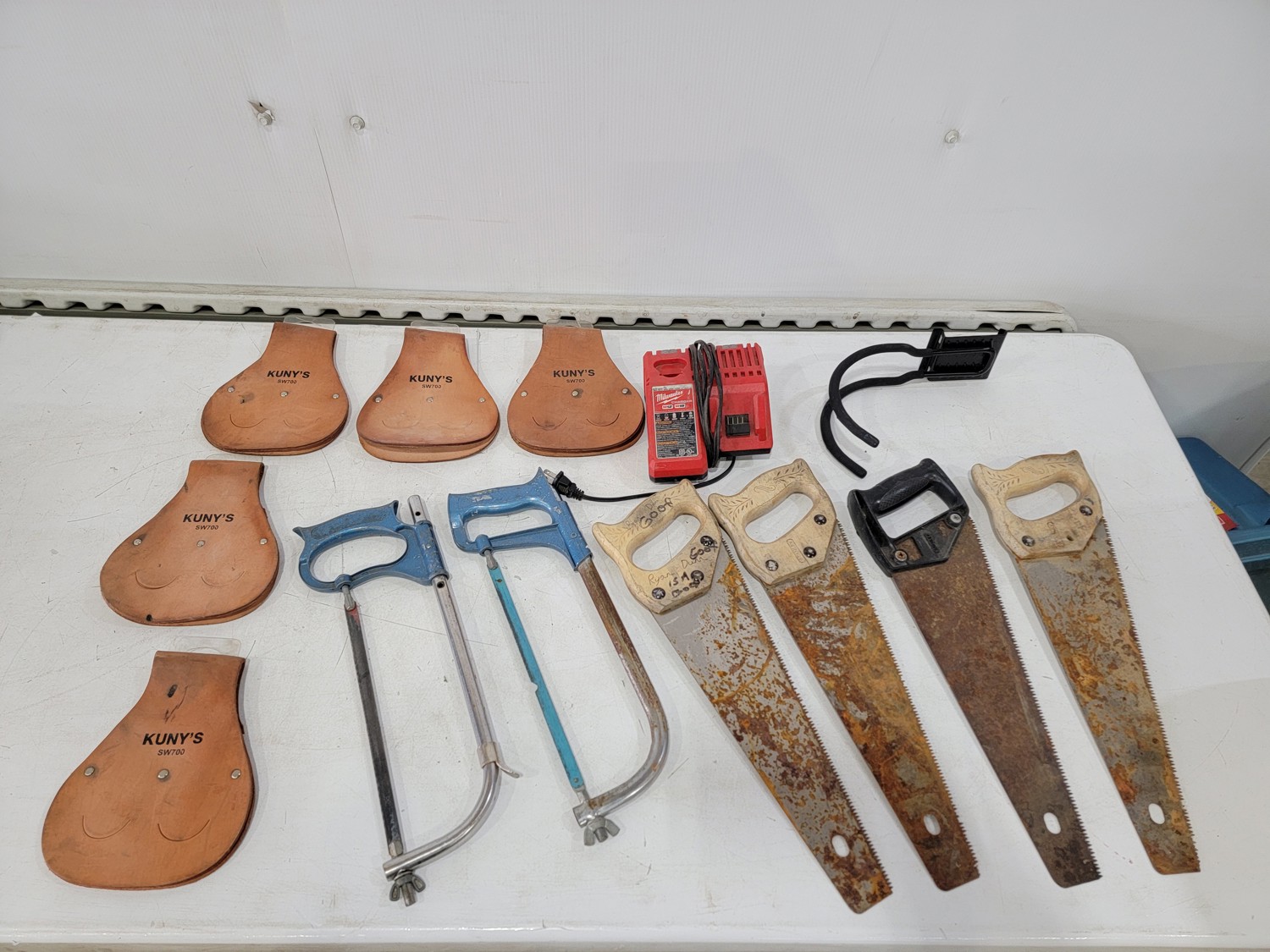 (6) Hand Saws, (5) Kuny's Wrench Holders and Milwaukee Battery Charger