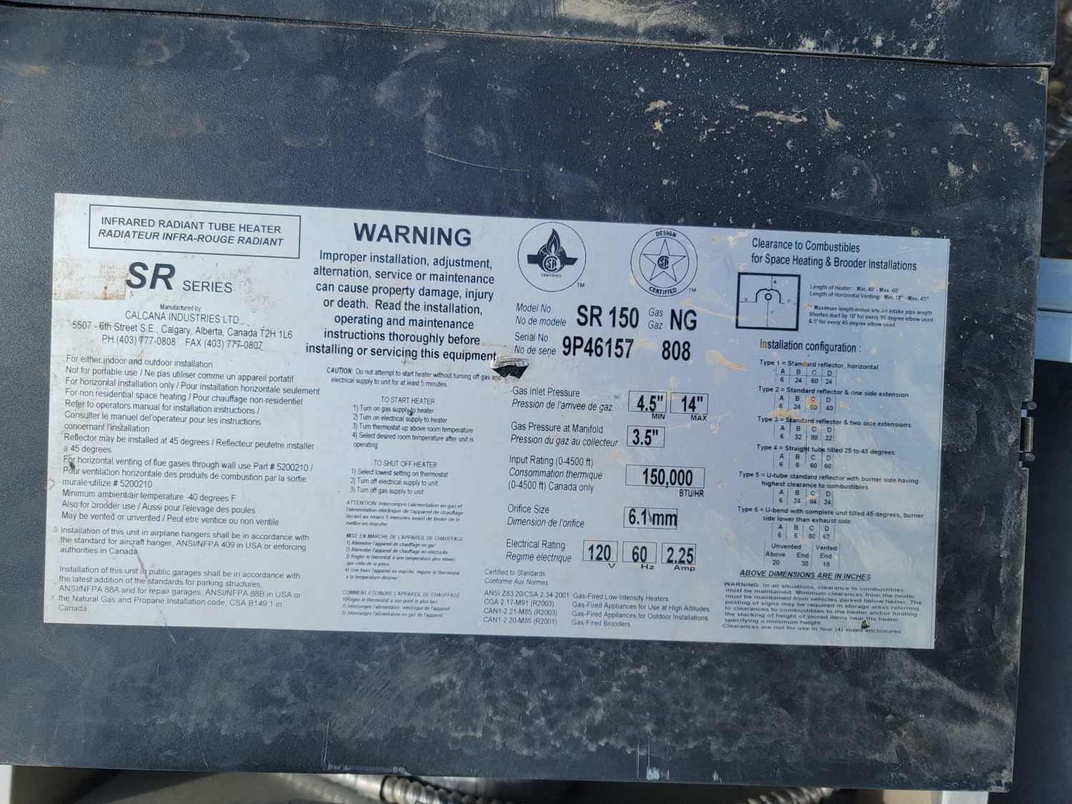 Calcana SR150 40 Ft Natural Gas Infrared Radiant Tube Heater