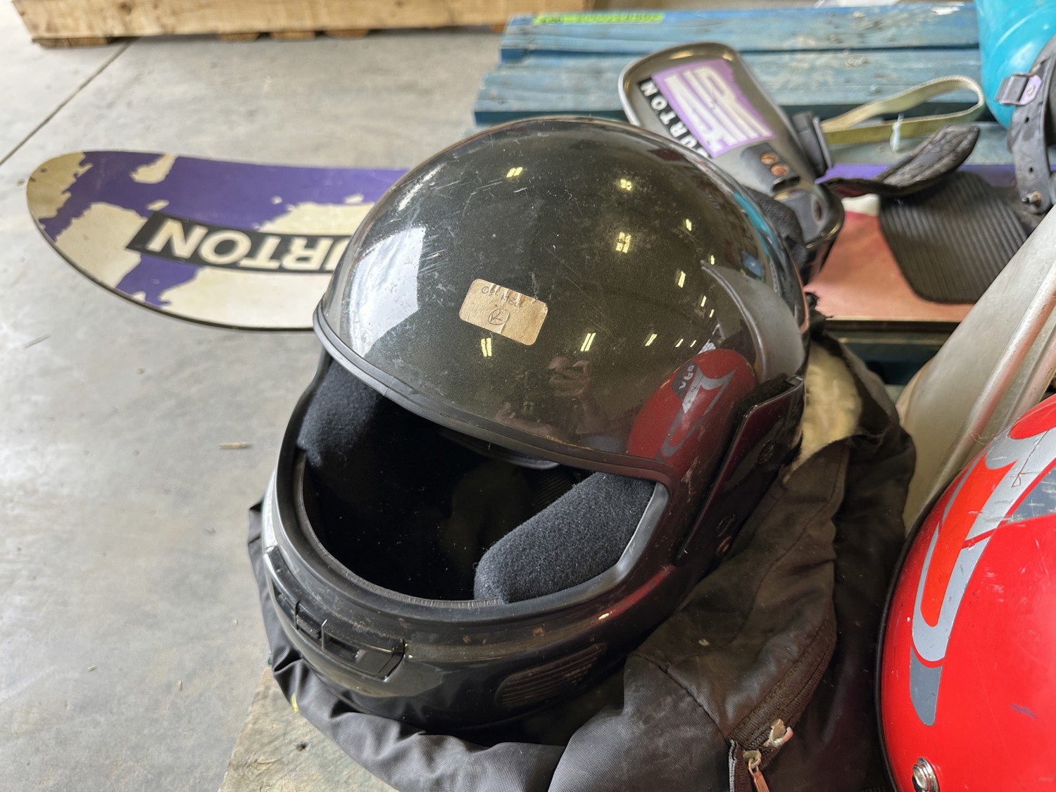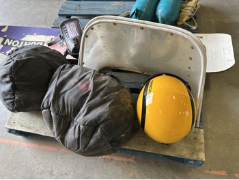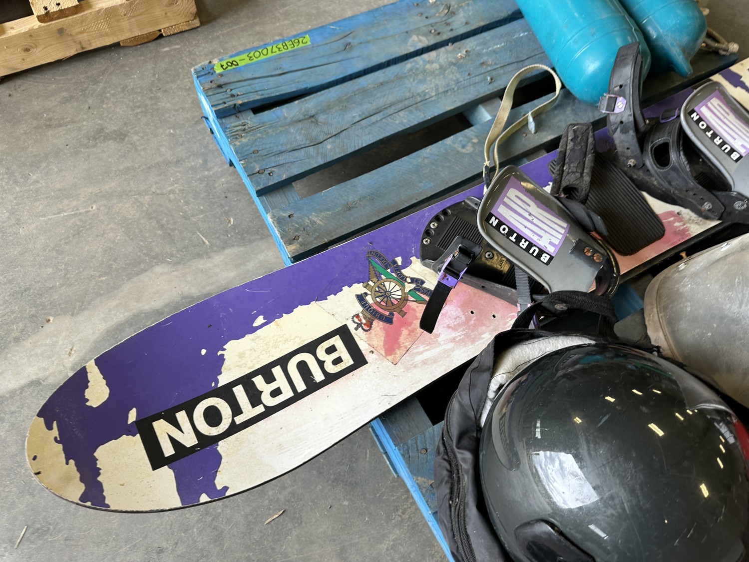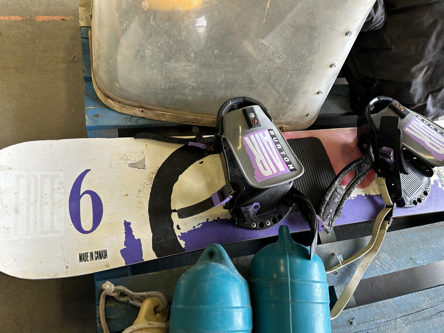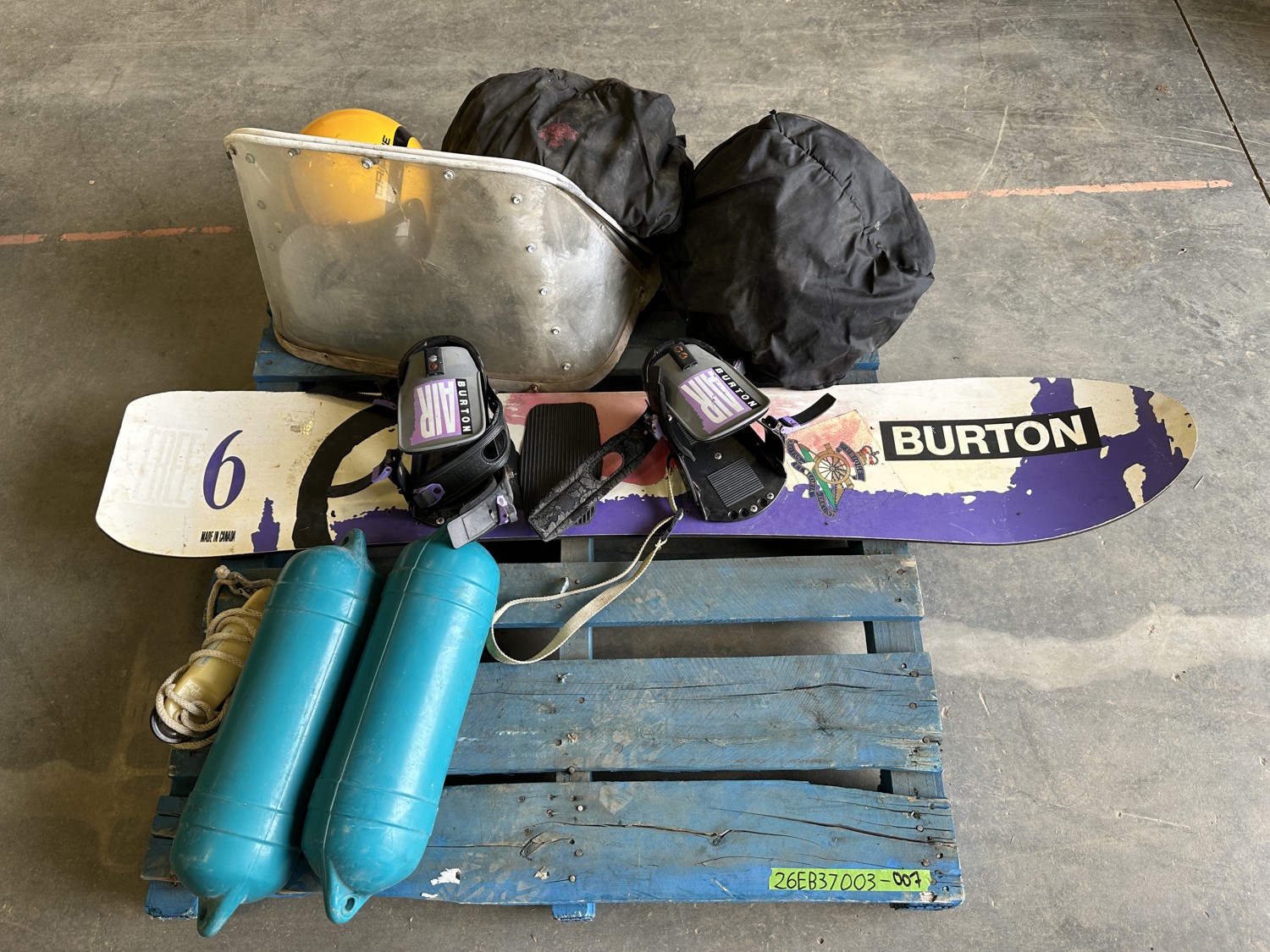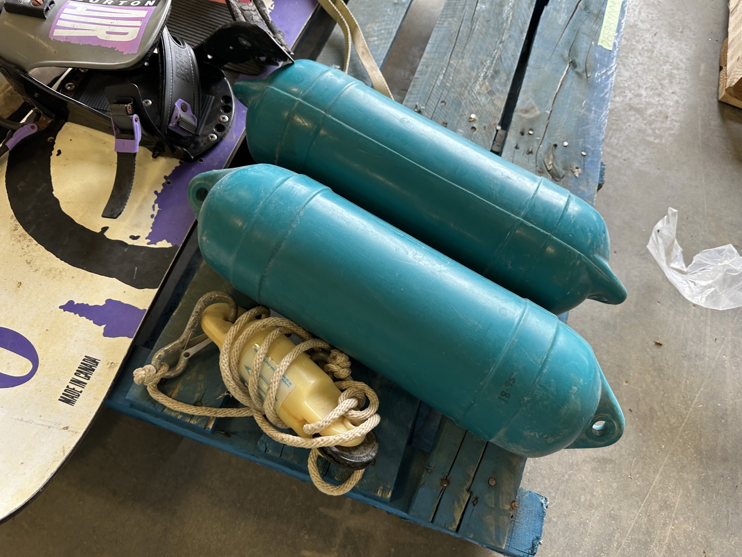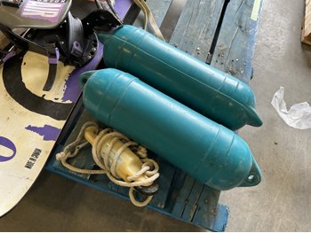 Burton wakeboard, dock bumpers, helmets