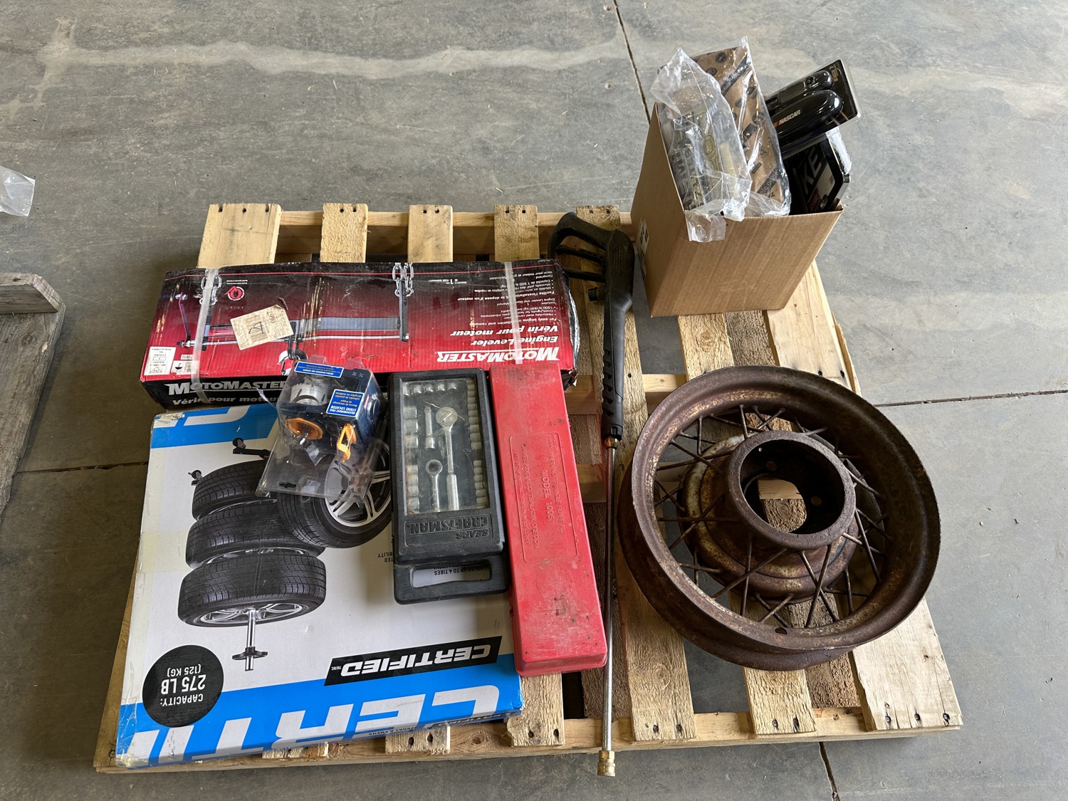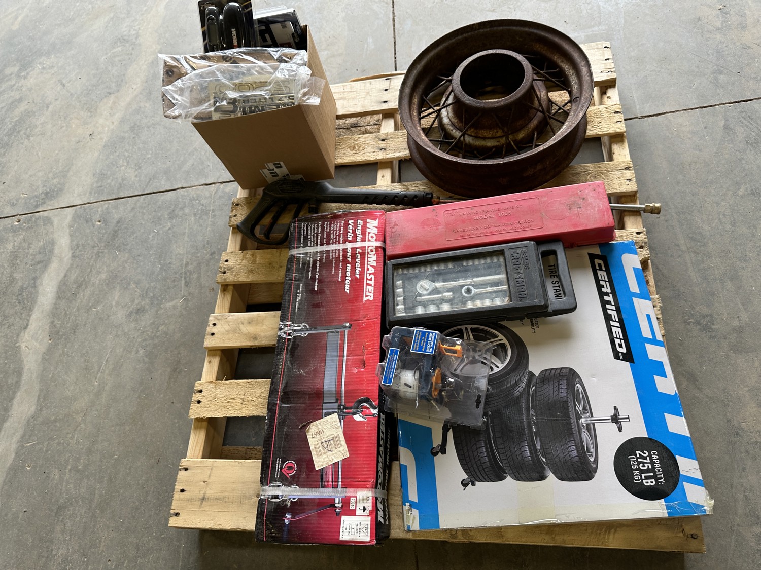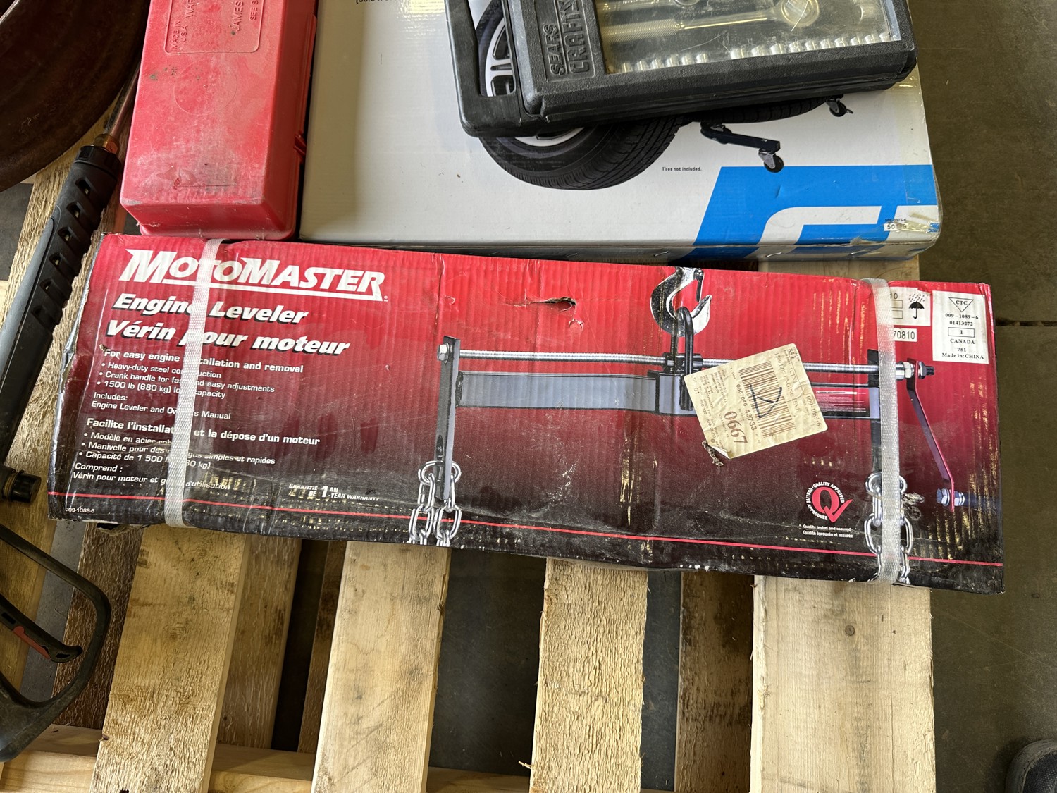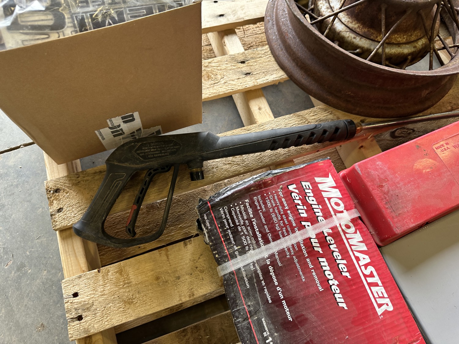 strike locator, tire stand, Motomaster engine leveler, pressure washer wand, digital tire gauge