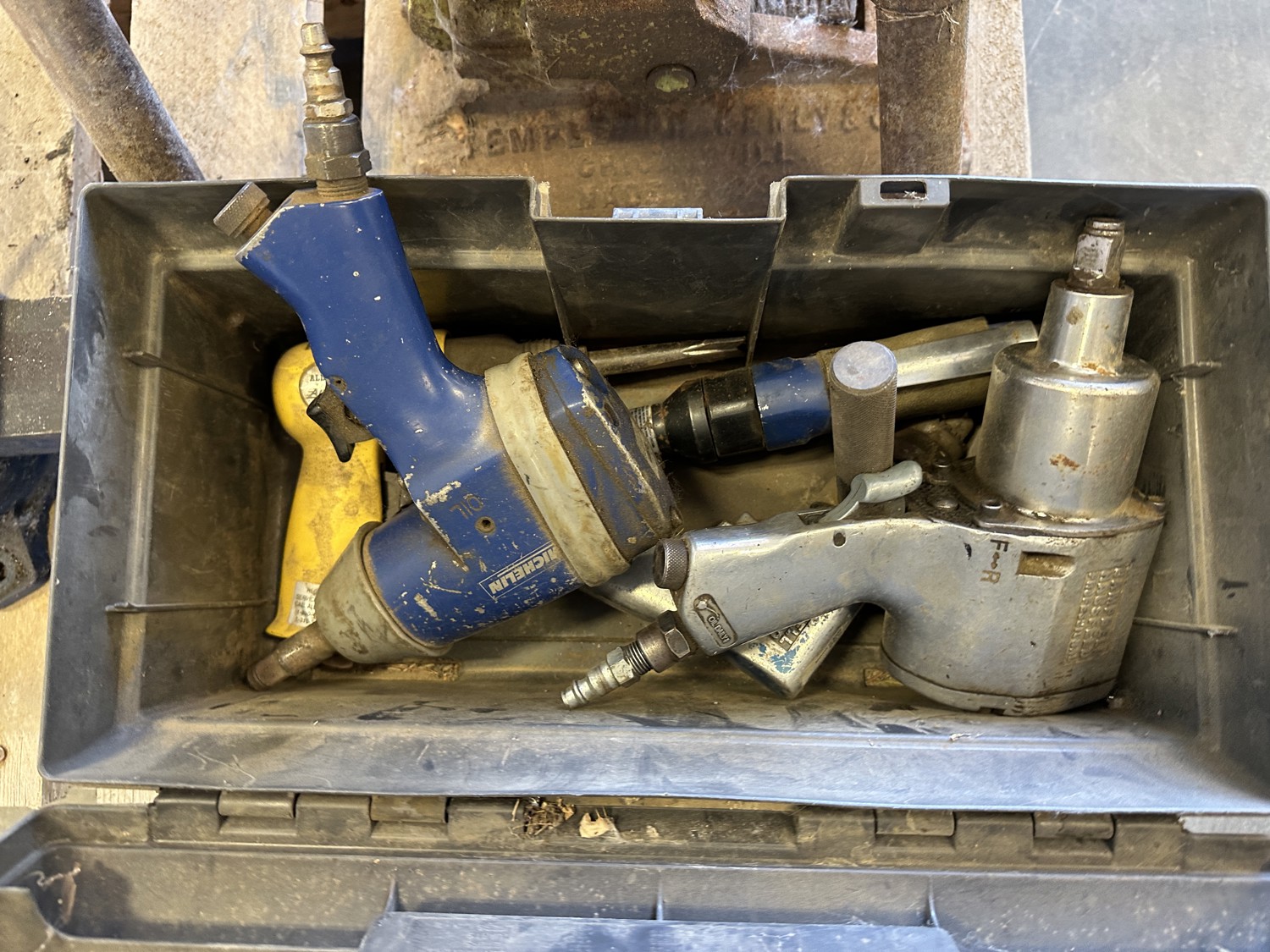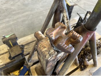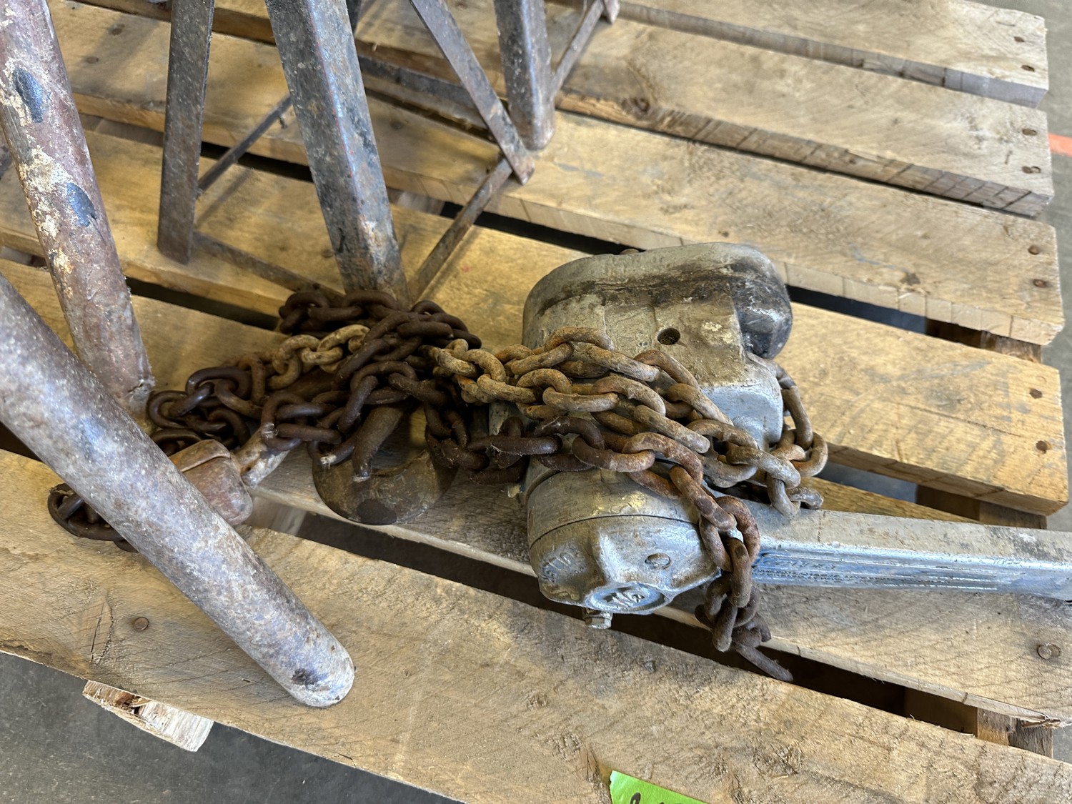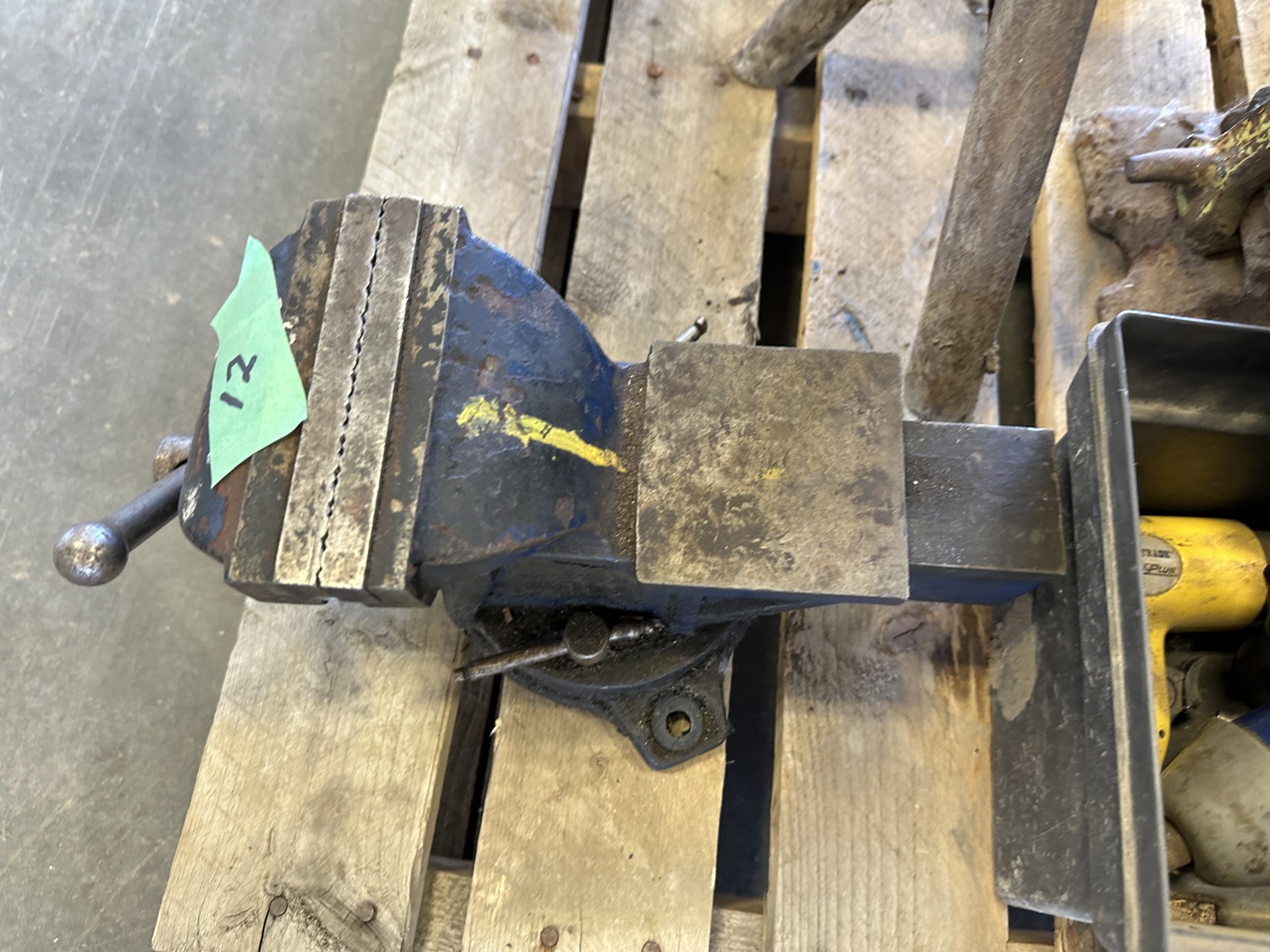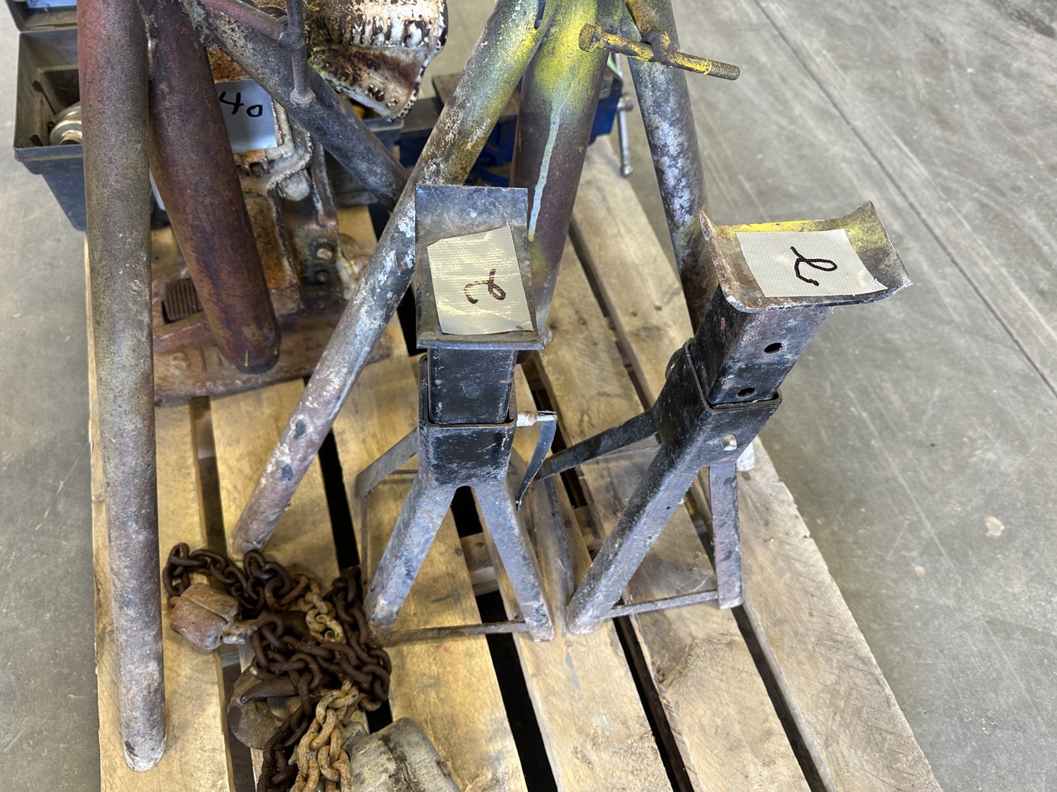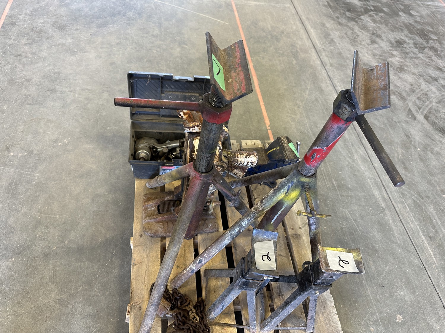 pipe stands, jack stands. 5 inch vise, Simplex house jack, air tools, chain come-a-long