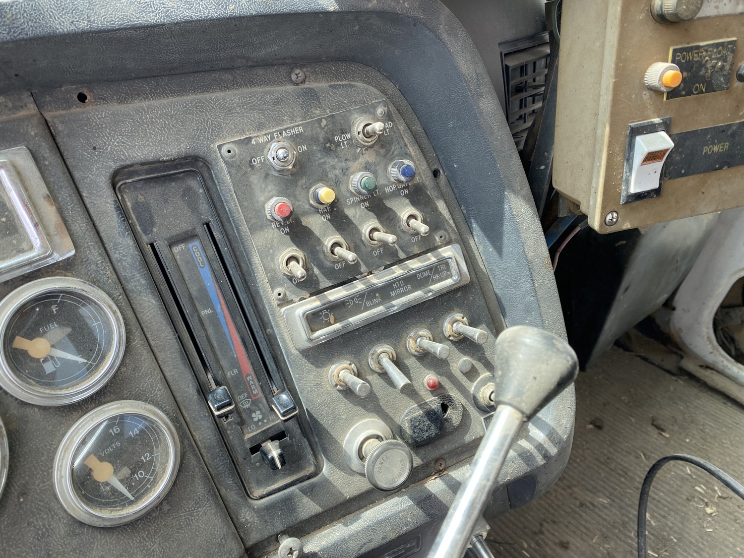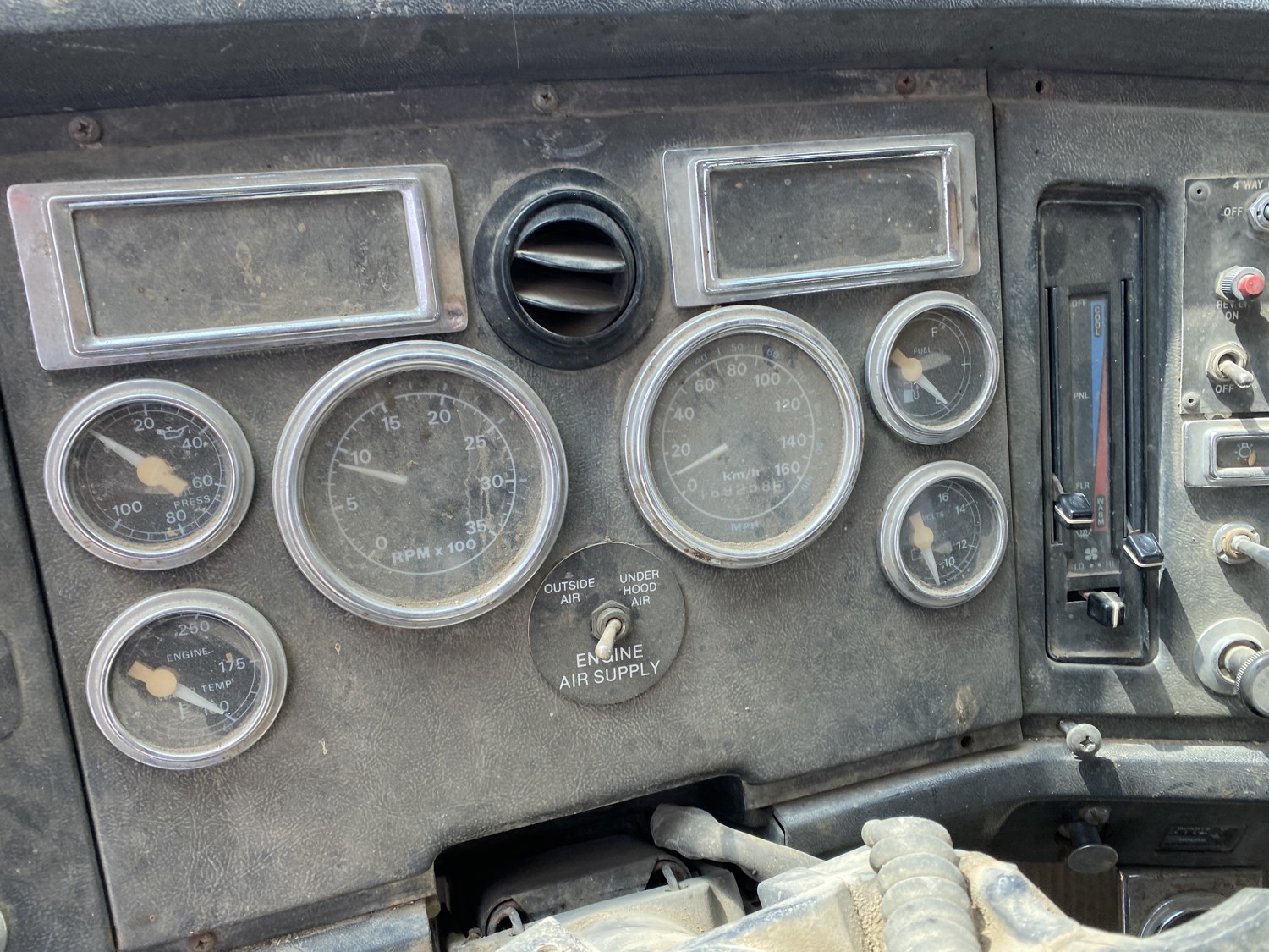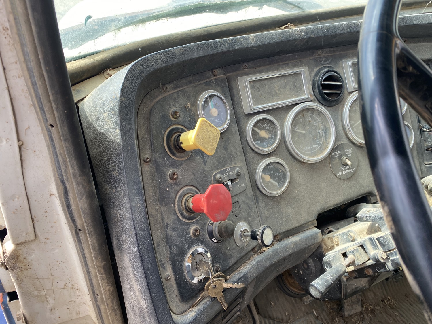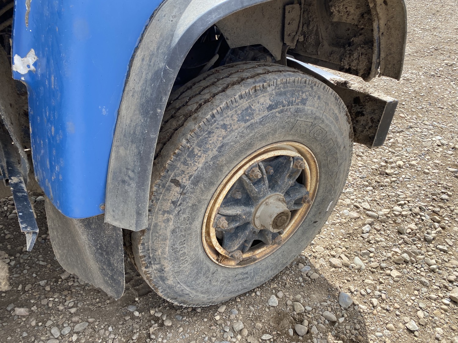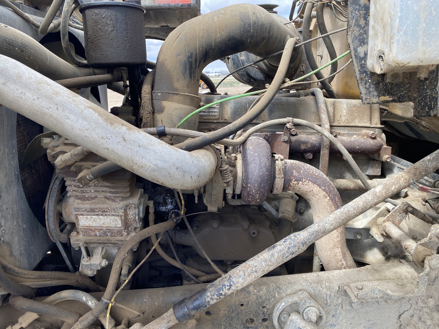 Ford 7.8 L 6 cylinder engine, RoadRanger 8LL manual transmission, 15 ft box, PTO pump, spring suspension, 16,000 lb front axle, 40,000 lb rear axles, diff lock, 222 inch WB, 315/80R22.5 front tires, 11R22.5 rear tires