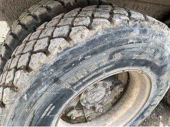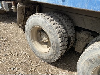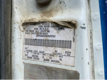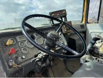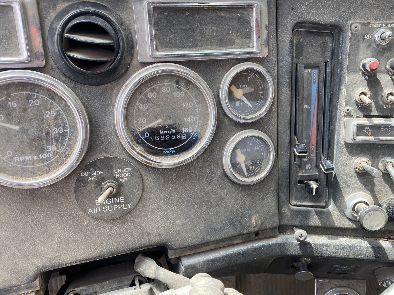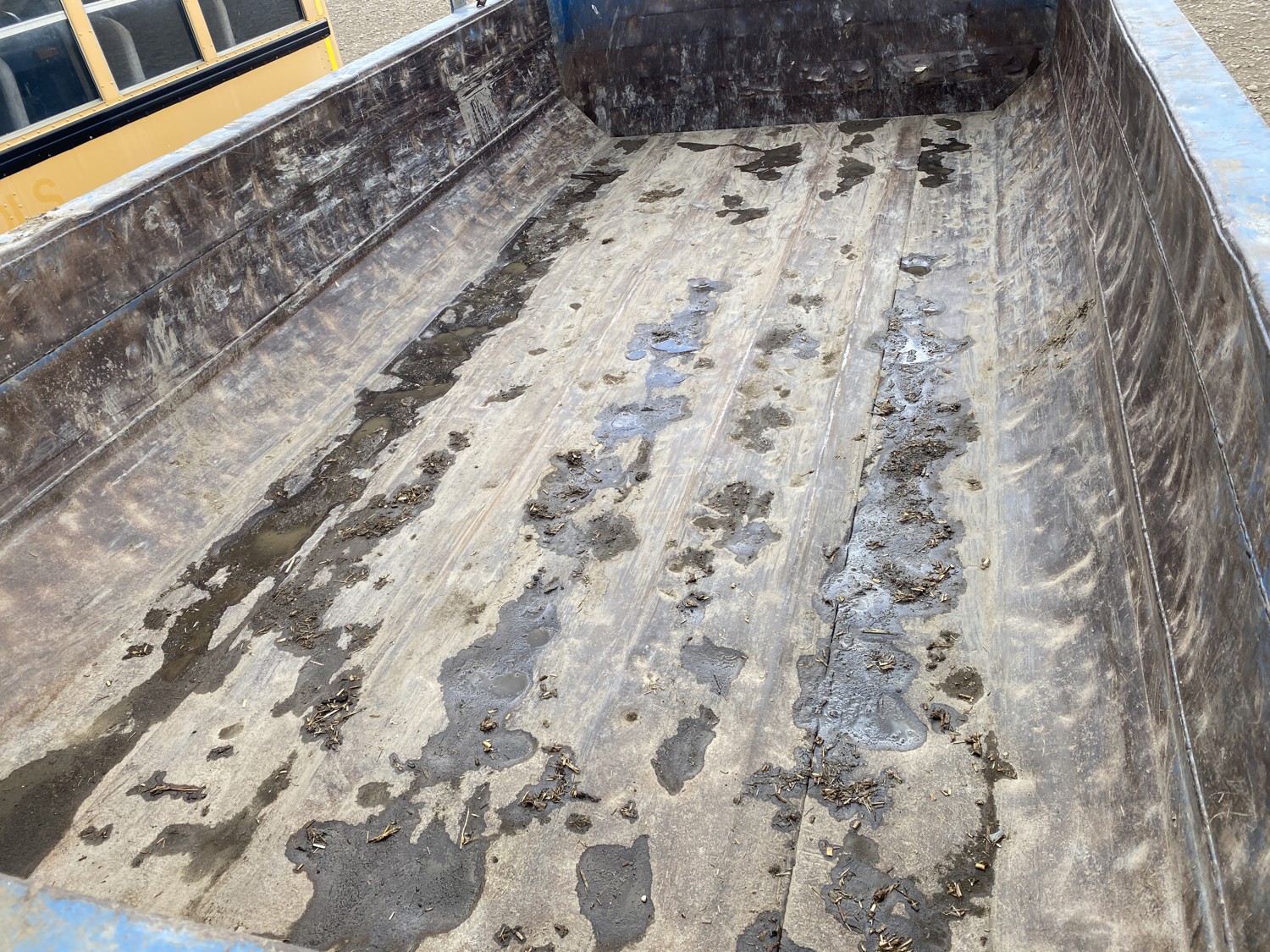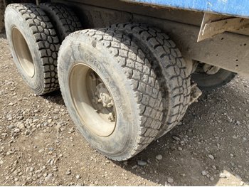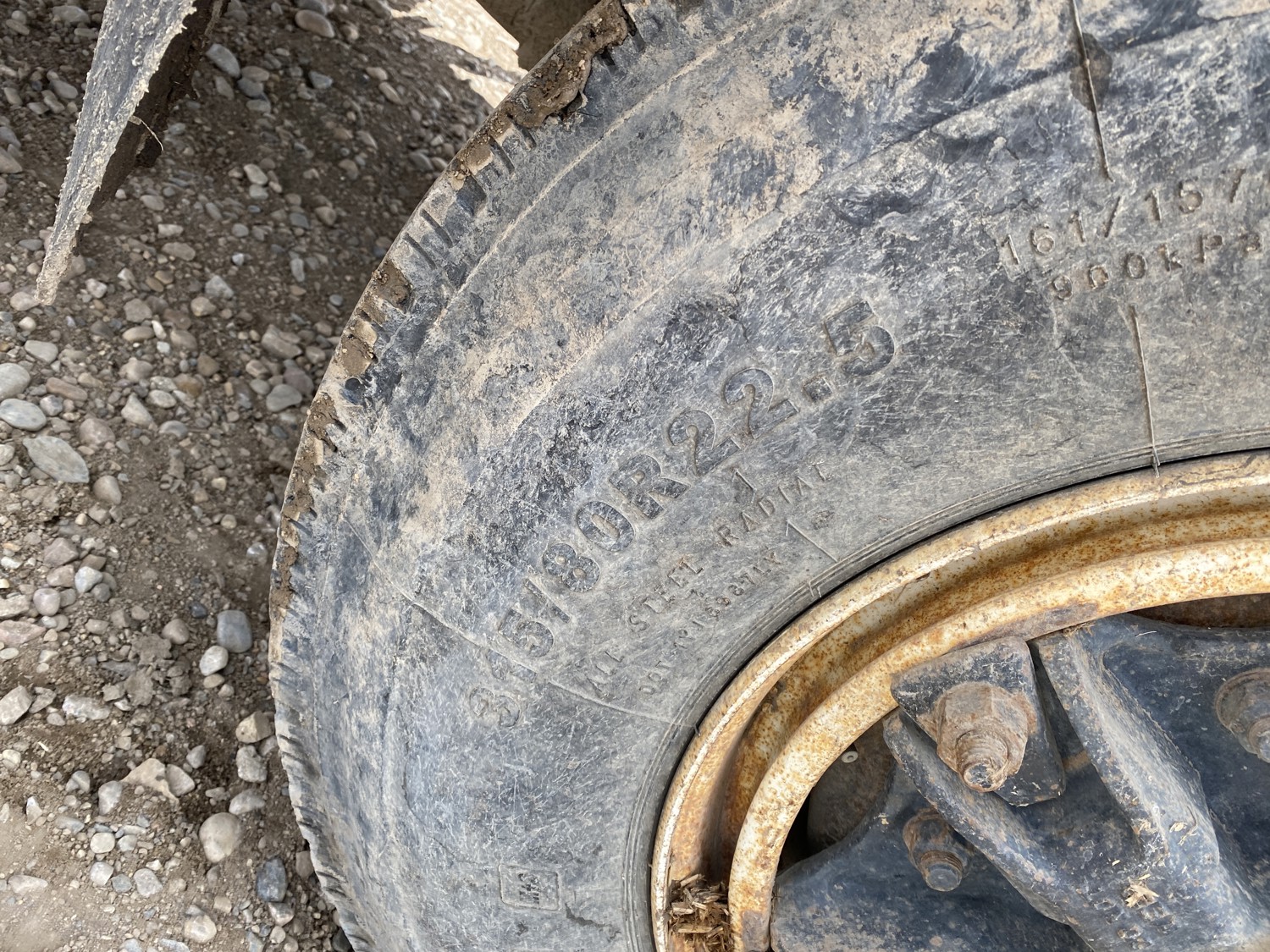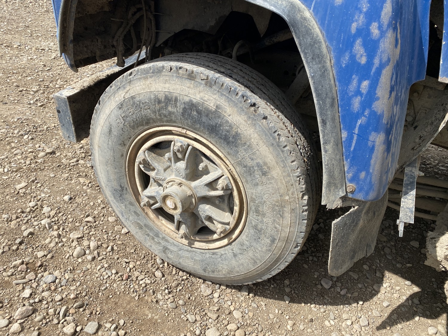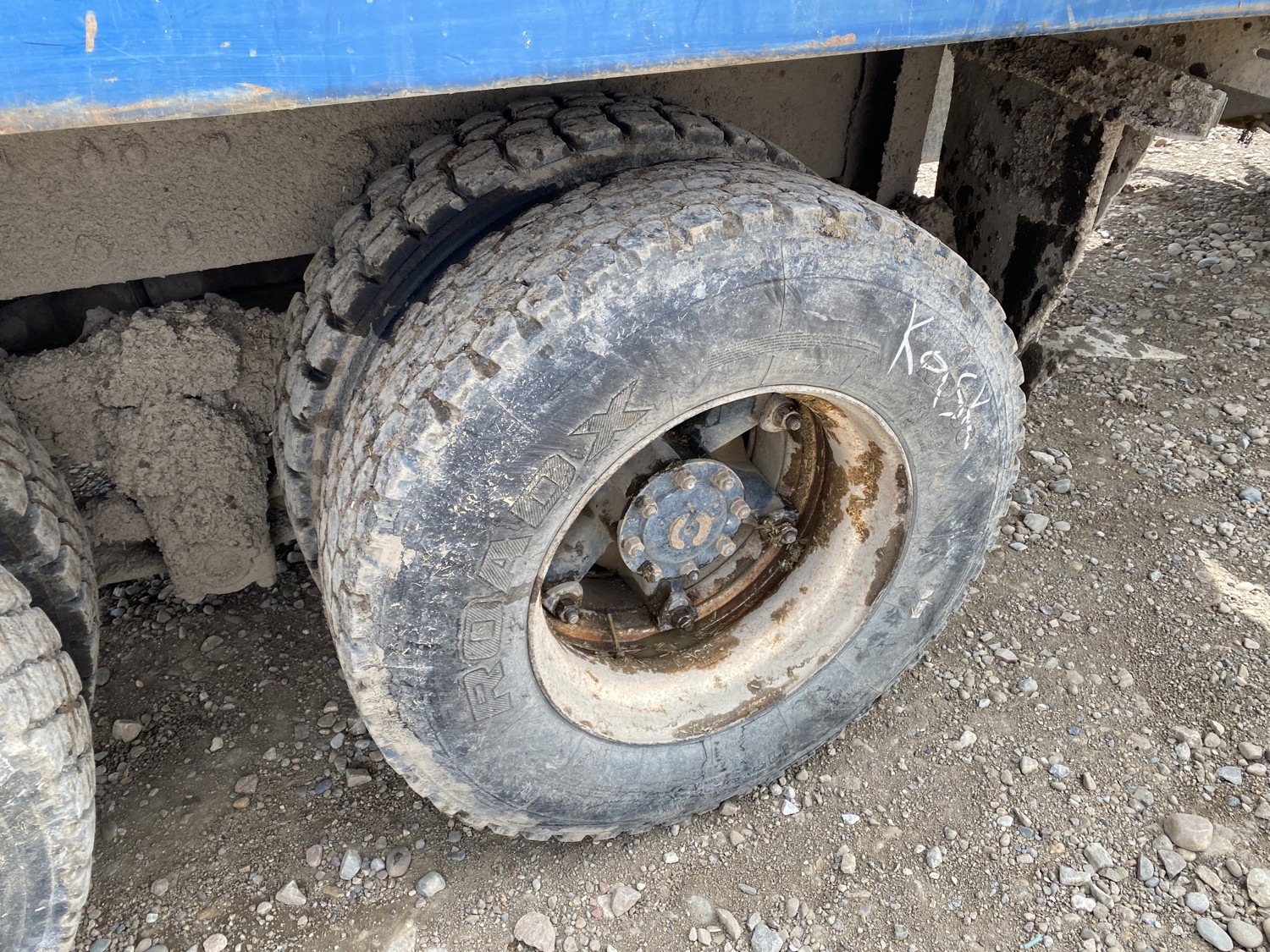 Ford 7.8 L 6 cylinder engine, RoadRanger 8LL manual transmission, 15 ft box, PTO pump, spring suspension, 16,000 lb front axle, 40,000 lb rear axles, diff lock, 222 inch WB, 315/80R22.5 front tires, 11R22.5 rear tires