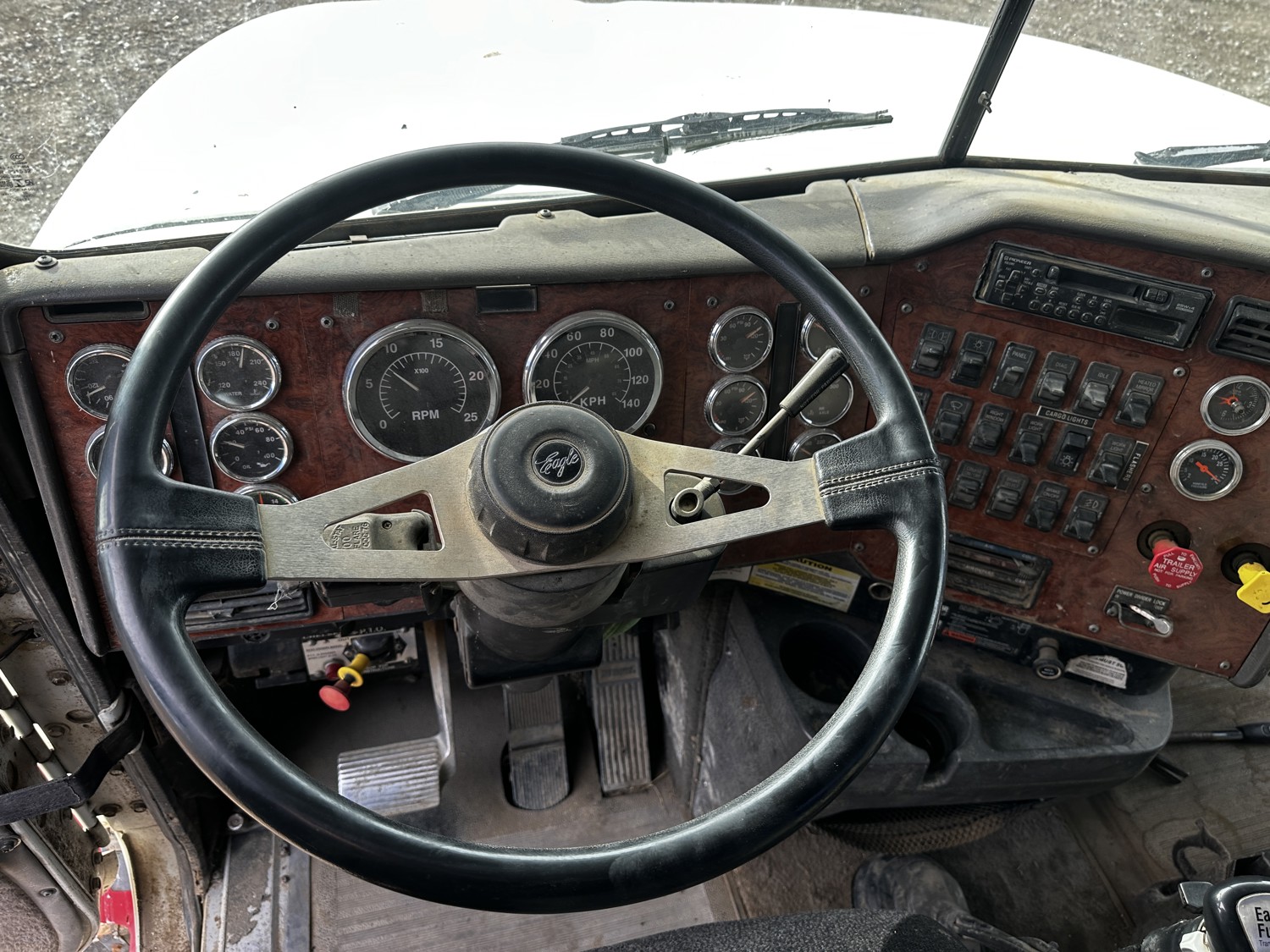 Cummins N14 PLUS 14.0 L 6 cylinder 460 HP diesel engine, engine brake, Eaton Fuller 18 speed manual transmission, A/C, cruise control, air ride driver seat, stereo, aluminum tool boxes, PTO pump, 16000 liter 1 compartment steel tank, rear & side discharge , spring suspension, 232 inch WB, aluminum front wheels, 385/65R22.5 front tires, 11R22.5 rear tires