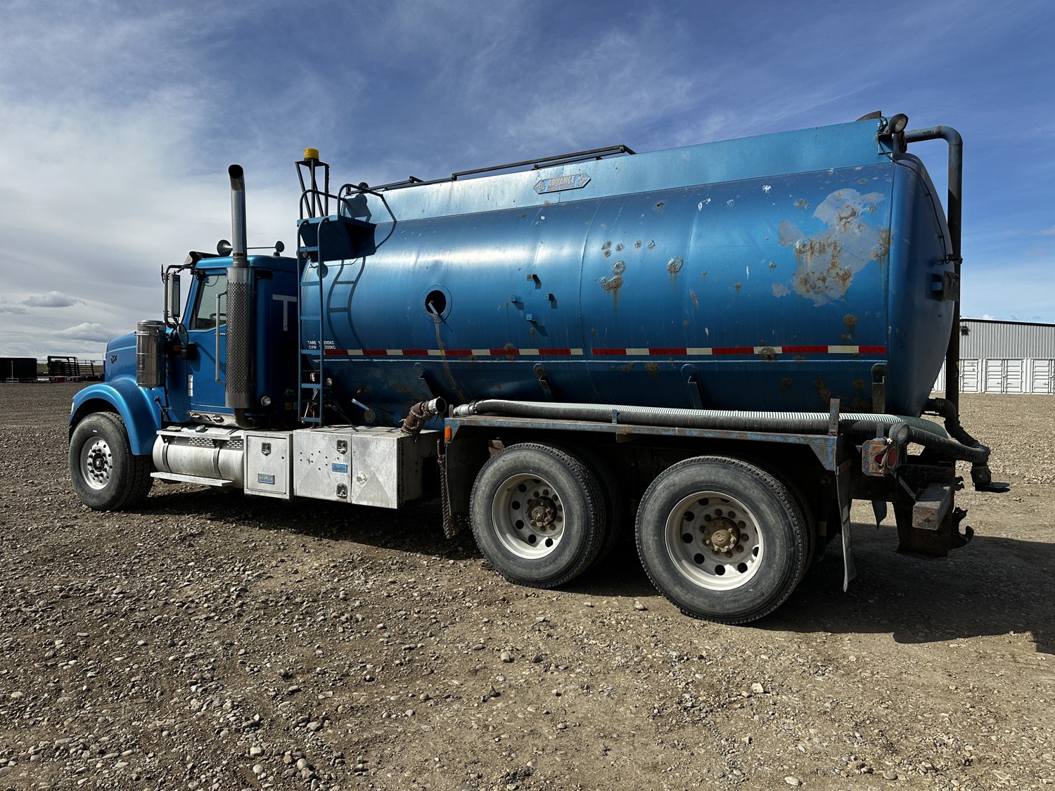 Caterpillar C-12 14.6 L 6 cylinder 430 HP diesel engine, engine brake, Eaton Fuller 18 speed manual transmission, A/C, cruise control, air ride driver seat, 4 inch PTO pump, Advance 16500 liter 1 compartment steel tank, air ride suspension, diff lock, 236 inch WB, all aluminum wheels, 425/65R22.5 front tires, 11R24.5 rear tires