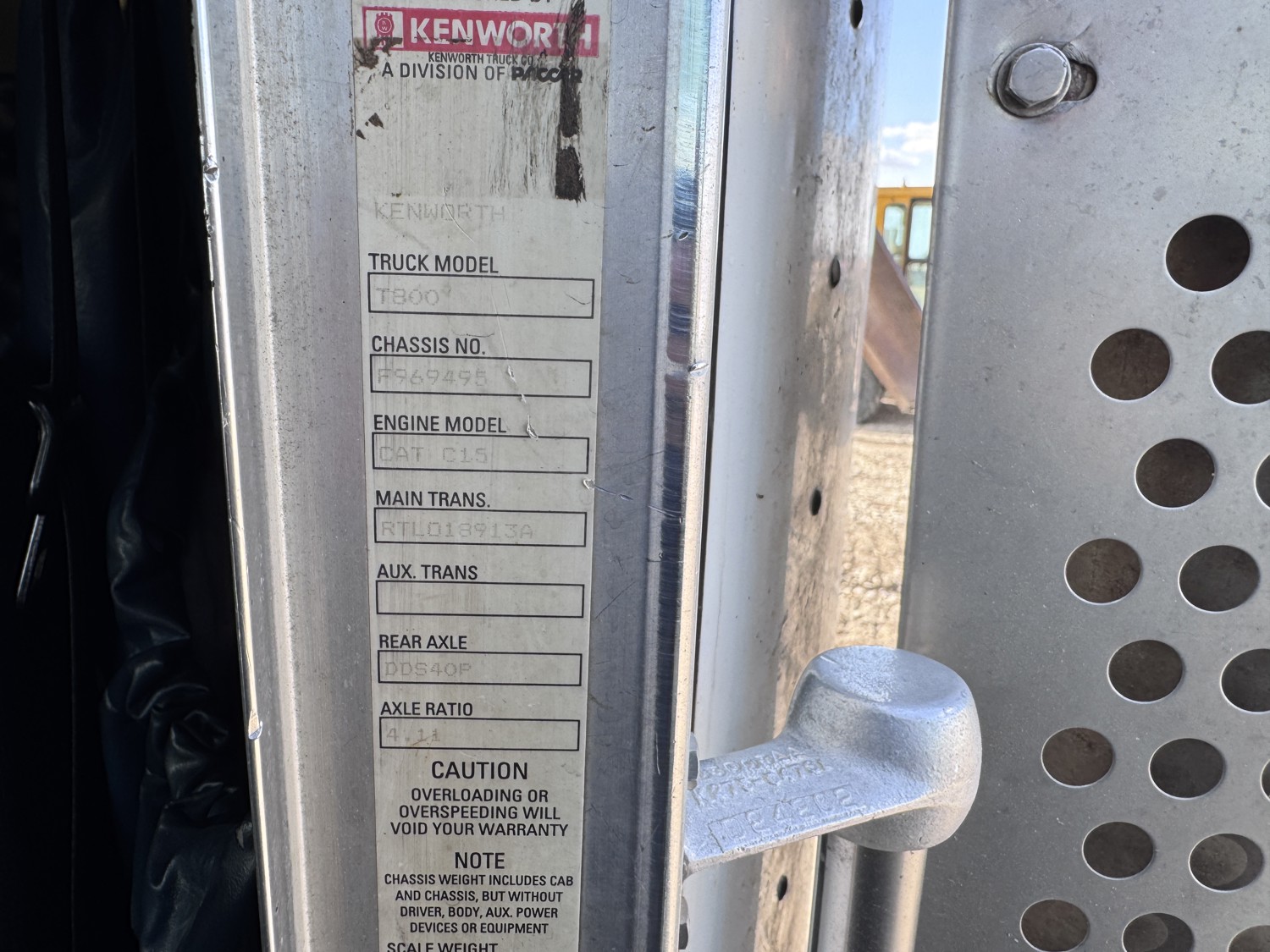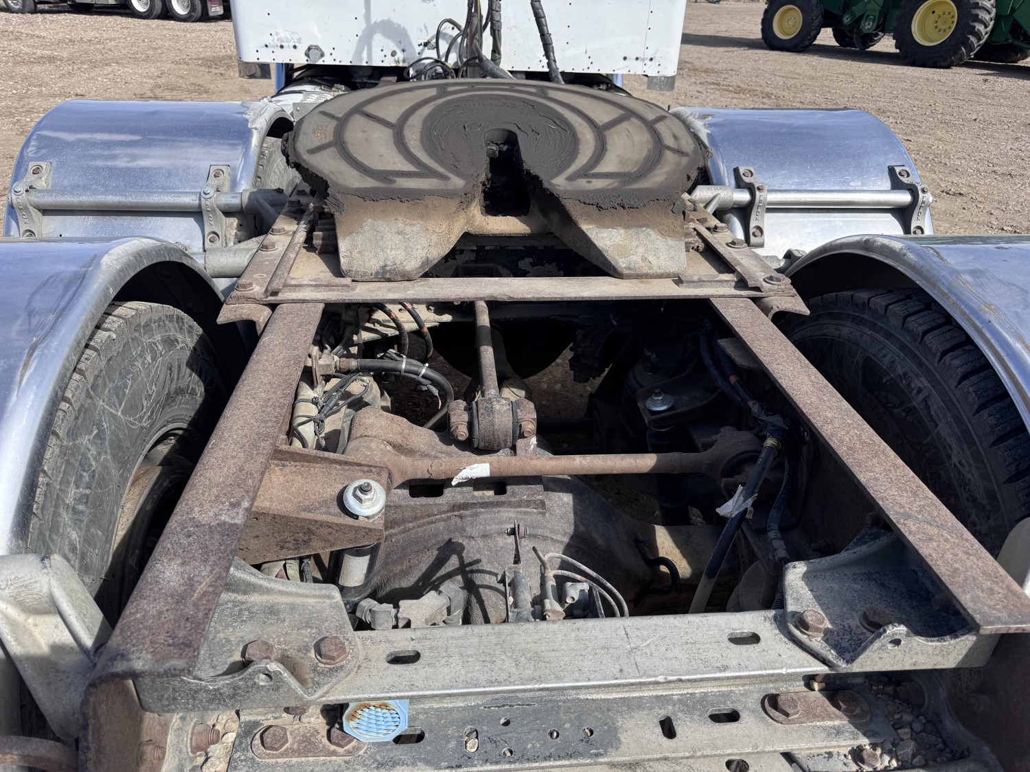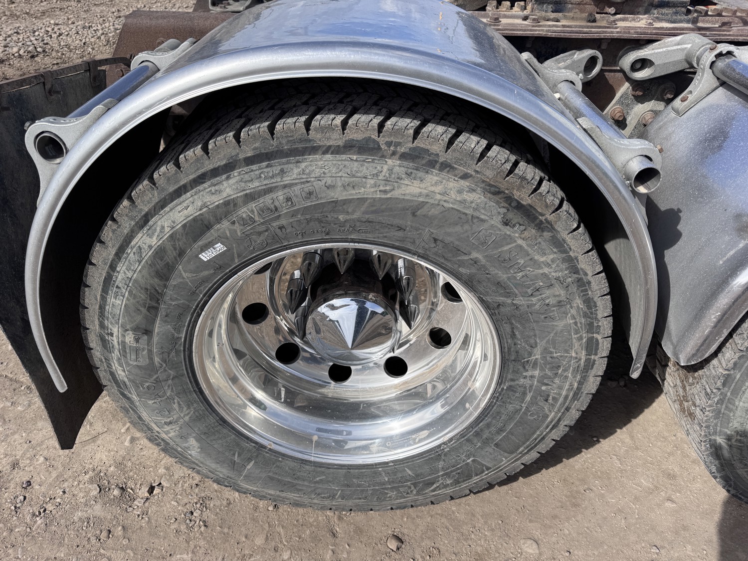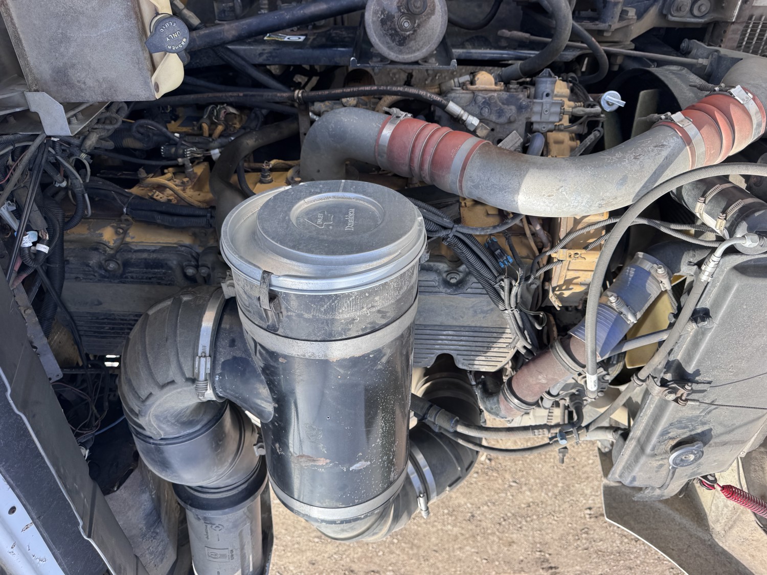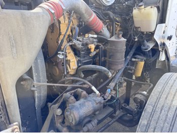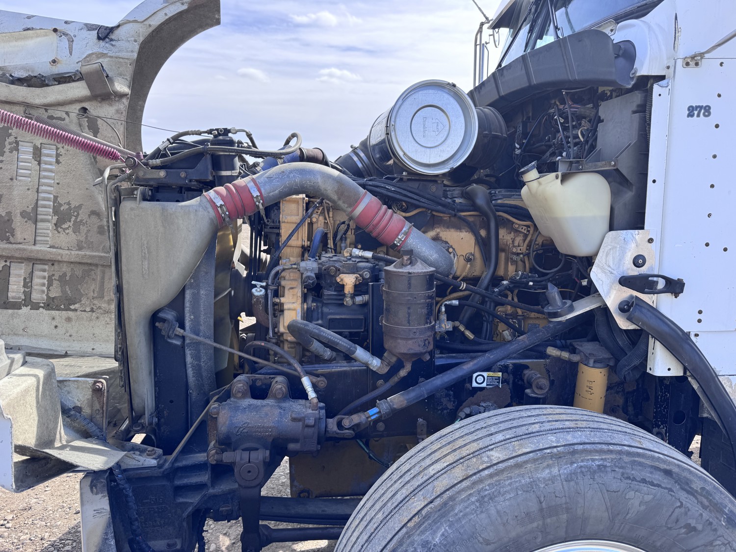 Caterpillar 6NZ C15 14.6 L L6 475 HP diesel engine, engine heater, engine brake, engine block heater, Eaton Fuller 18 speed manual transmission, mid rise 60 inch sleeper, A/C, cruise control, air ride driver seat, CB radio, stereo, air ride suspension, 12,000 lb front axle, 40,000 lb rear axles, full lockers, 4.11 ratio, 220 inch WB, Dss40p Super 40 rears , all aluminum wheels, 11R24.5 tires