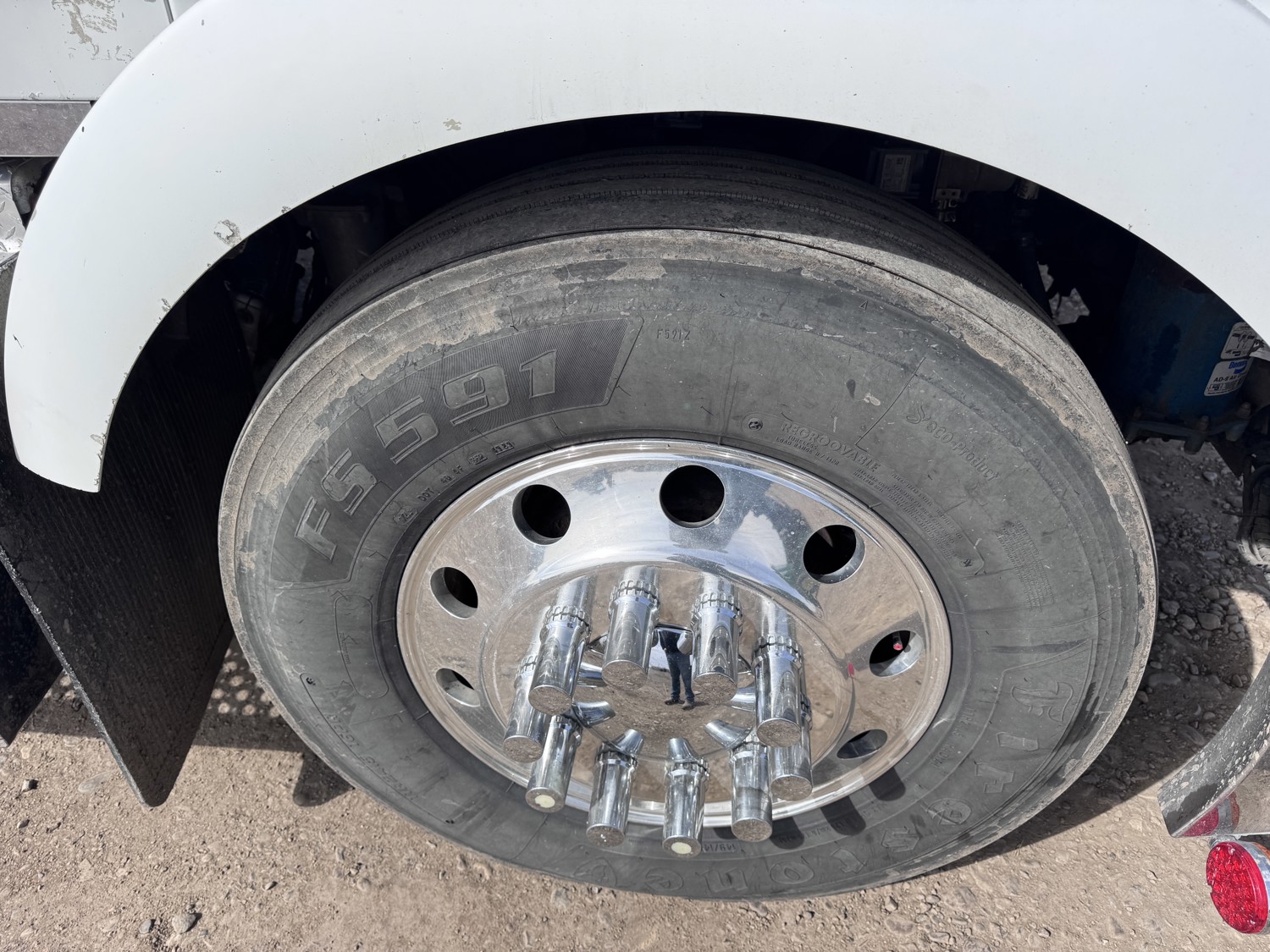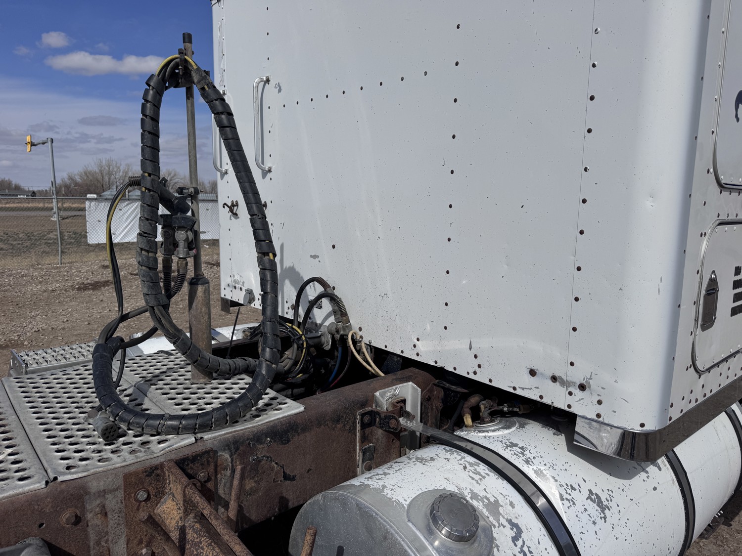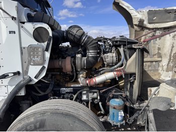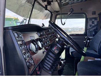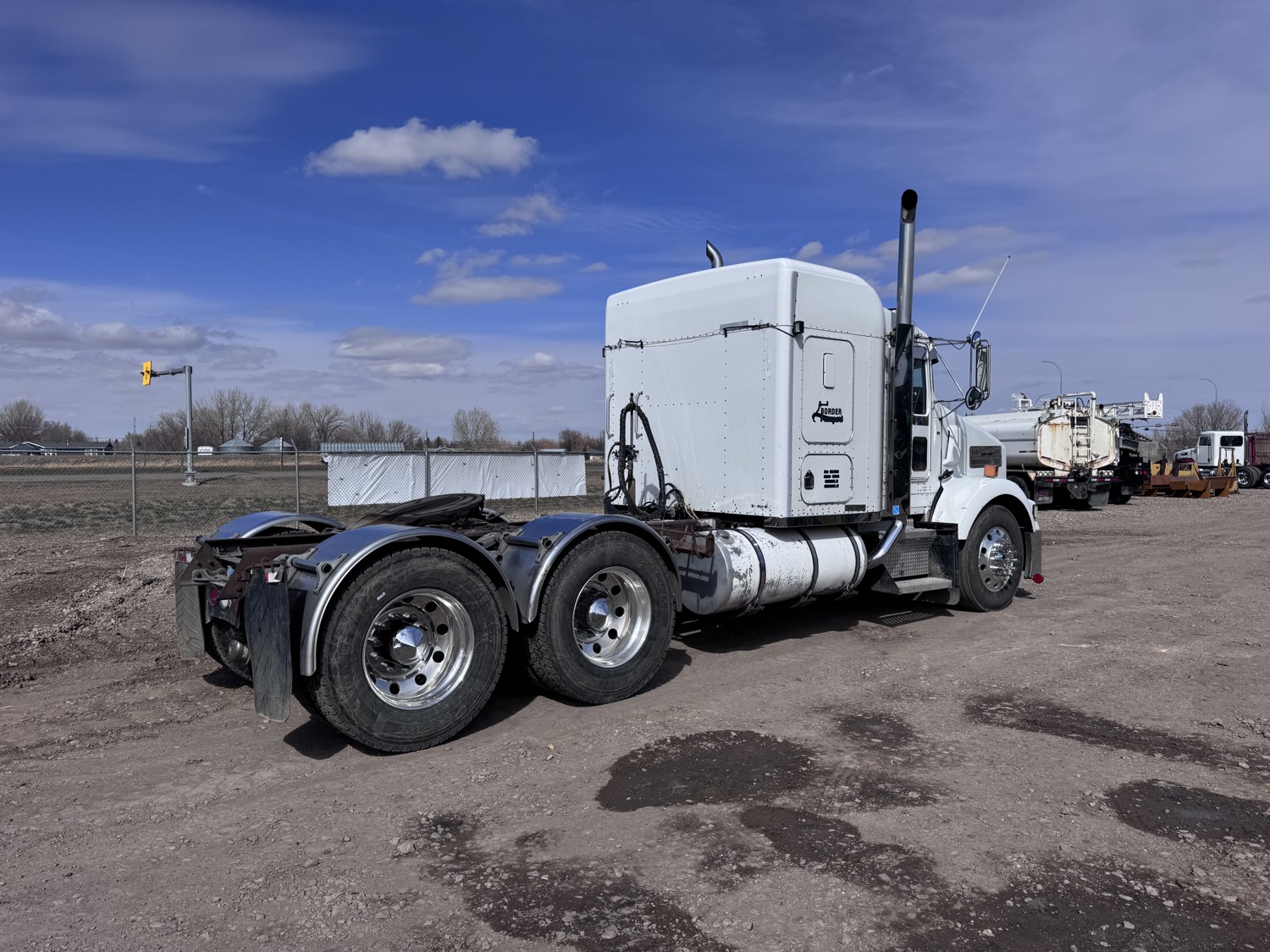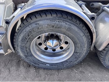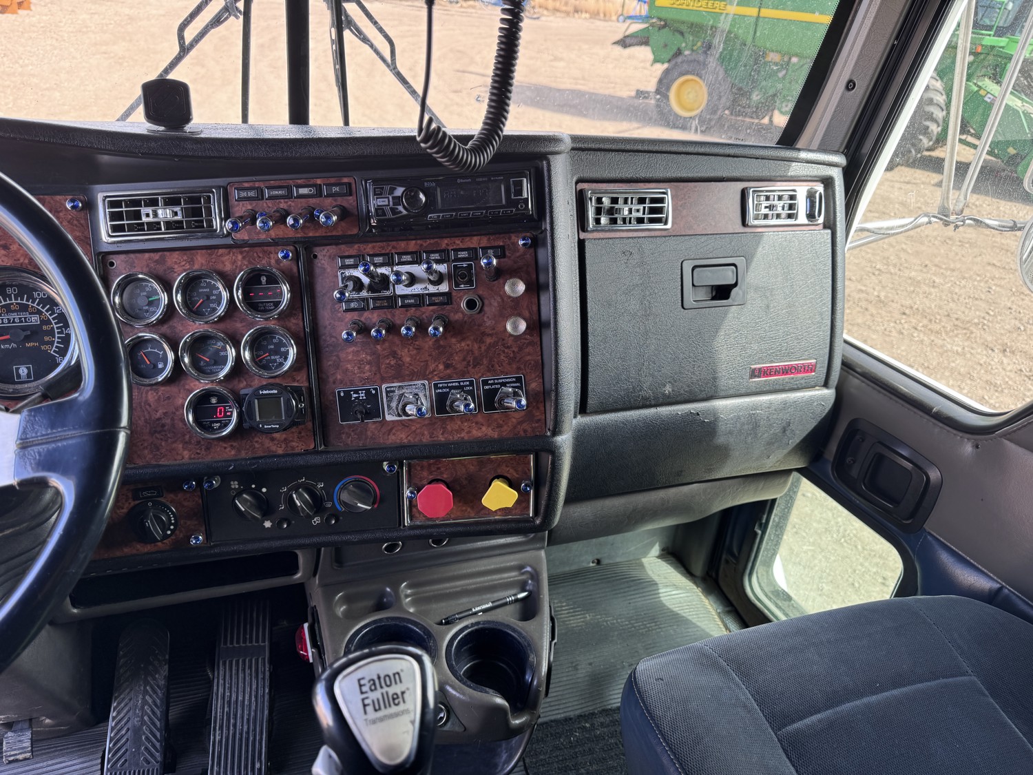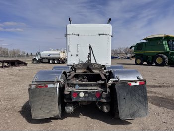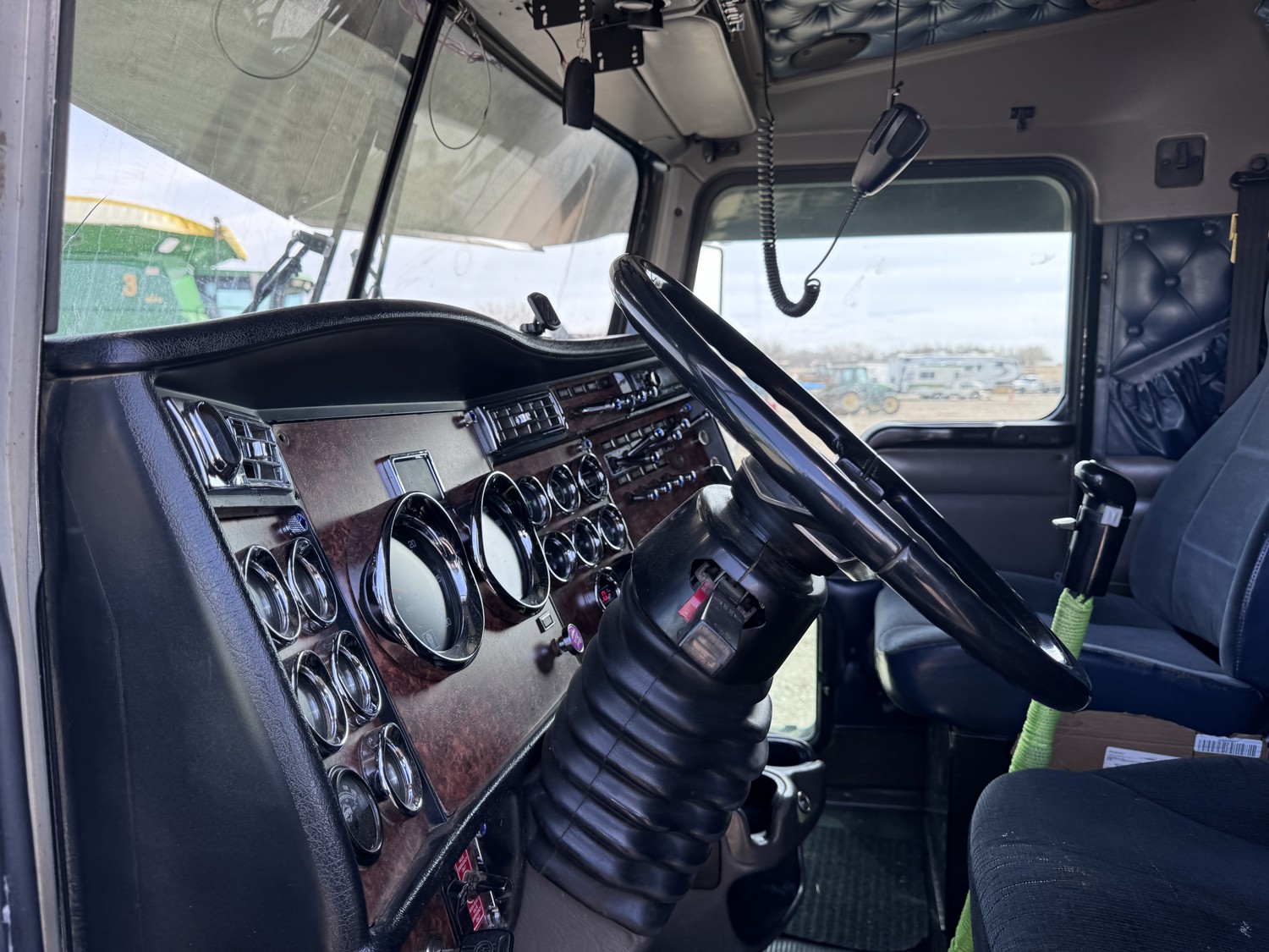 Caterpillar 6NZ C15 14.6 L L6 475 HP diesel engine, engine heater, engine brake, engine block heater, Eaton Fuller 18 speed manual transmission, mid rise 60 inch sleeper, A/C, cruise control, air ride driver seat, CB radio, stereo, air ride suspension, 12,000 lb front axle, 40,000 lb rear axles, full lockers, 4.11 ratio, 220 inch WB, Dss40p Super 40 rears , all aluminum wheels, 11R24.5 tires