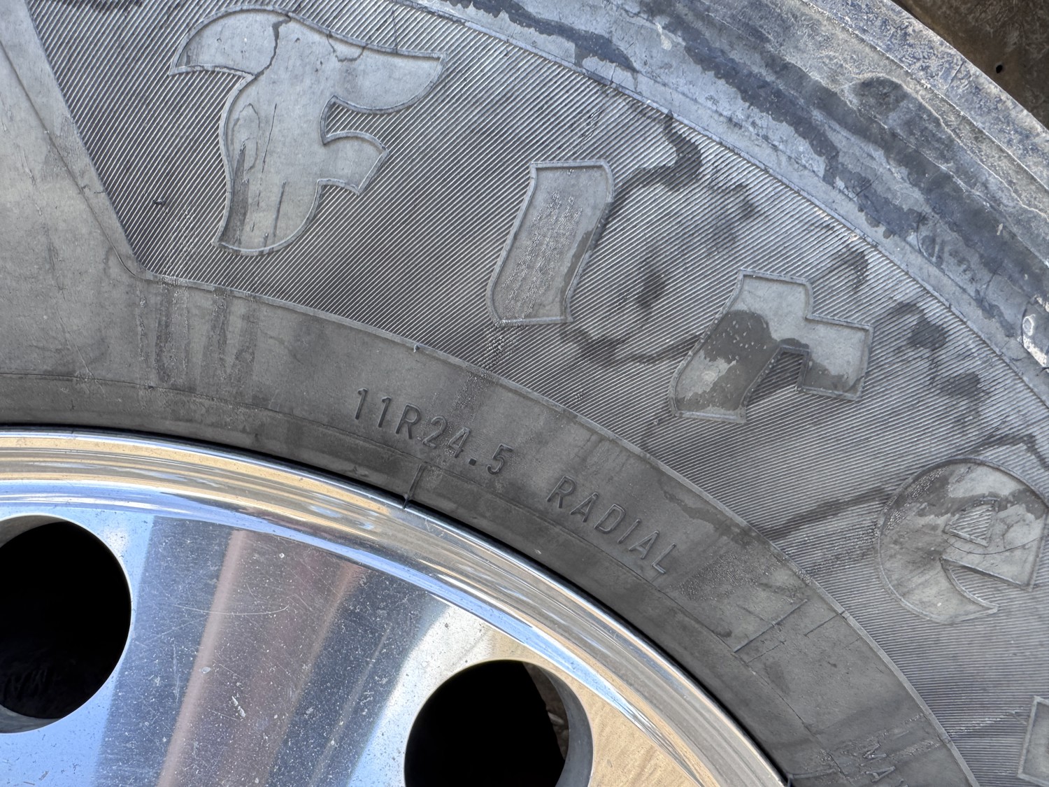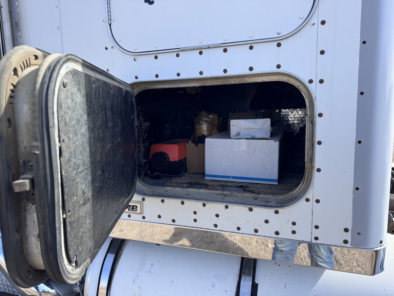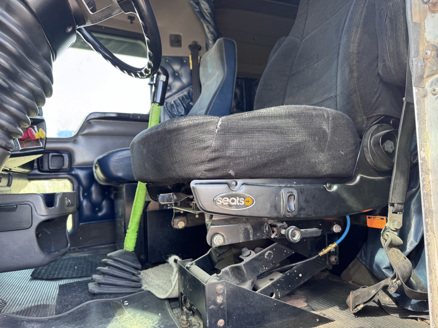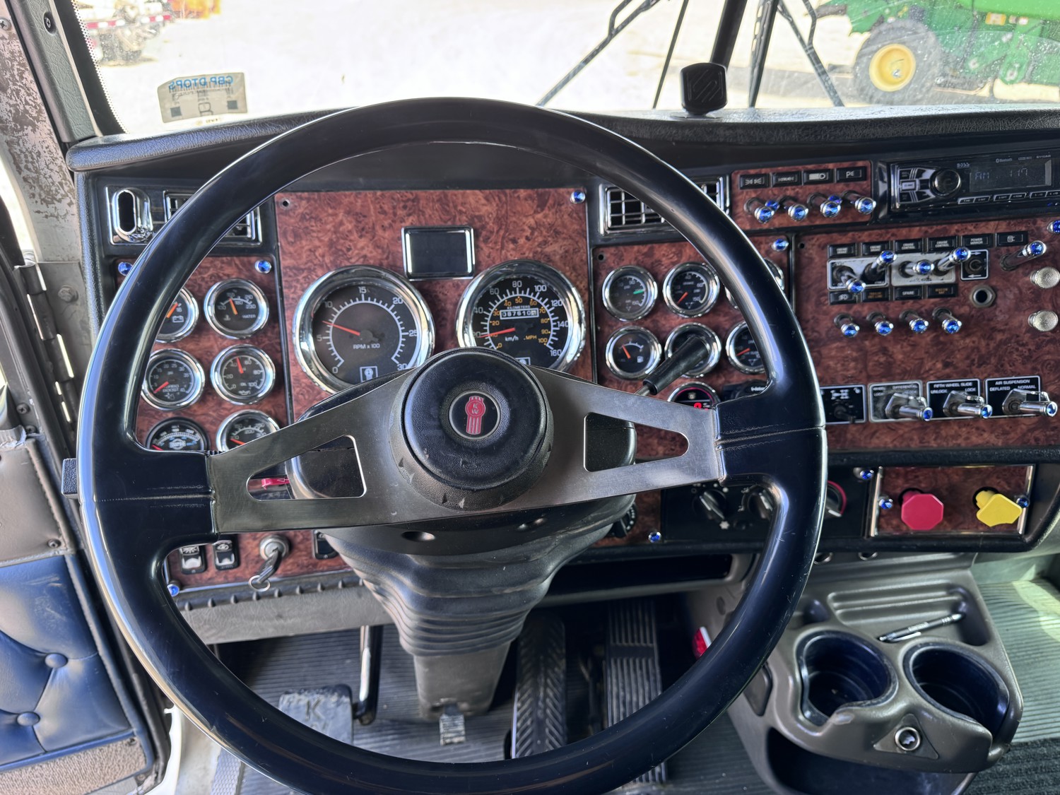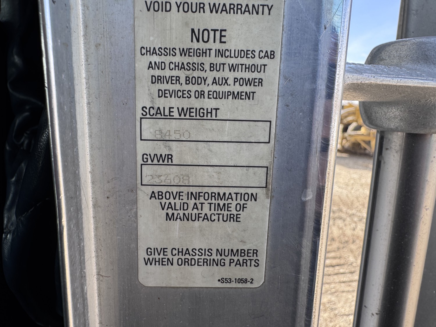 Caterpillar 6NZ C15 14.6 L L6 475 HP diesel engine, engine heater, engine brake, engine block heater, Eaton Fuller 18 speed manual transmission, mid rise 60 inch sleeper, A/C, cruise control, air ride driver seat, CB radio, stereo, air ride suspension, 12,000 lb front axle, 40,000 lb rear axles, full lockers, 4.11 ratio, 220 inch WB, Dss40p Super 40 rears , all aluminum wheels, 11R24.5 tires