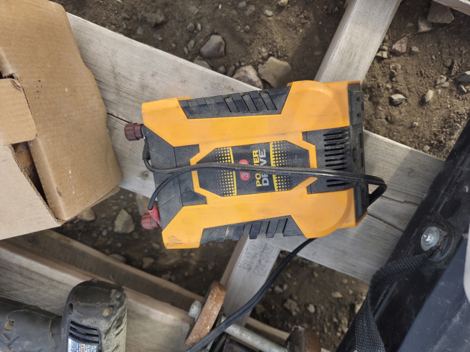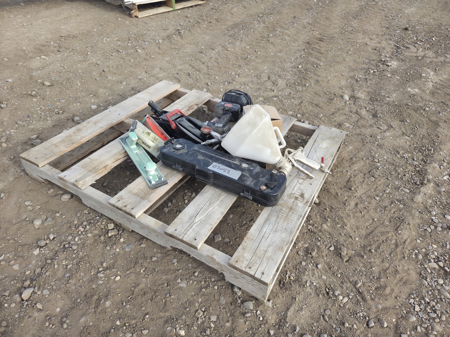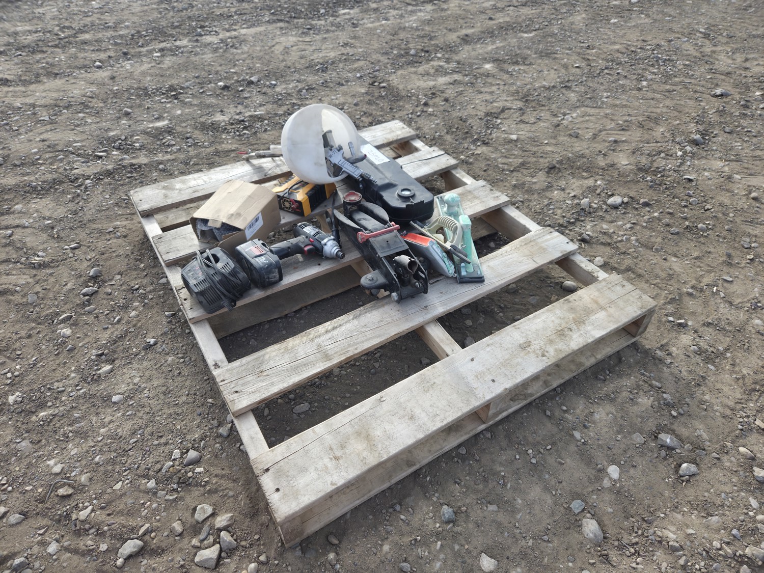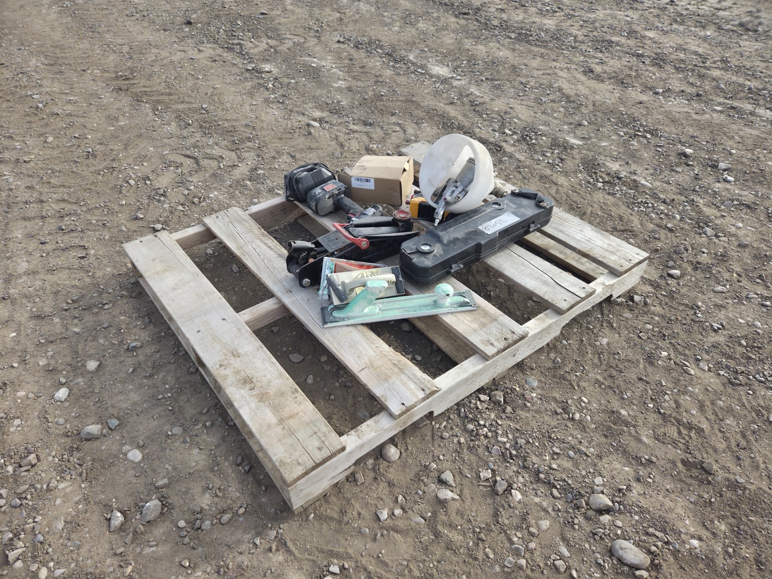 includes (2) jacks, (1) paint sprayer, (2) sanding blocks, (1) impact driver w/ battery, (1) DC to AC inverter, (1) front levelling lift