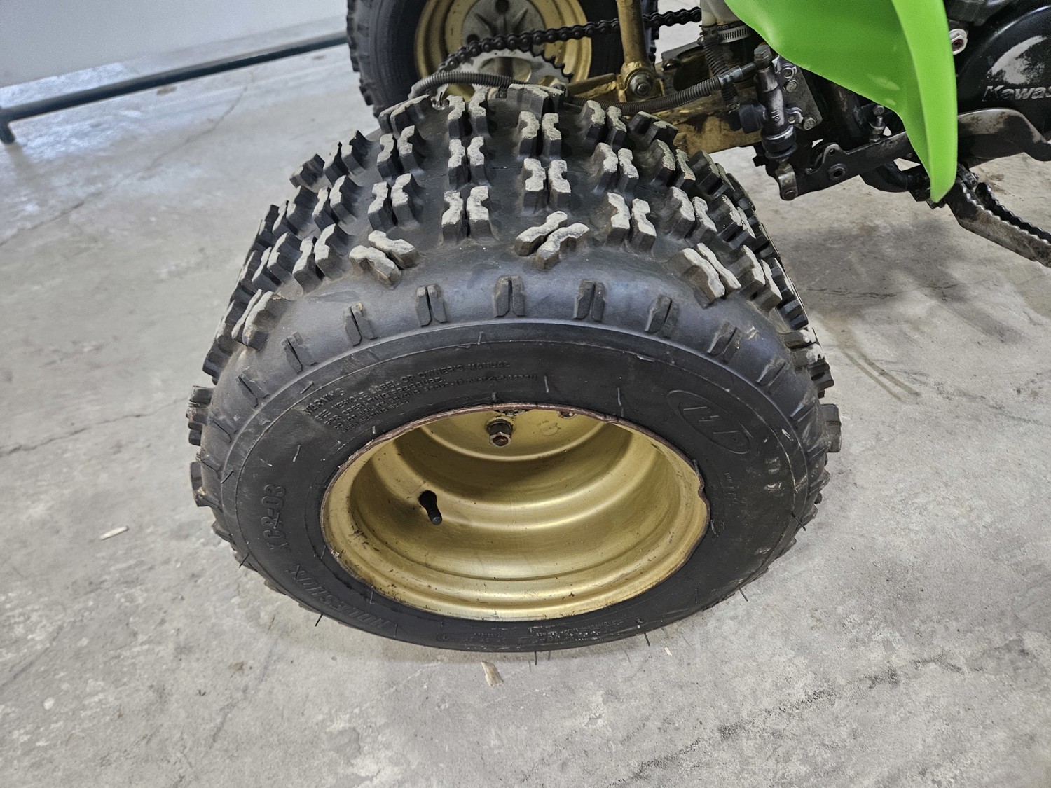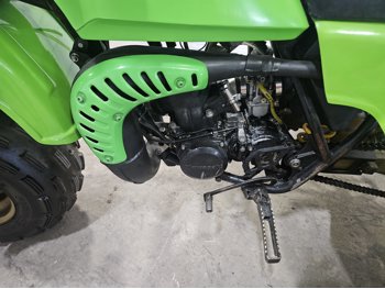 250 cc water cooled engine, manual transmission, 2 stroke, kick start, 22X11-10 front tires, 20X11-10 rear tires