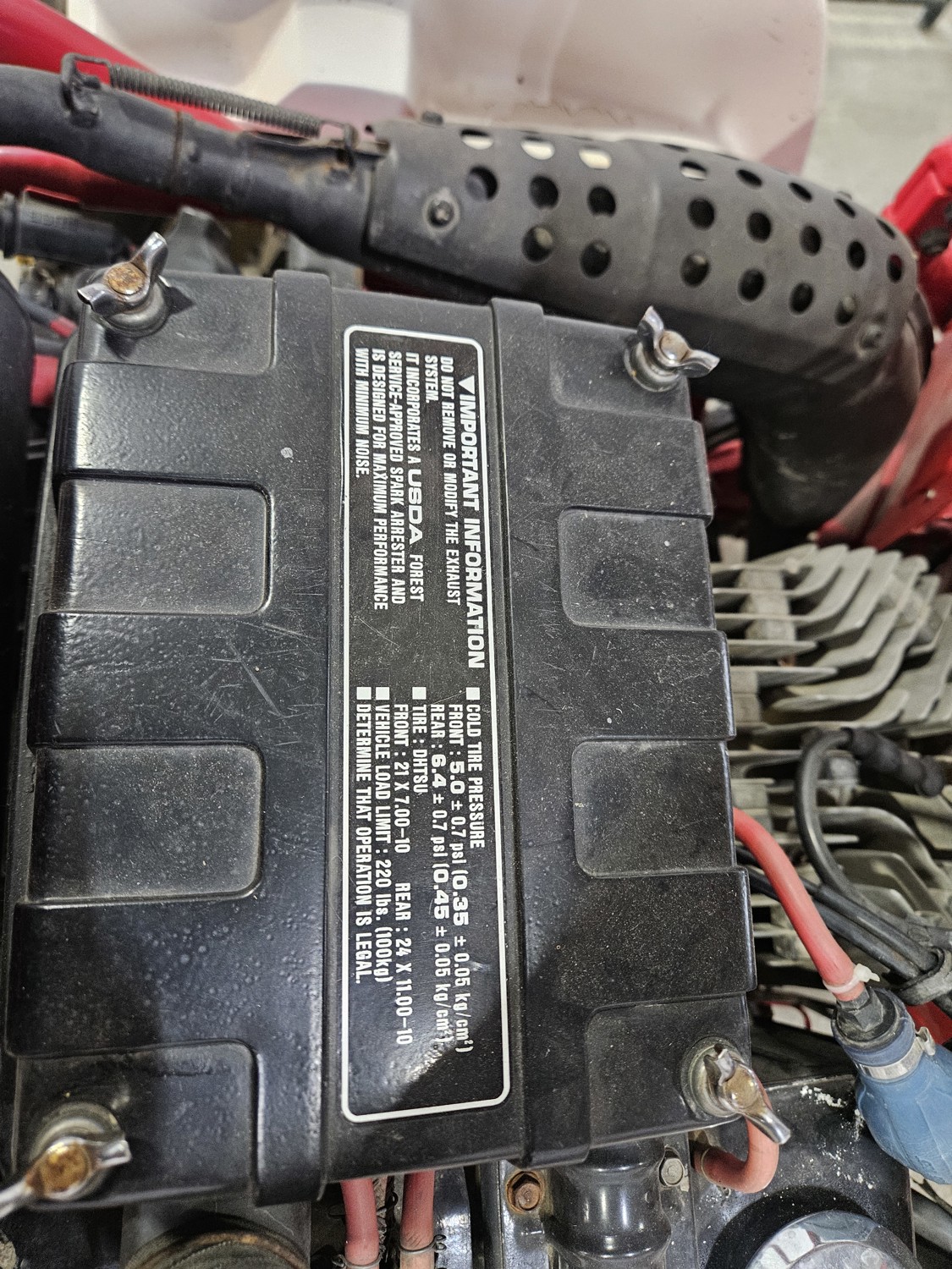 350 cc engine, CVT transmission, single cylinder 4 stroke gas engine, 21X7-10 front tires, 24X11-10 rear tires