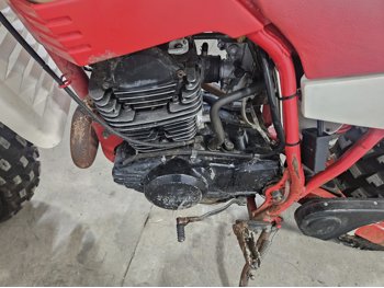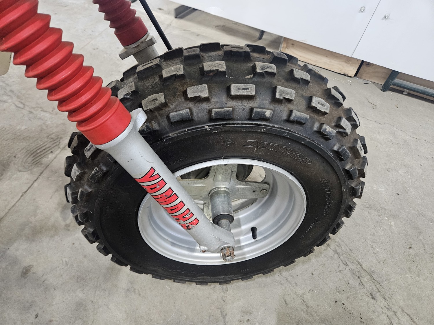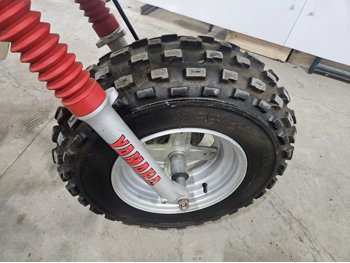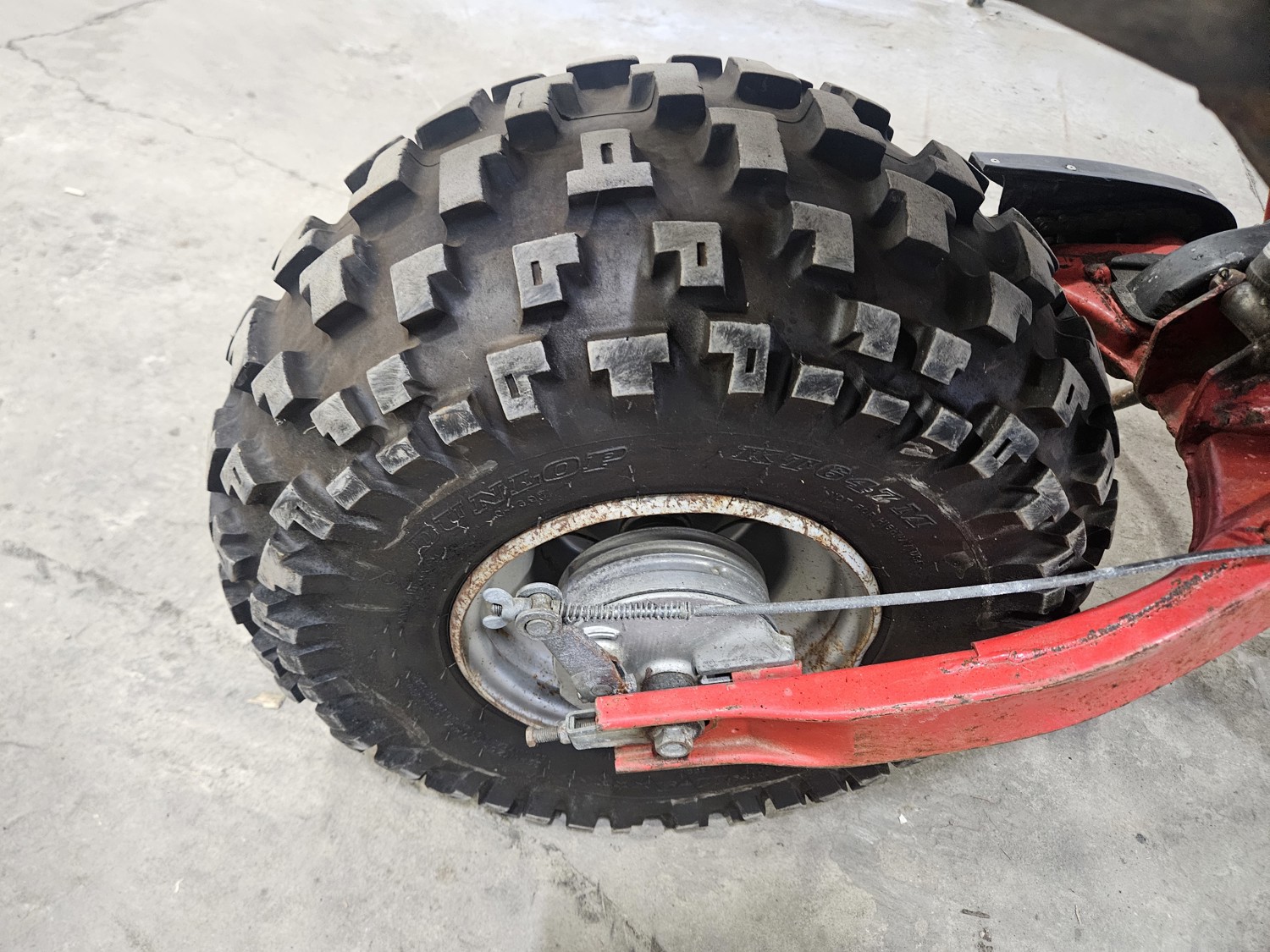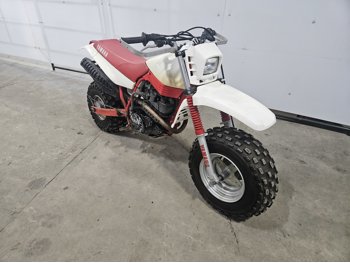350 cc single cylinder 4 stroke gas engine, 5 speed manual transmission, 25x8.00-12 front tire, 23x11.00-9 rear tire