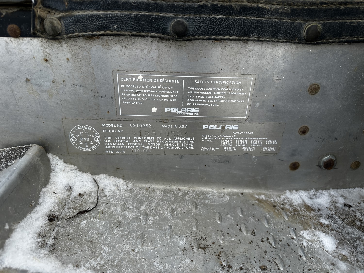 1991 Polaris Indy Snowmobile (Inoperable)